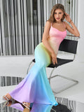 Mermaid Dreams: Ombre Draped Collar Cami Dress