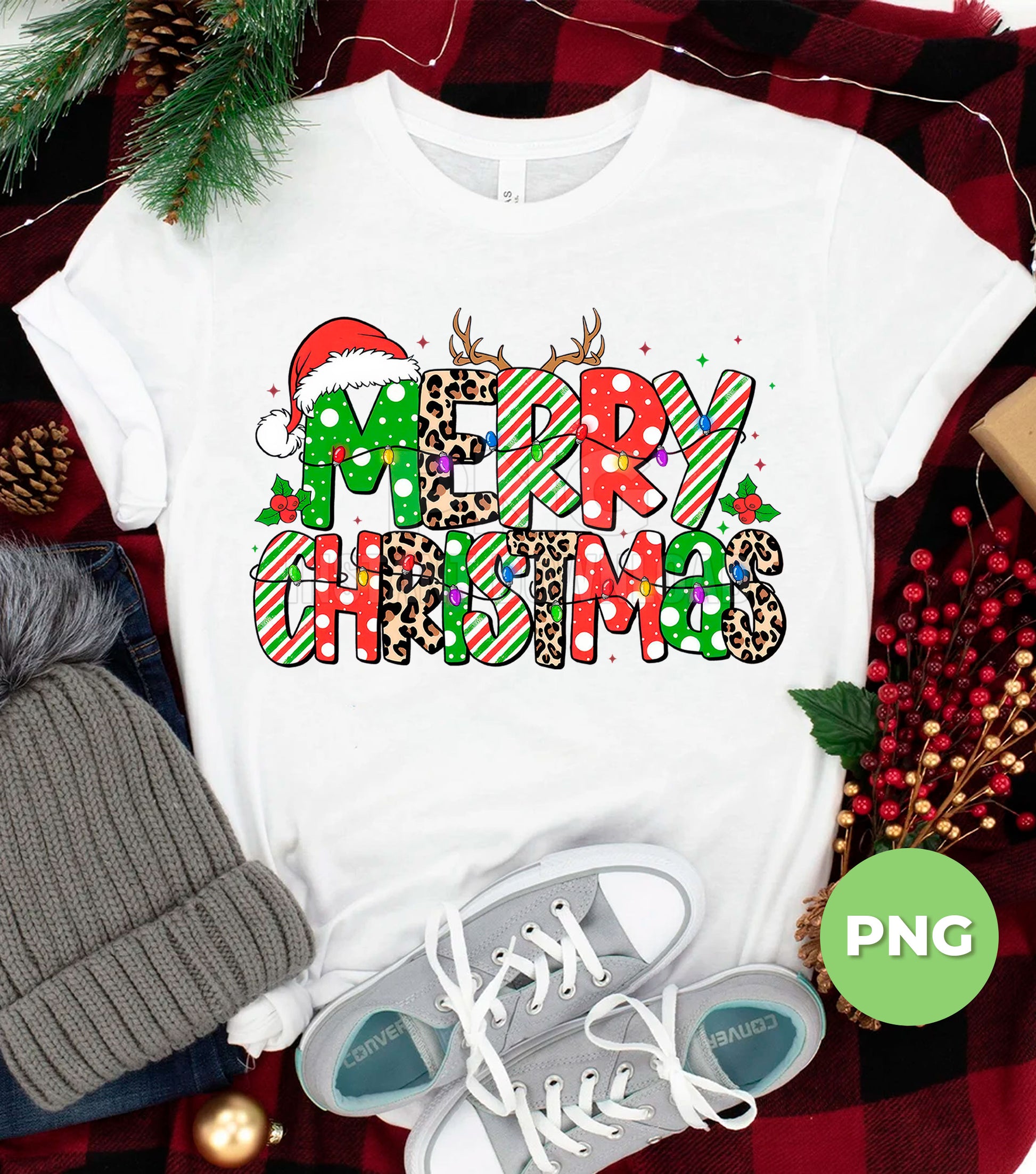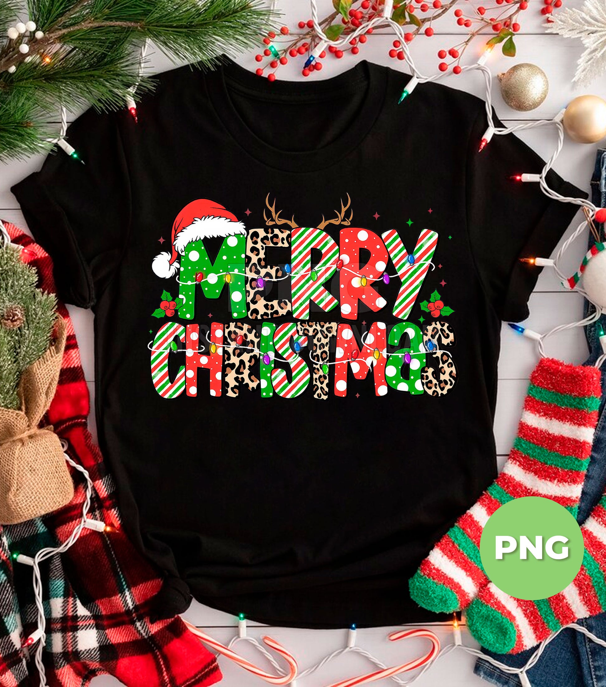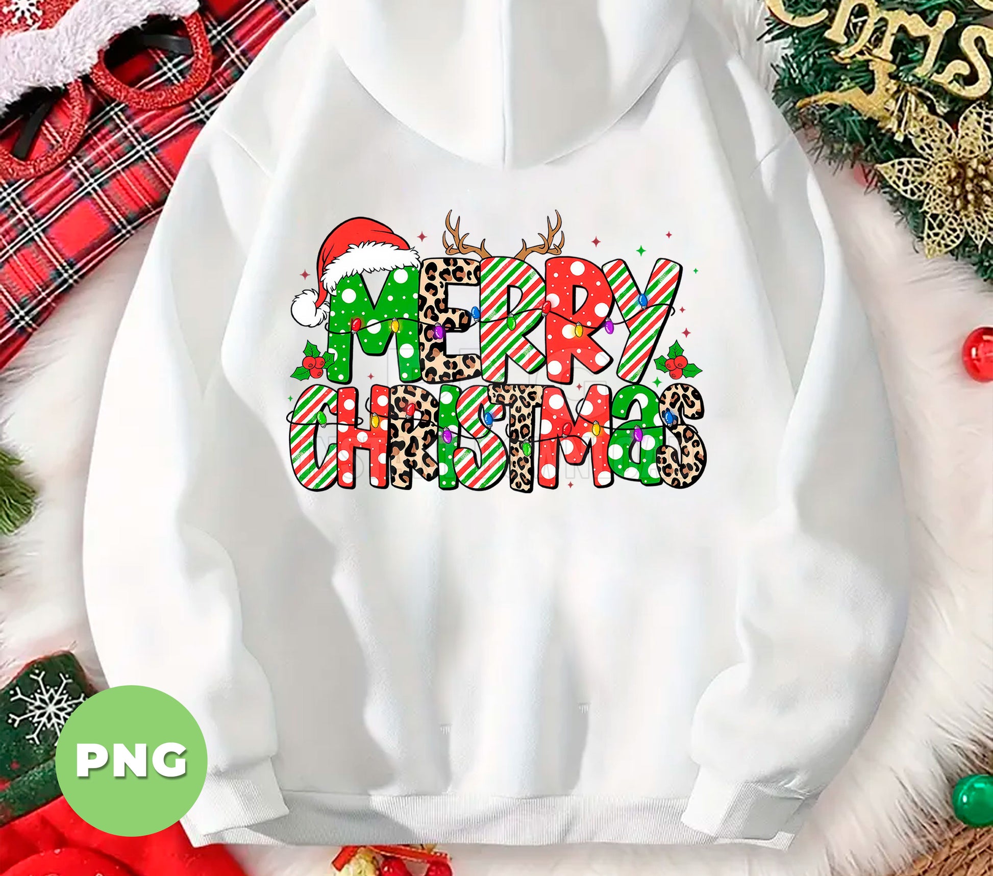 Merry Christmas, Leopard Print Christmas Lights Sublimation, Santa Hat Reindeer Holiday Clipart, Cute Xmas Digital Download, Festive Winter