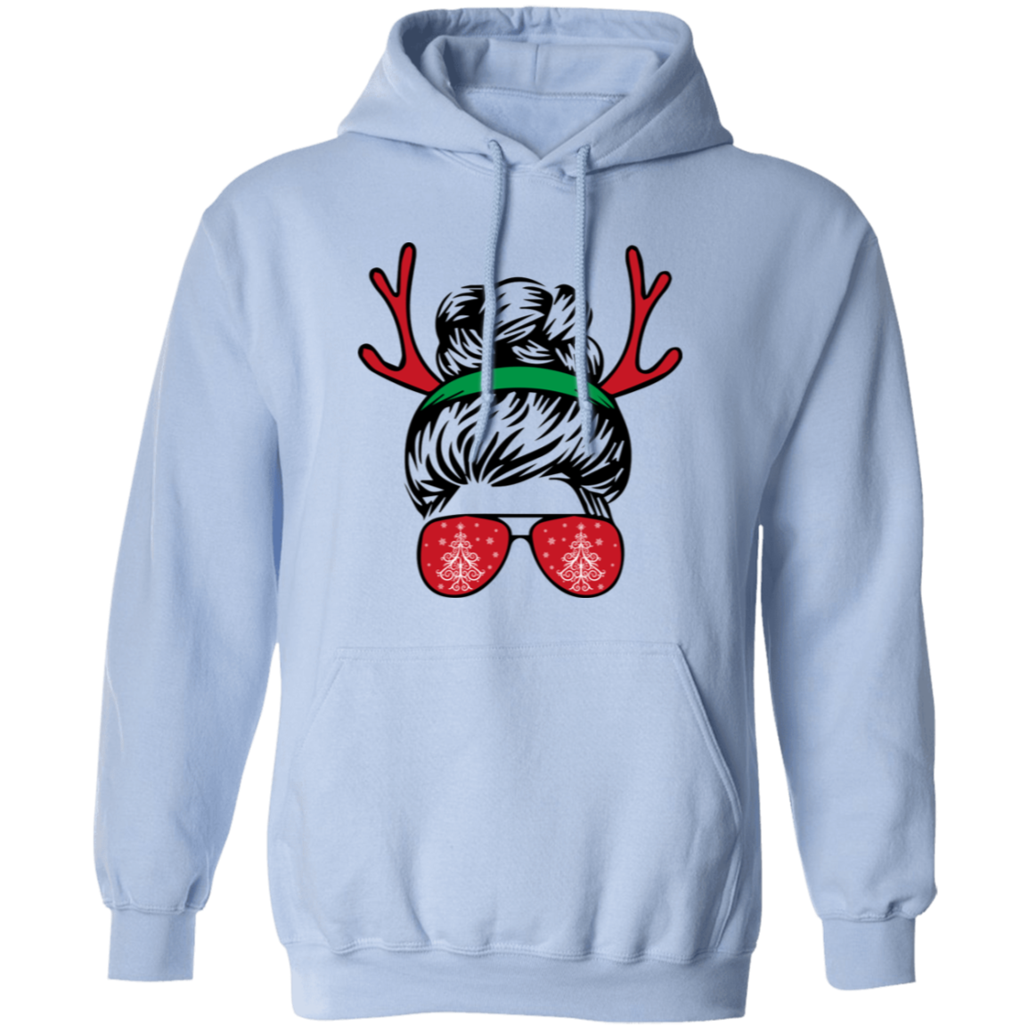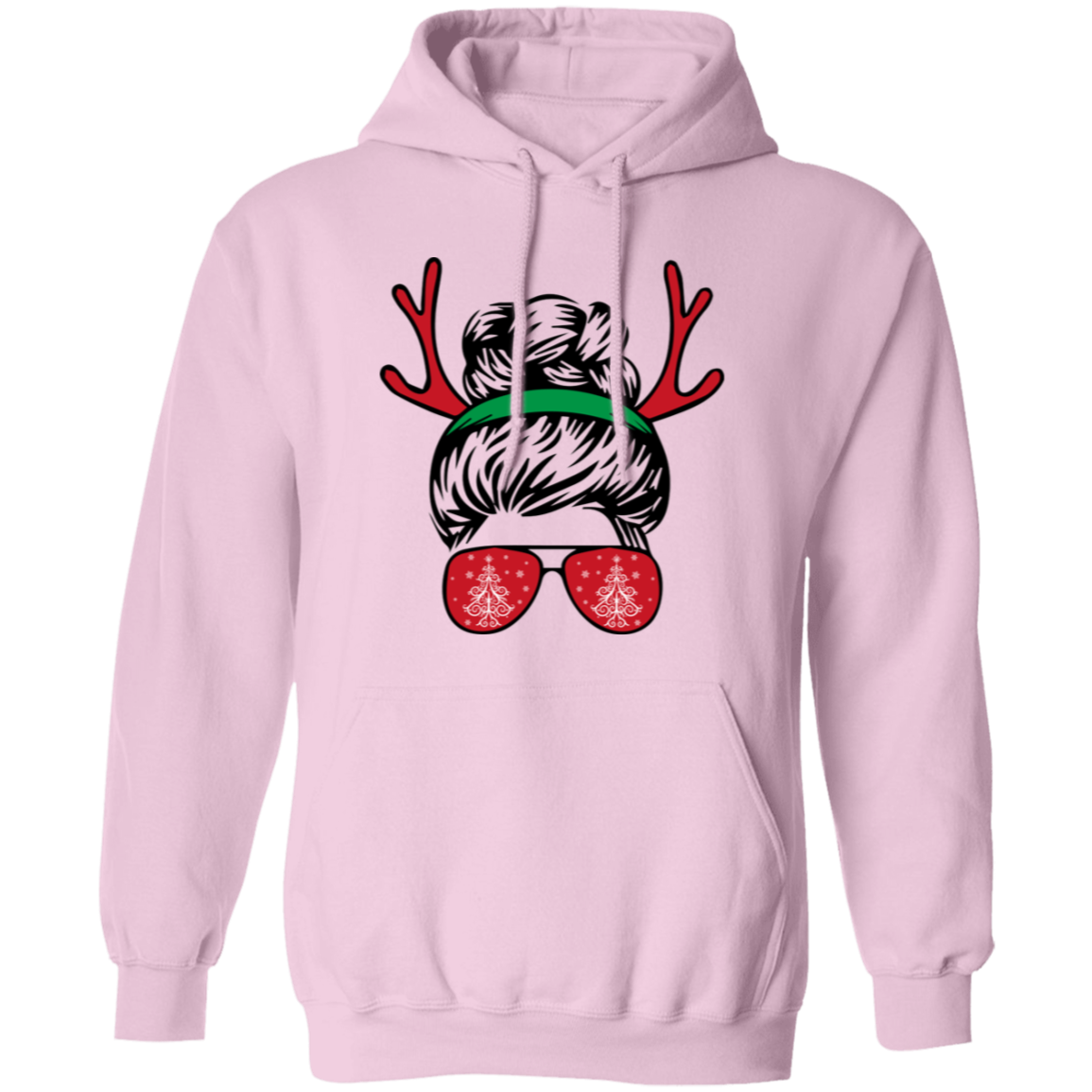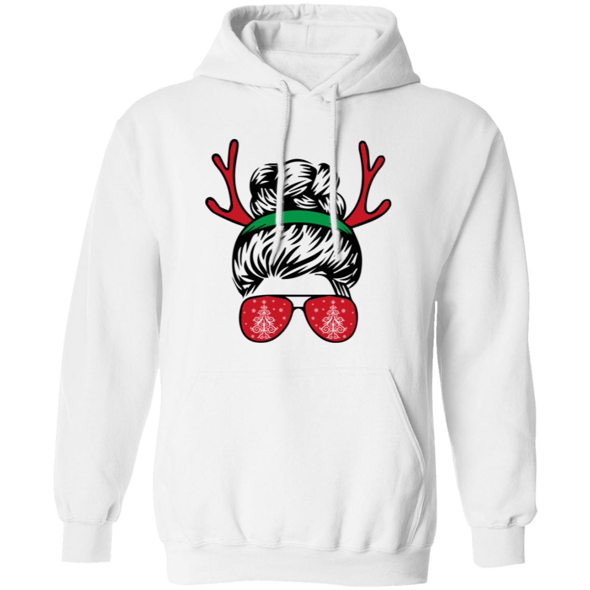 Messy Bun Girl, Girl With Deer Horn, Christmas Tree In Glasses, Merry Christmas, Trendy Chrismas Pullover Hoodie