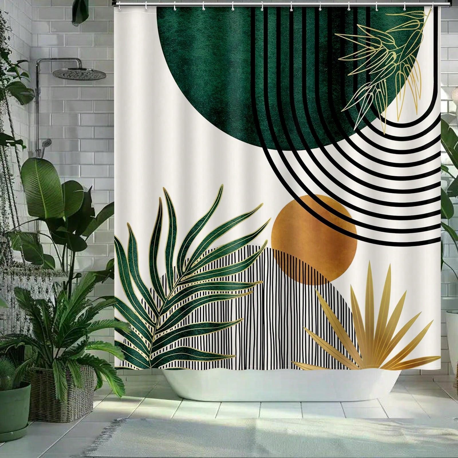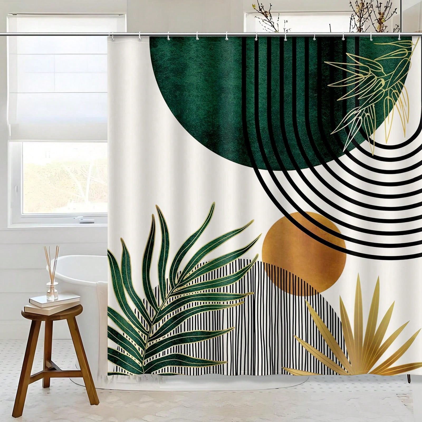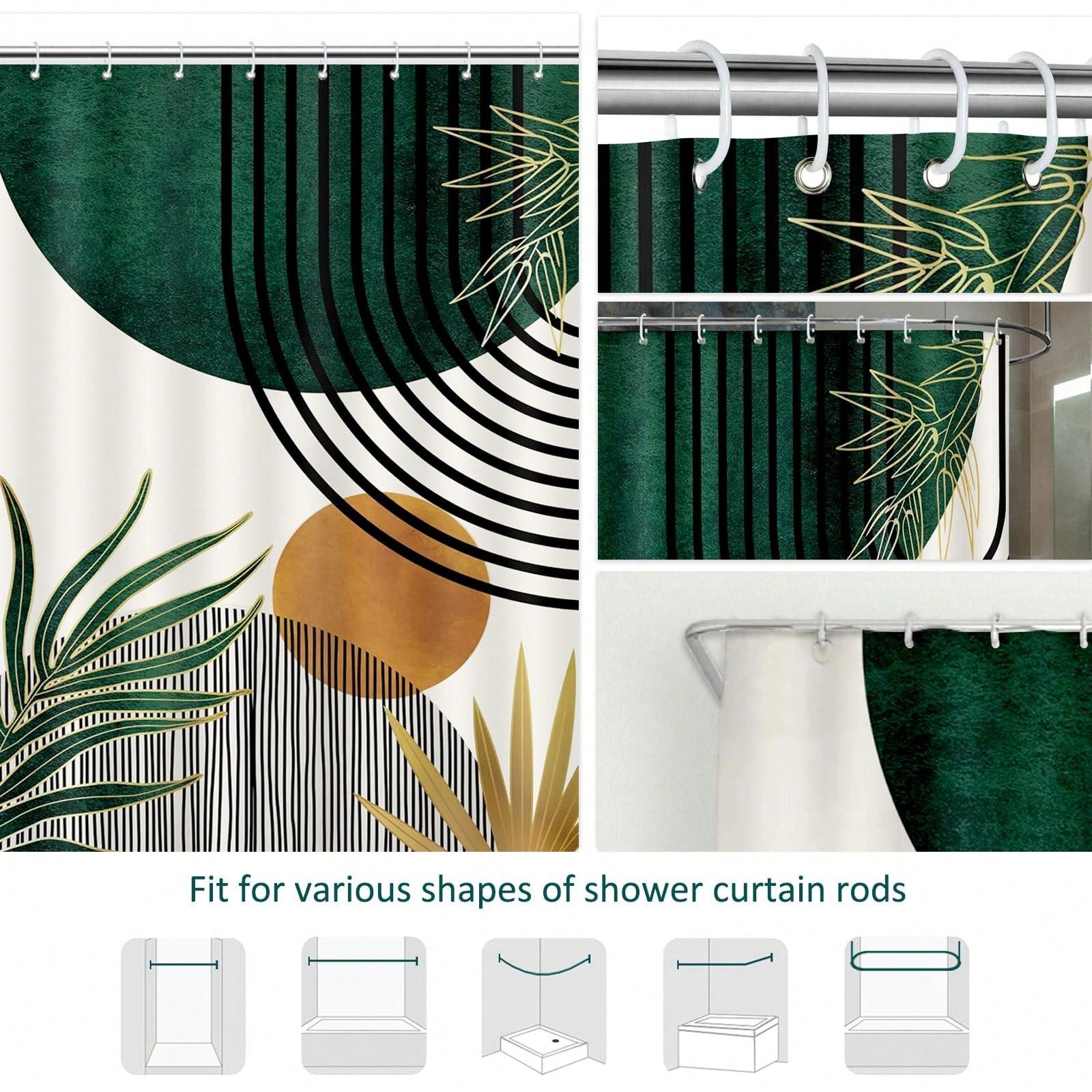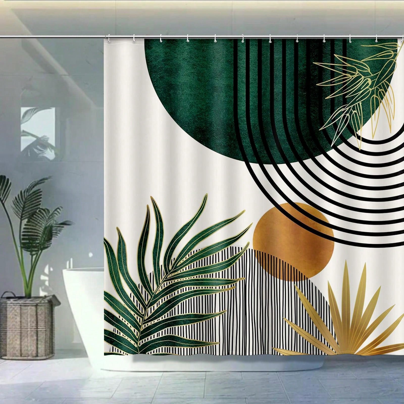 Mid-Century Boho Abstract Shower Curtain - 72"x72" Waterproof Bath Curtain with 12 Hooks