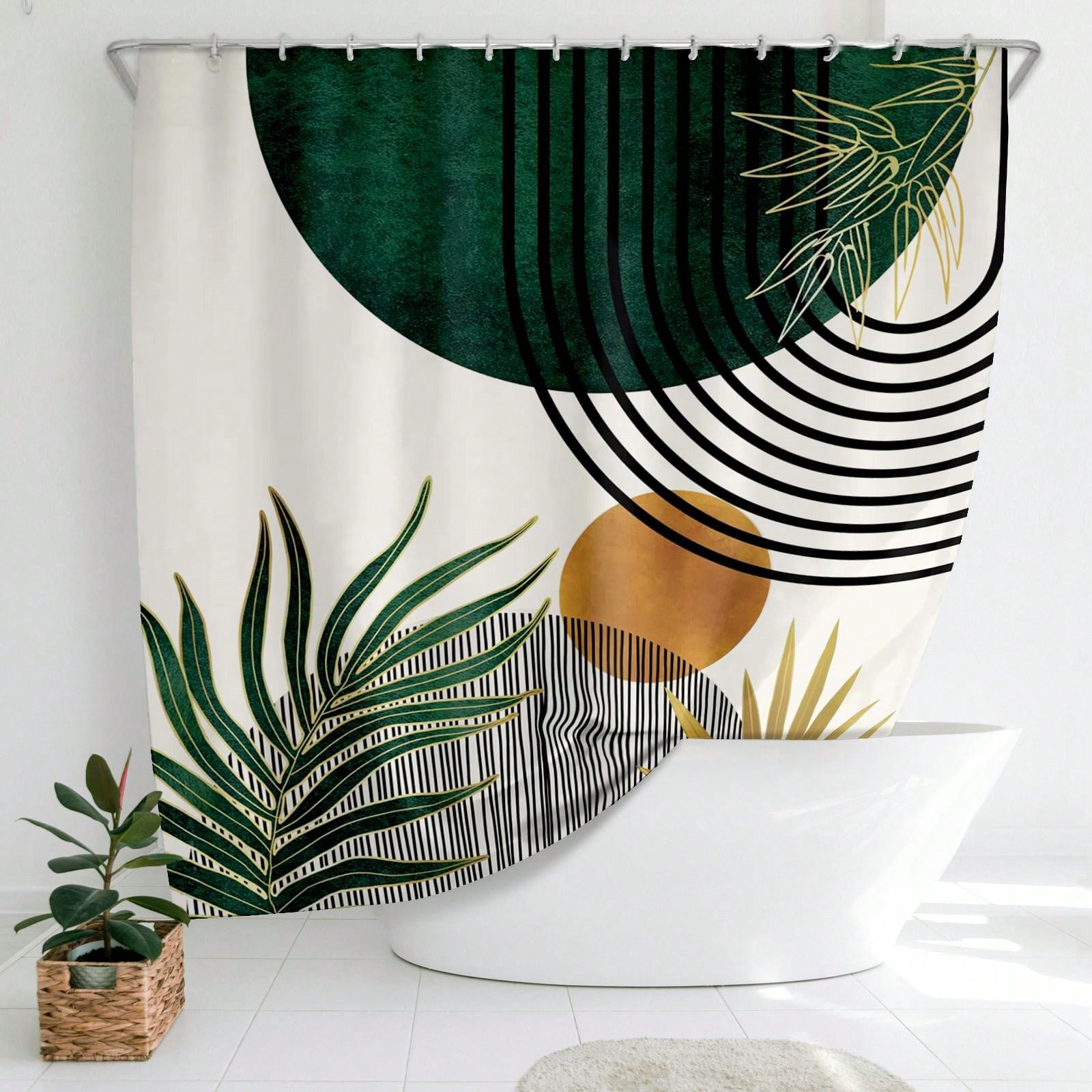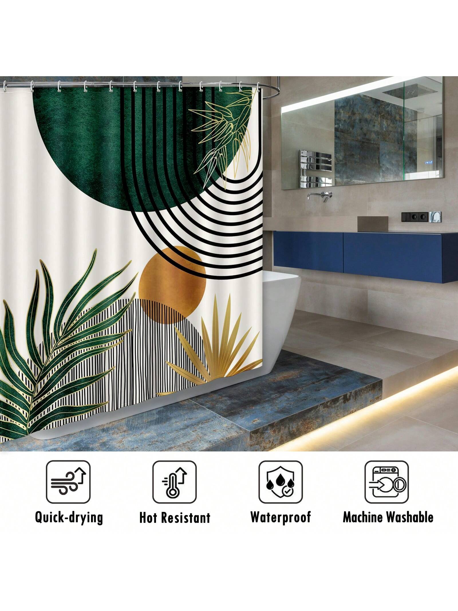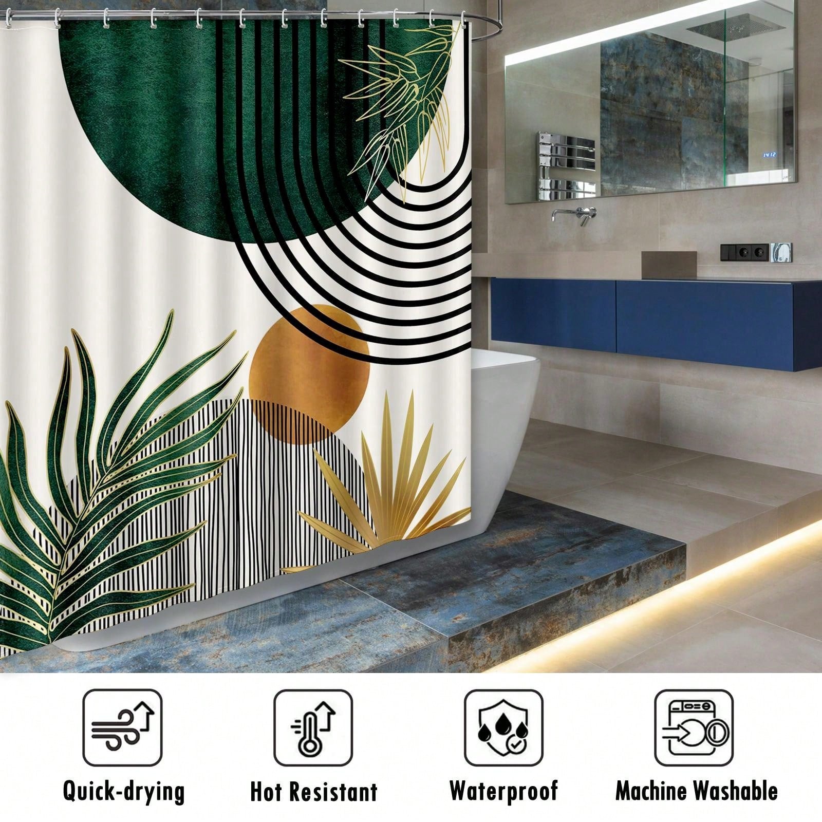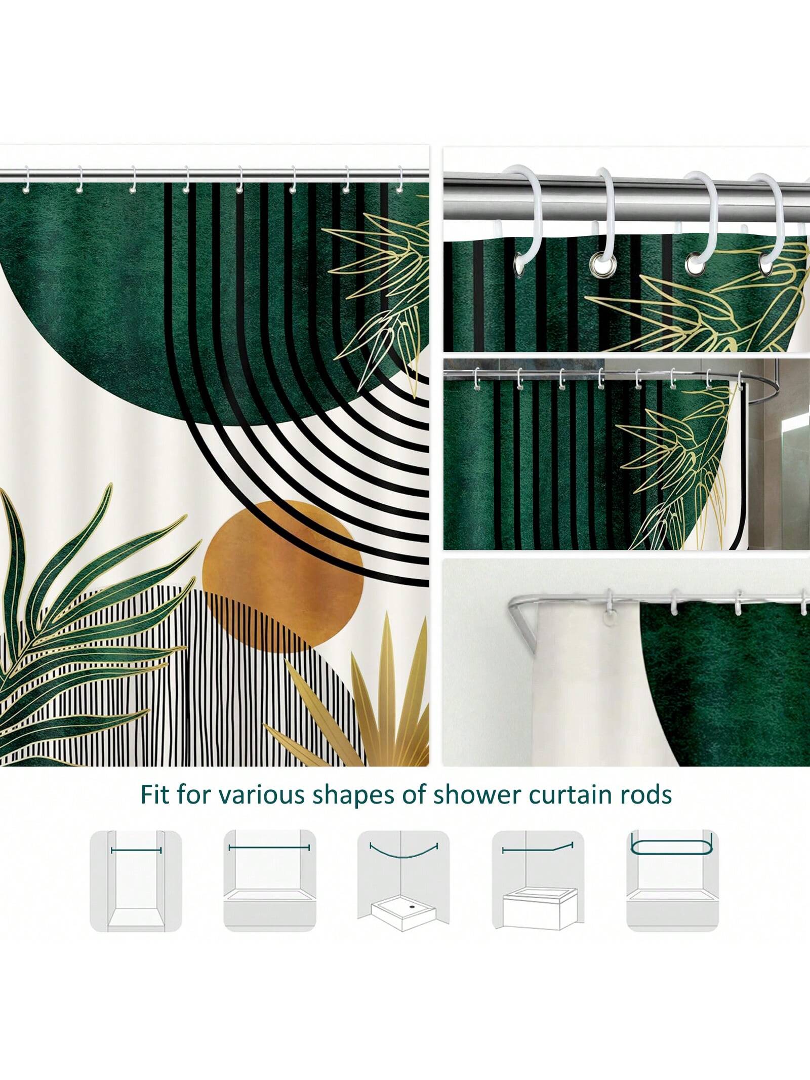 Mid-Century Boho Abstract Shower Curtain - 72"x72" Waterproof Bath Curtain with 12 Hooks