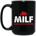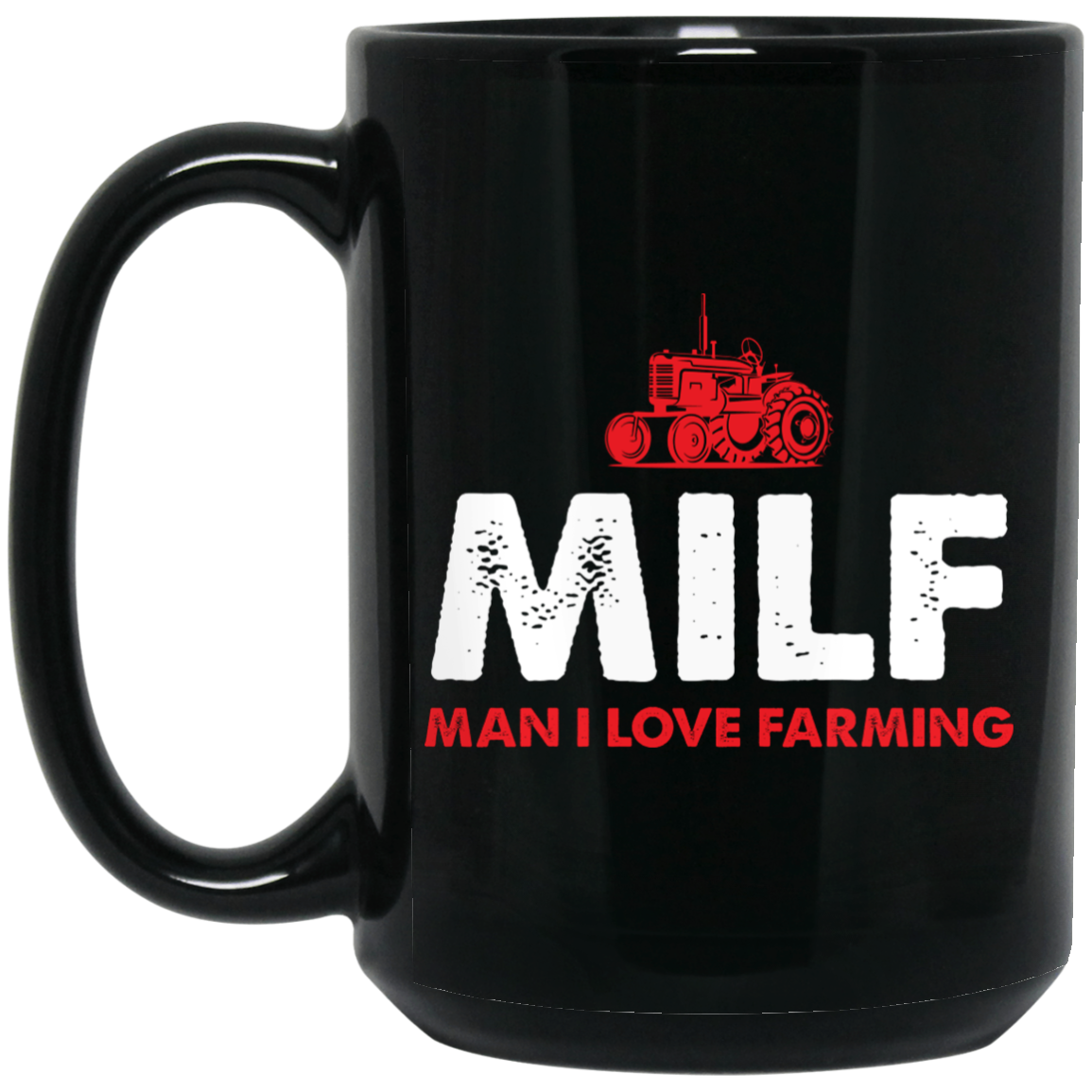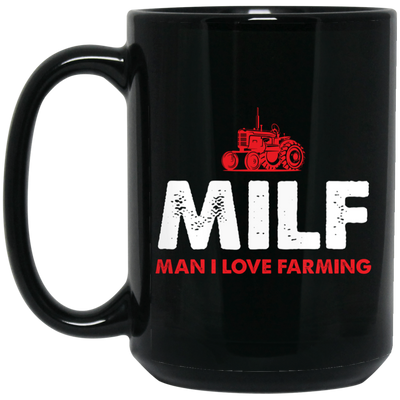 Milf, Man I Love Farming, Retro Farmer, Tractor Driver Black Mug