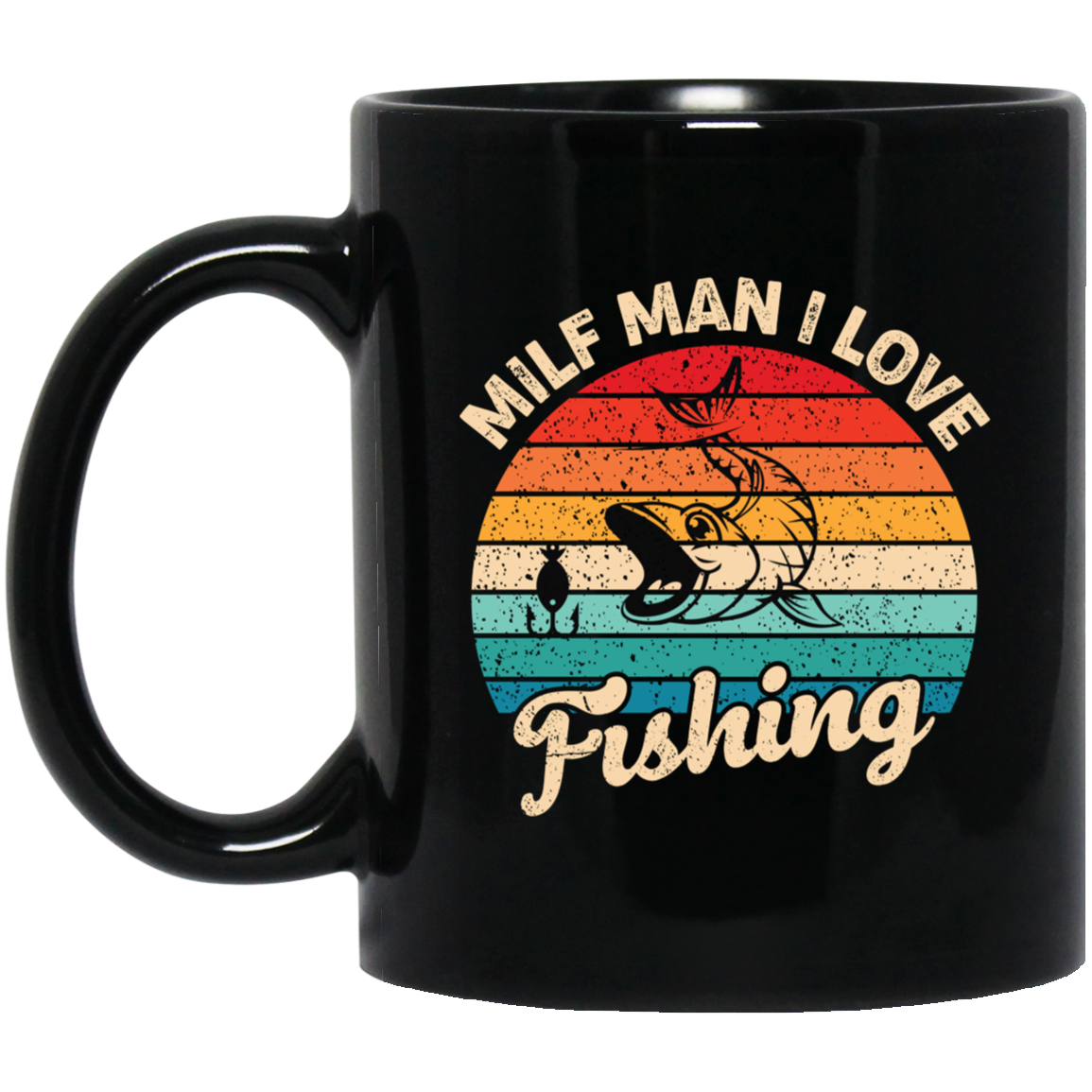 Milf Man I Love Fishing, Retro Fishing, Fishing Silhouette Black Mug