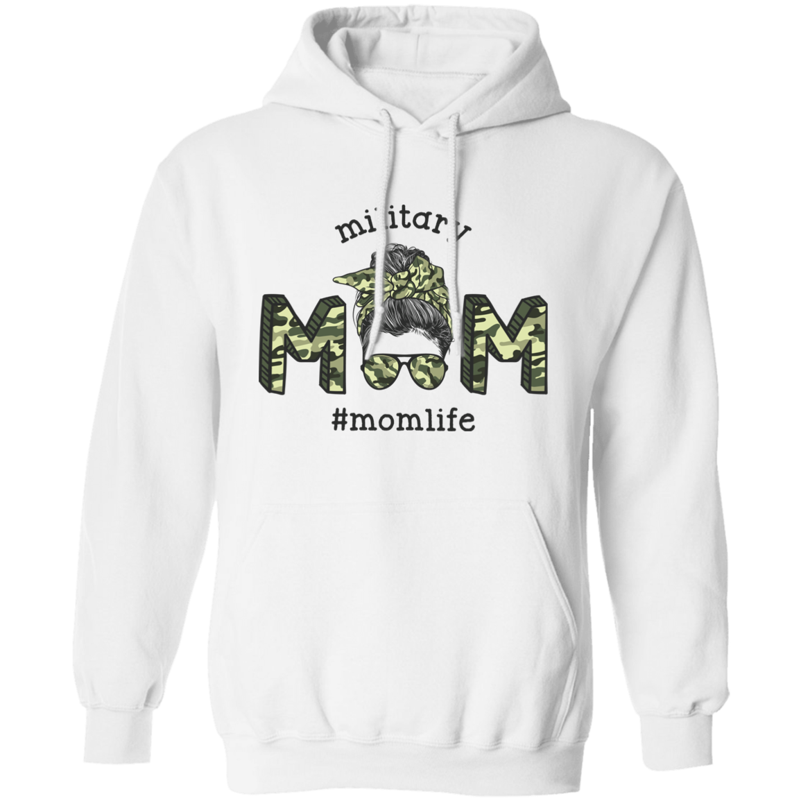 Military Mom, Mom Life, Army Mom, Messy Bun Pullover Hoodie