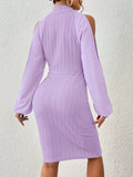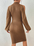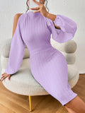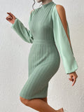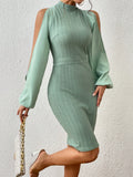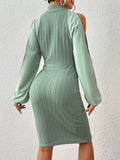 Mint Green Dream: Solid Cold Shoulder Lantern Sleeve Bodycon Dress