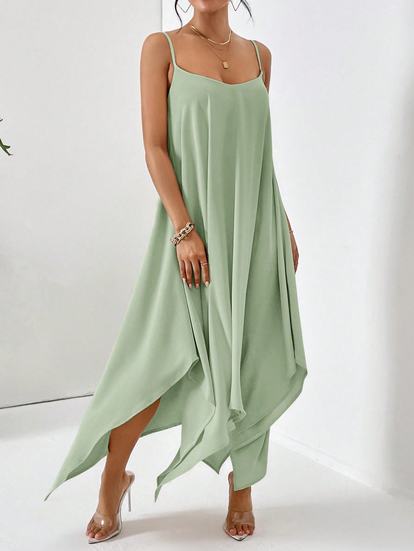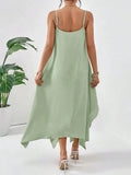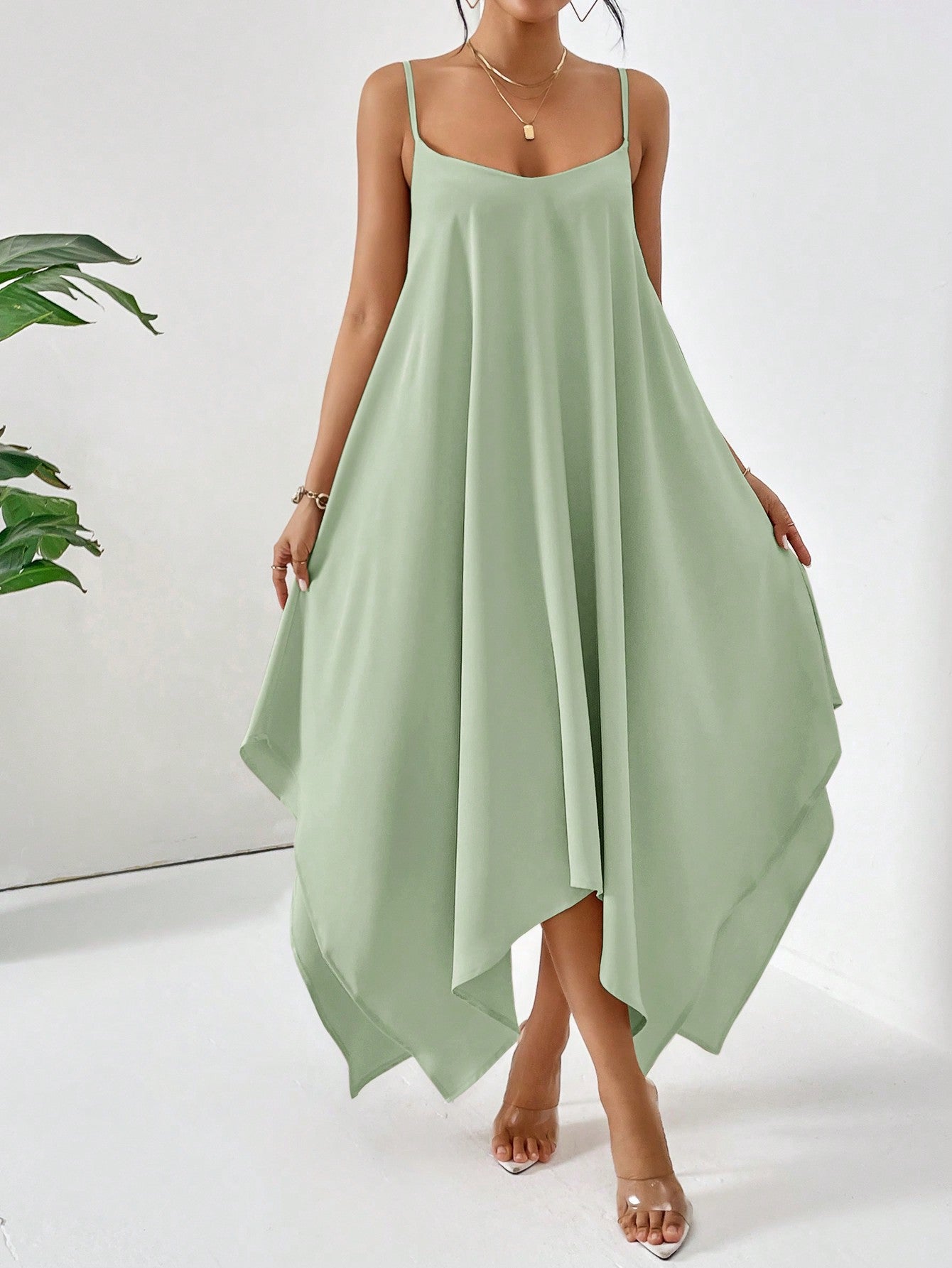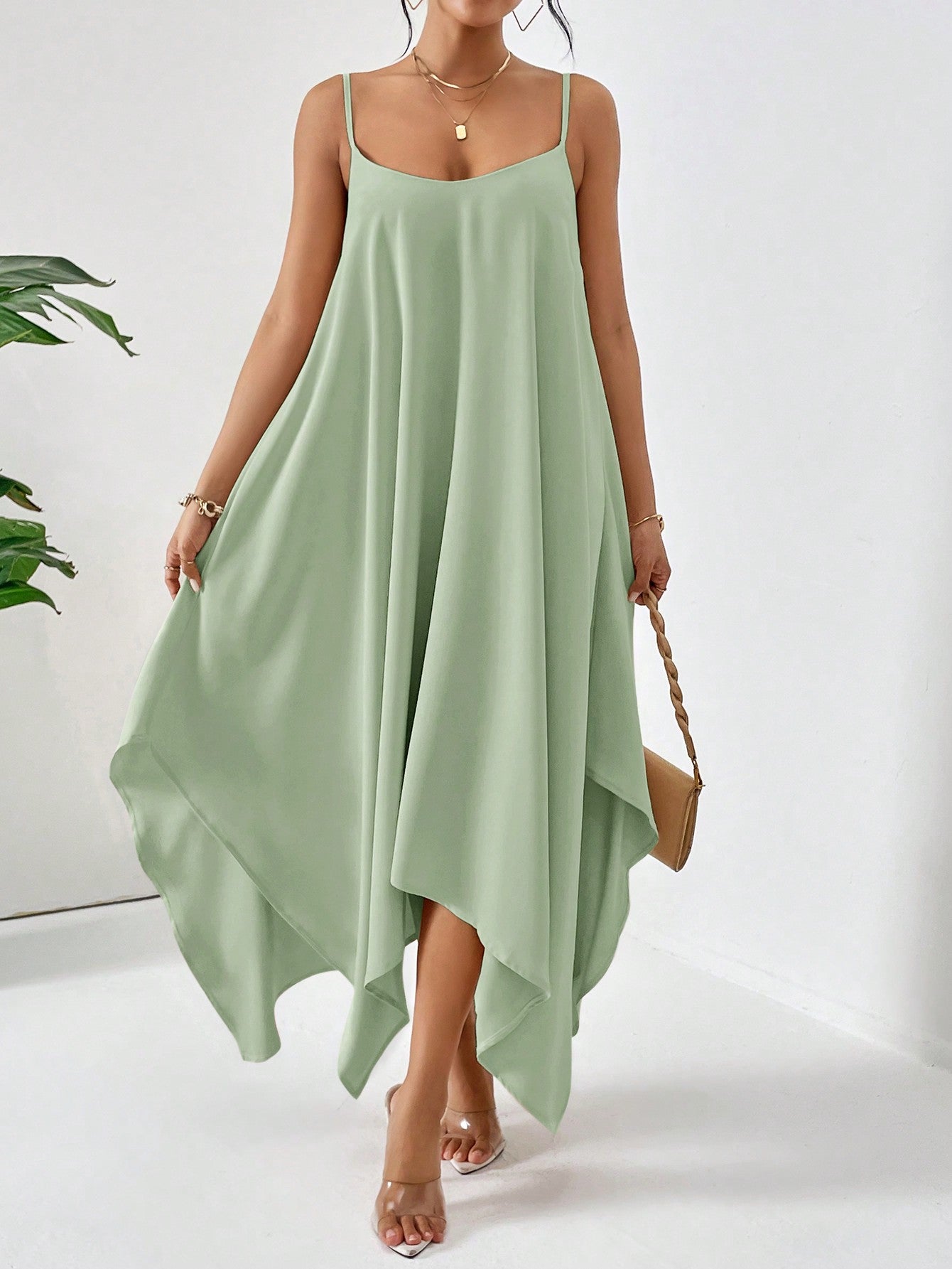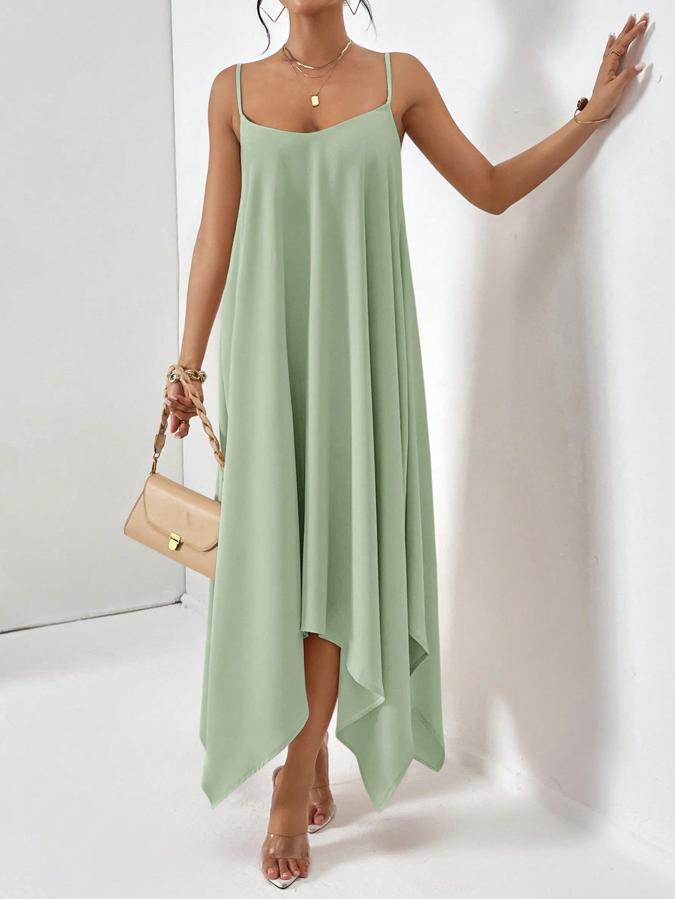 Mint Green Essence: Simple Solid Color Casual Loose Summer Dress With Asymmetric Hemline