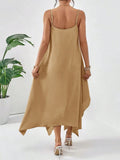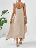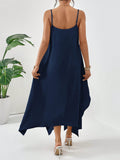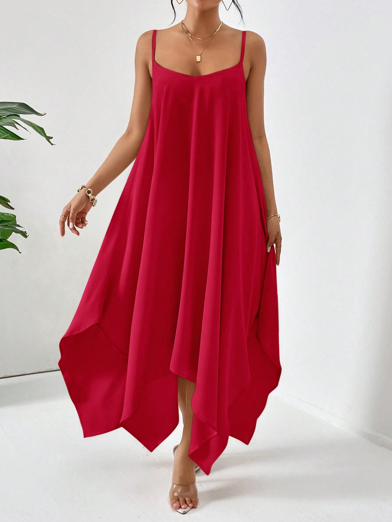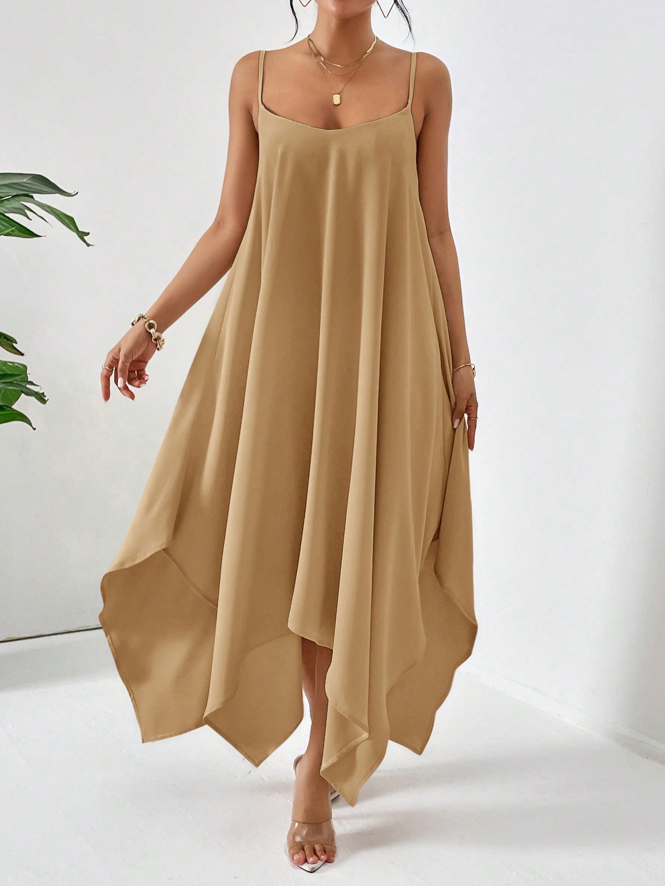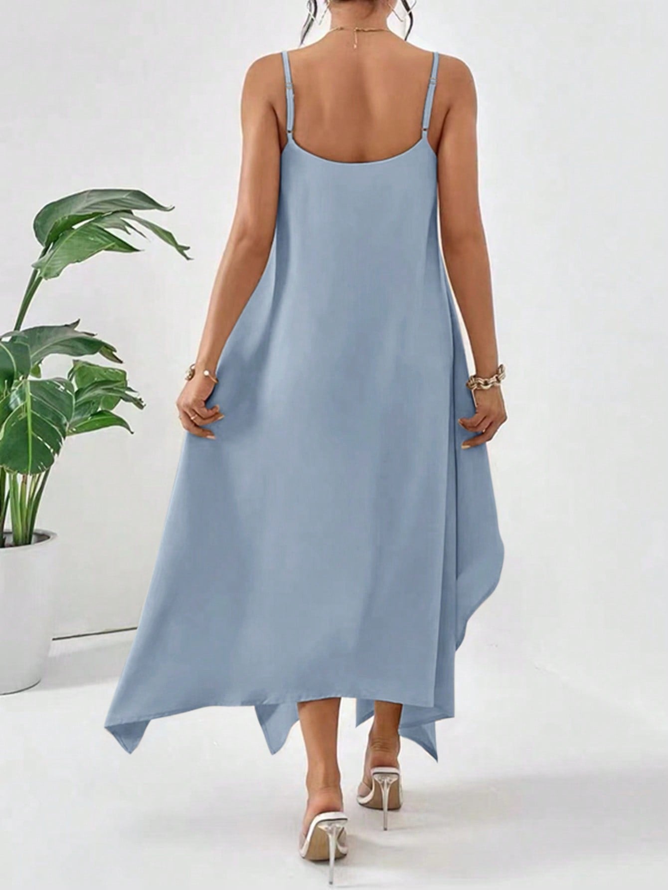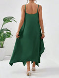 Mint Green Essence: Simple Solid Color Casual Loose Summer Dress With Asymmetric Hemline