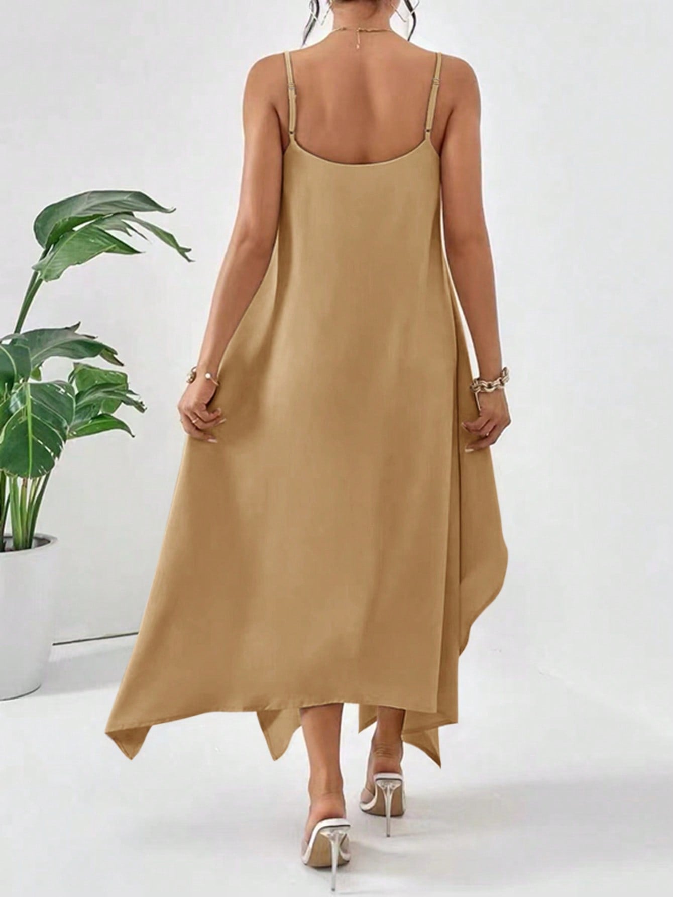 Tap into your inner fashionista with our Mint Green Essence Dress. This simple yet stylish summer dress features a loose fit and an asymmetric hemline, adding a unique touch to your wardrobe. Made with high-quality material, this dress offers both comfort and style for any occasion.