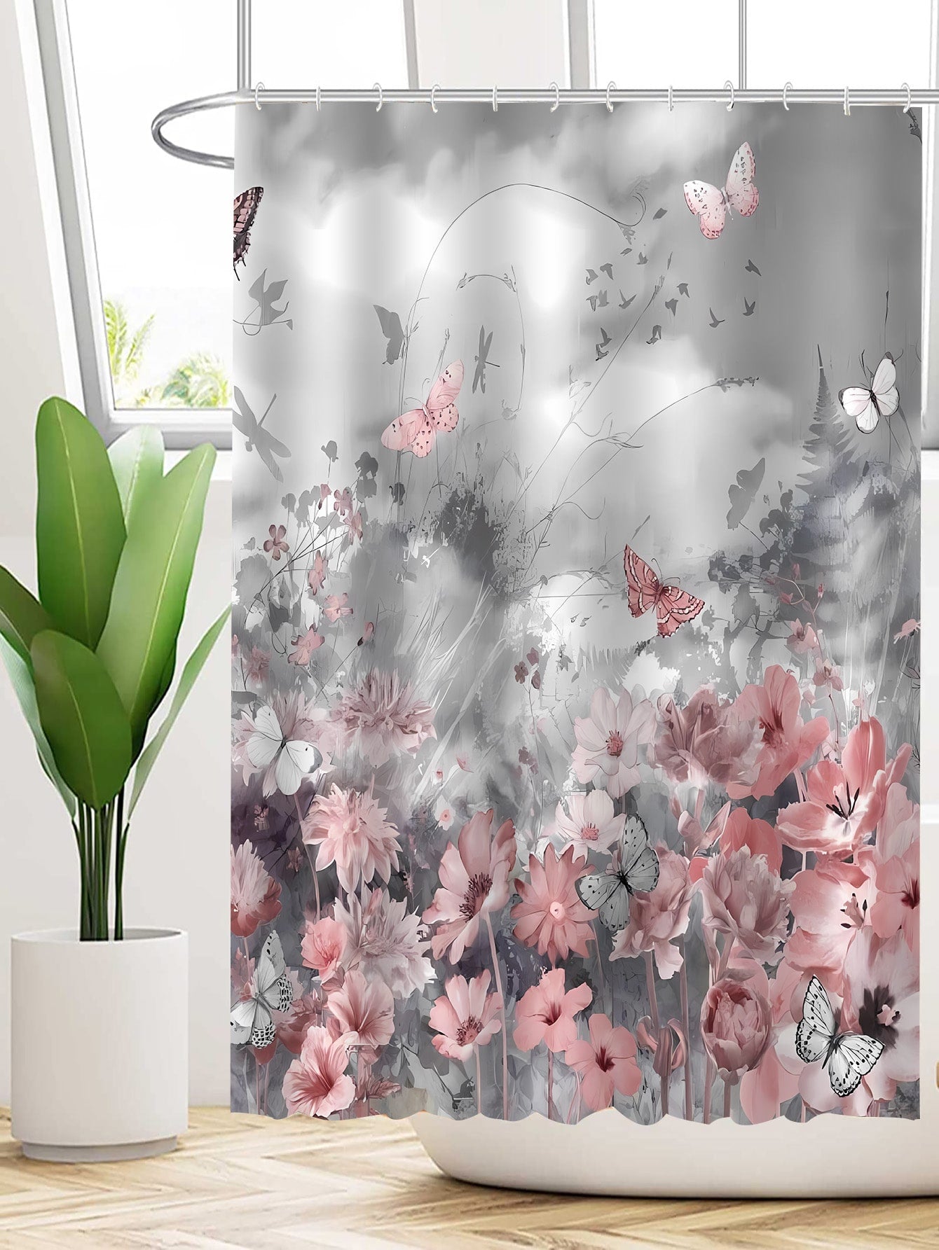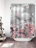 Modern Style Grey Sky Pink Floral Shower Curtain: Anti-Mold, Moisturizing, and Waterproof