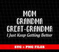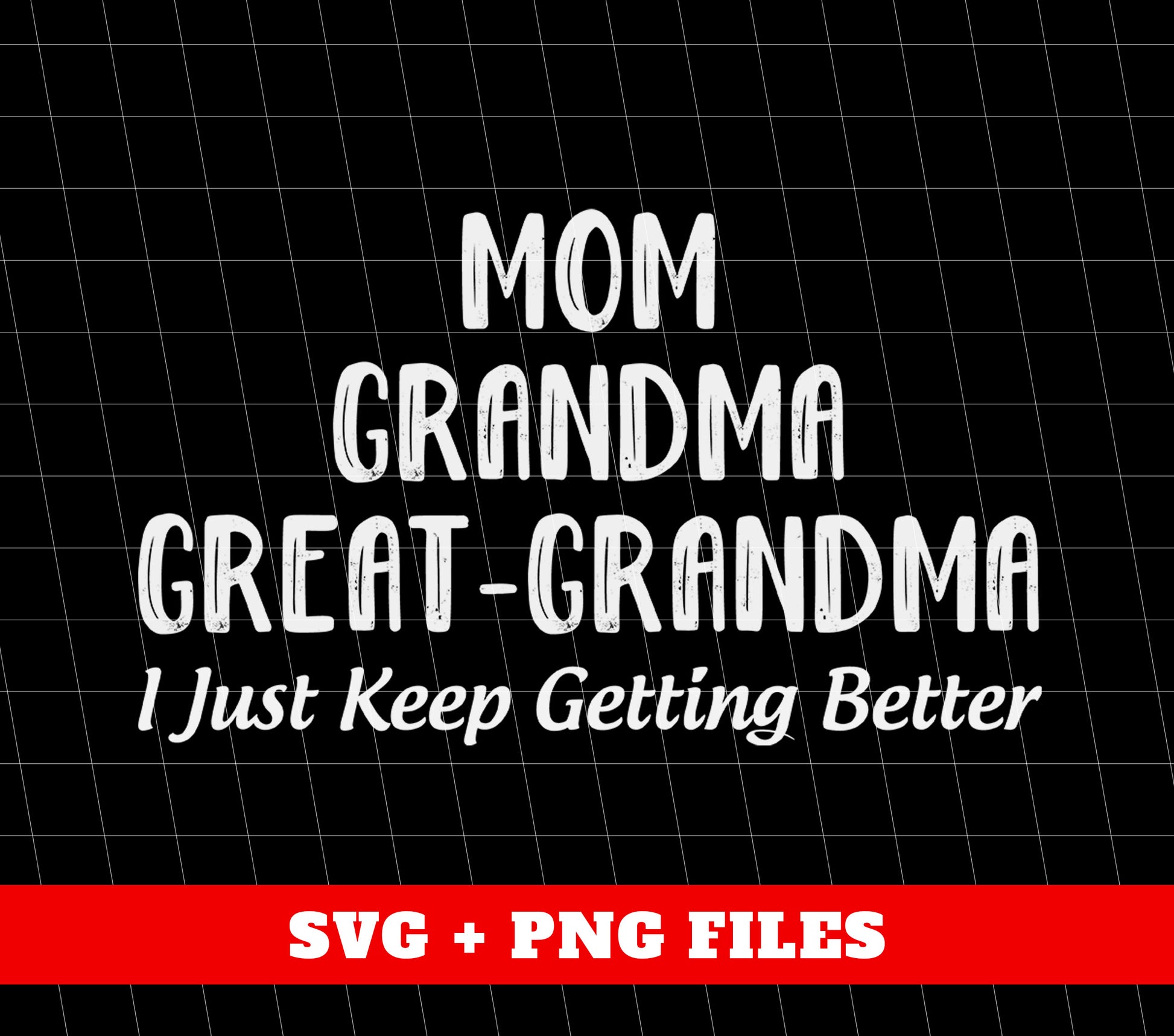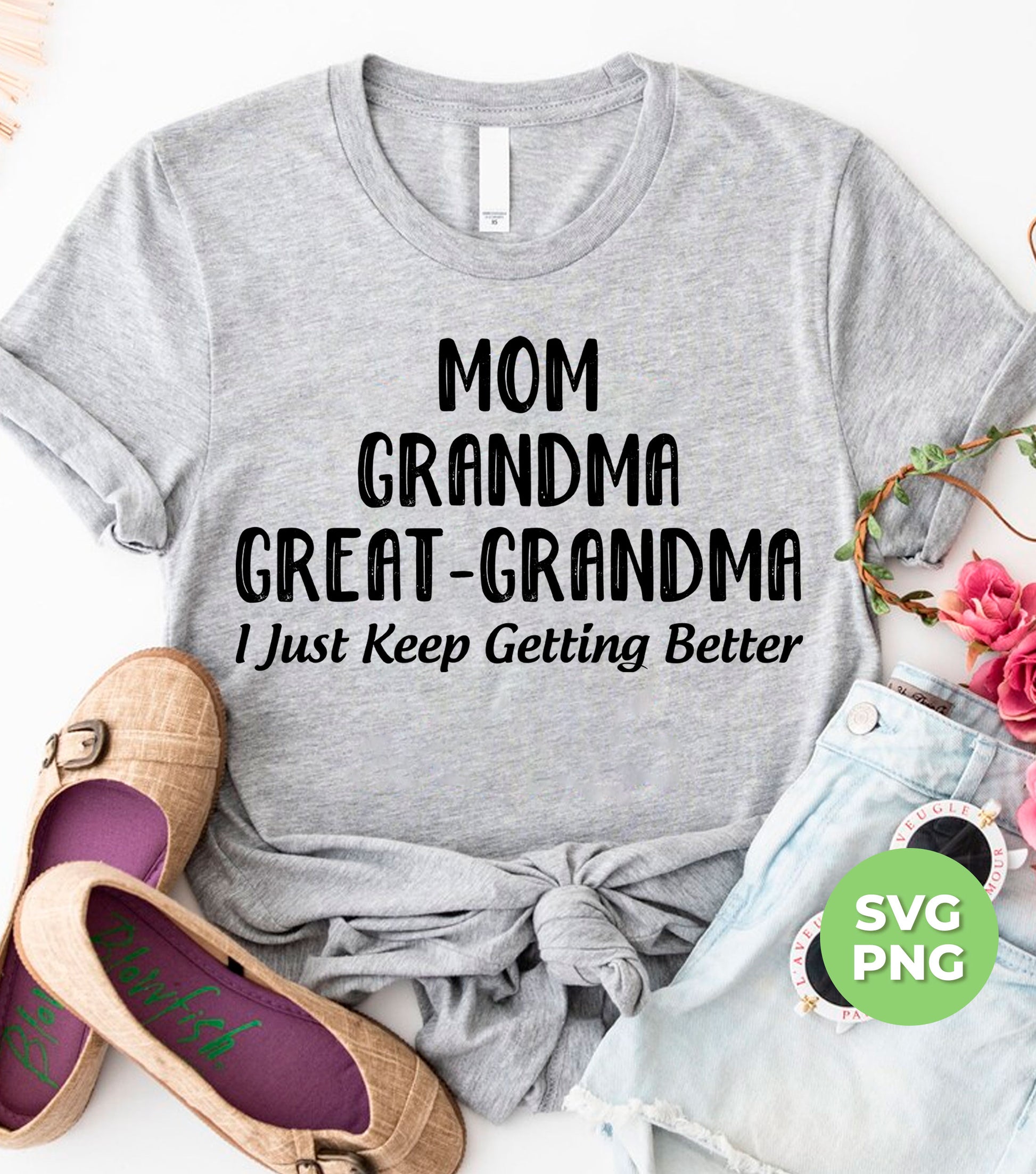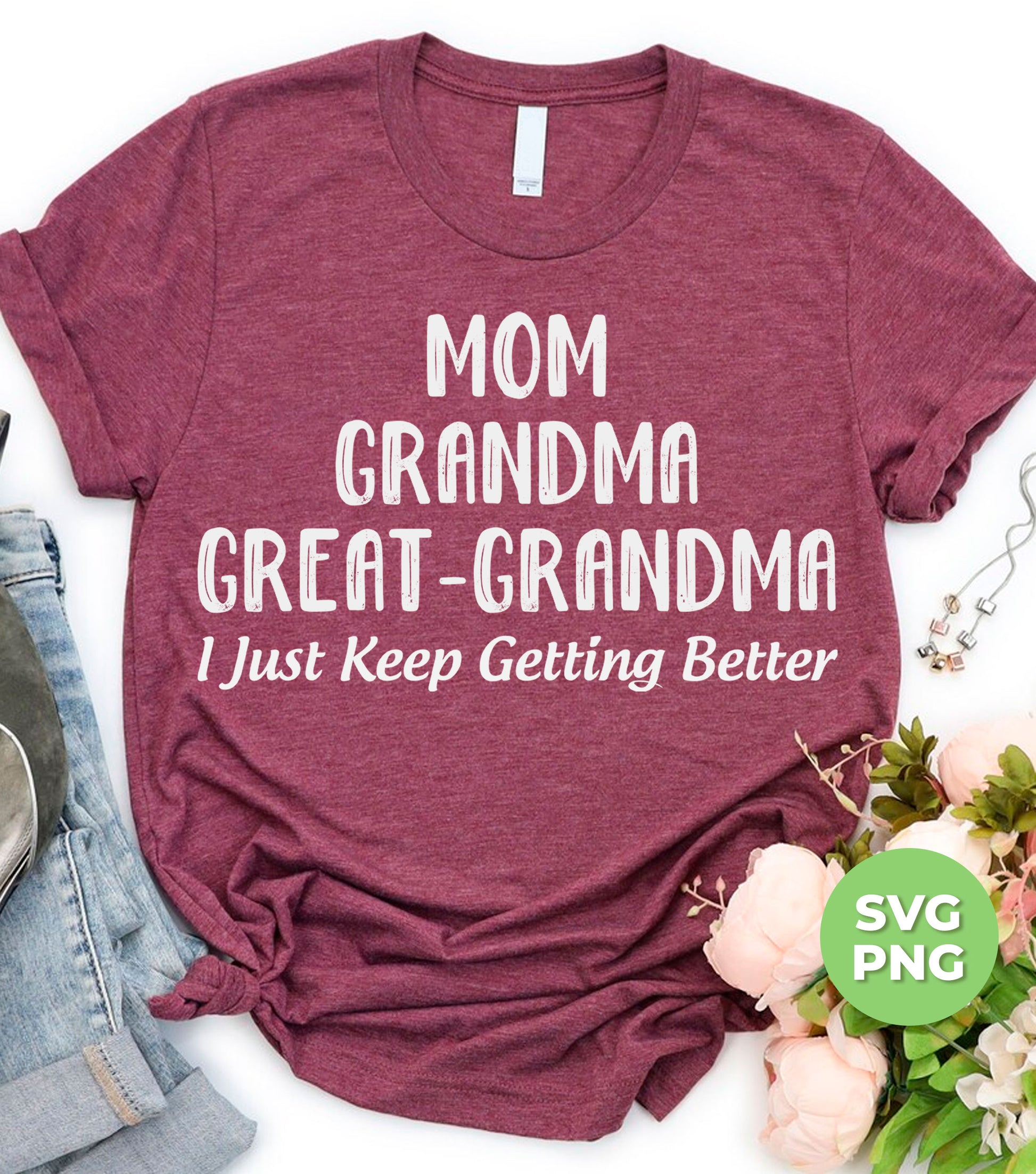 Mom, Grandma, Great-Grandma, I Just Keep Getting Better, Digital Files, Png Sublimation