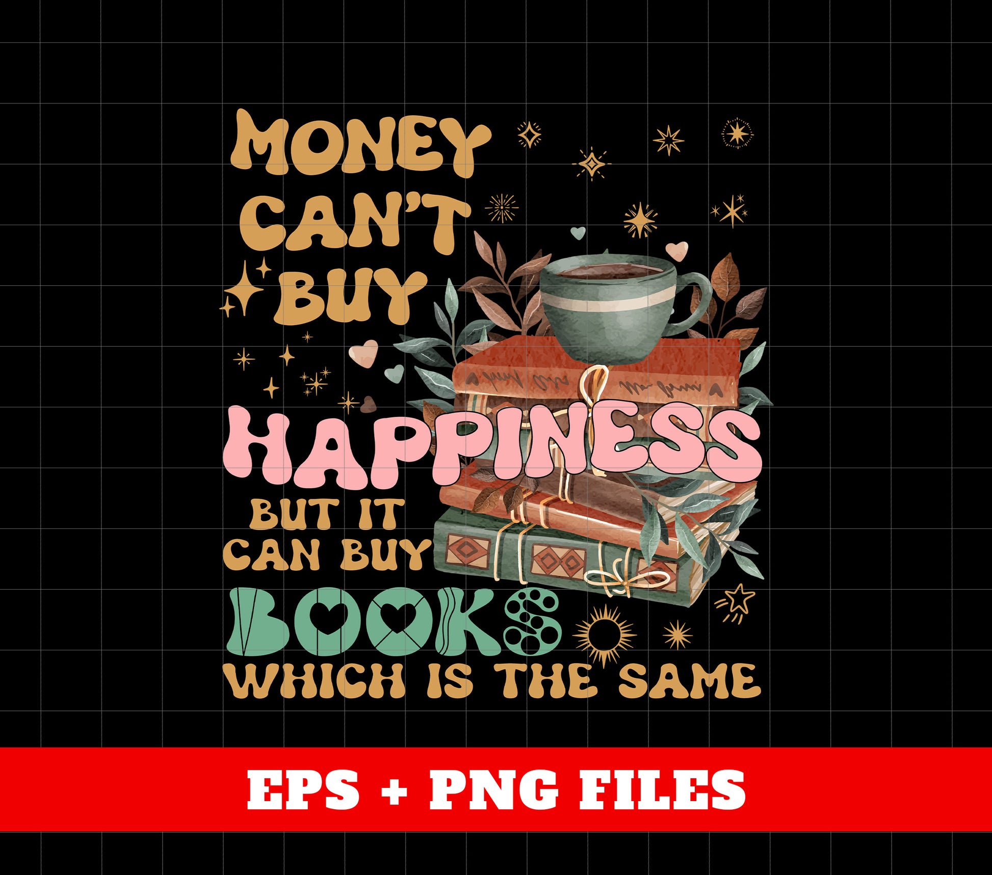 Money Can't Buy Happiness, But It Can Buy Books, Which Is The Same, Digital Files, Png Sublimation