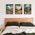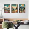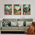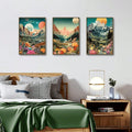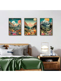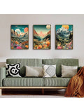 Moonlit Mountain Wonderland: 3pcs Modern Abstract Canvas Poster Set