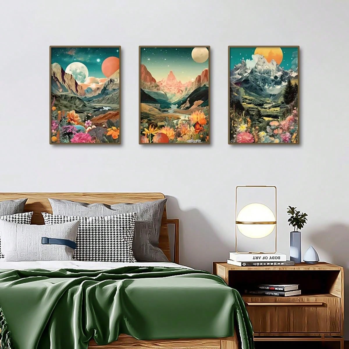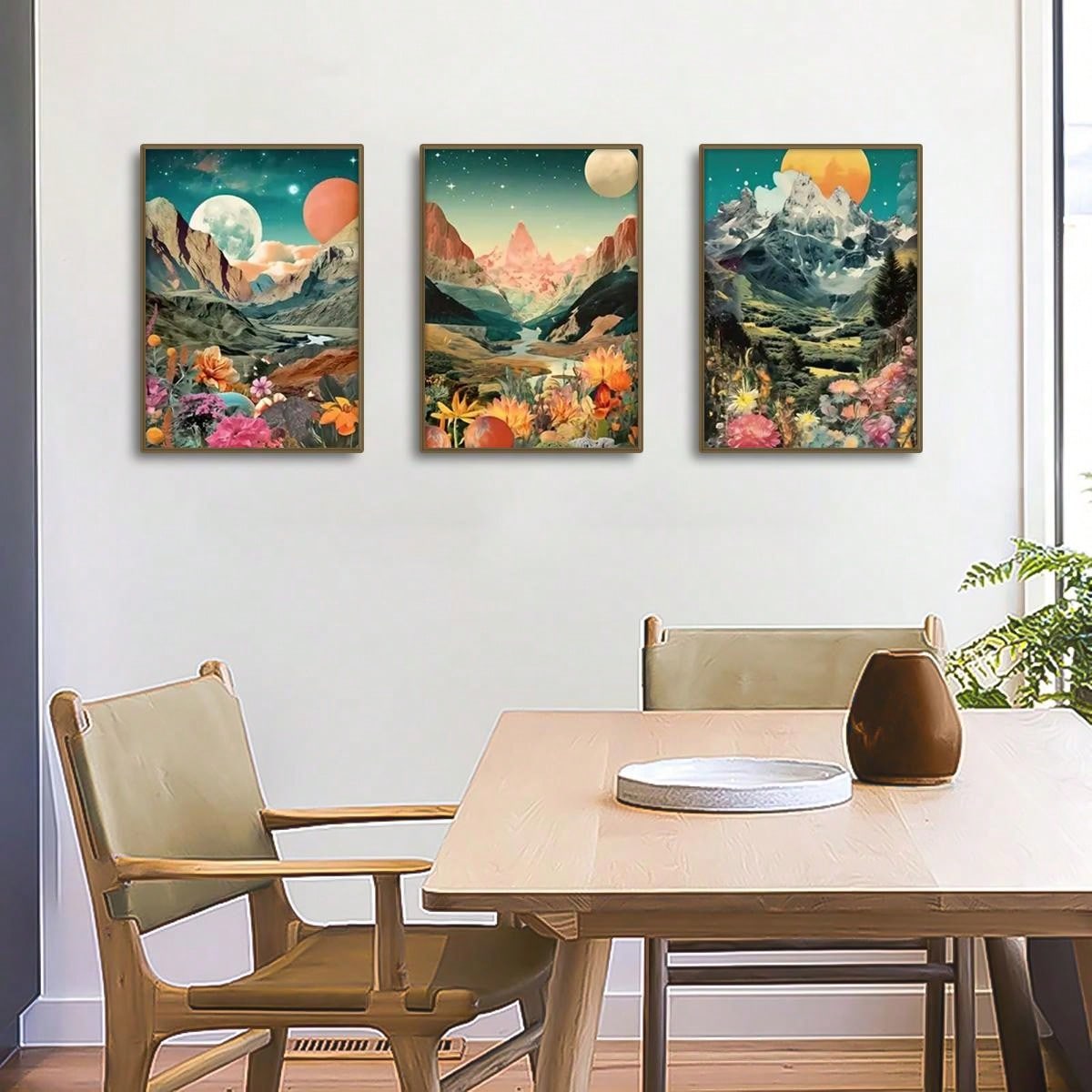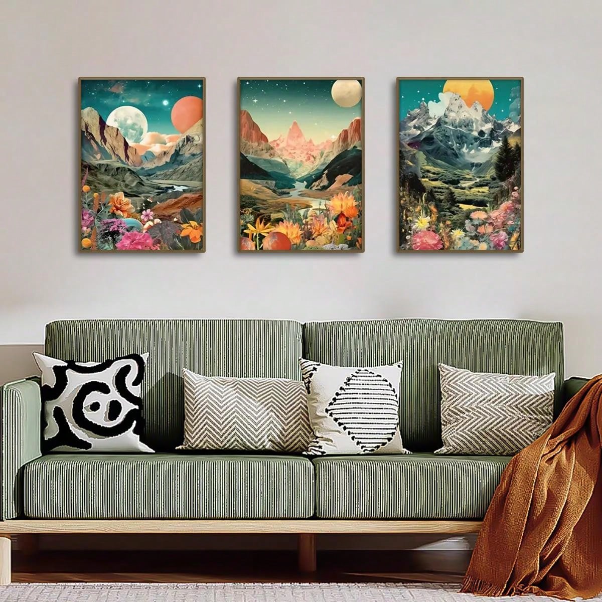 Create a breathtakingly beautiful atmosphere in your home with the Moonlit Mountain Wonderland: 3pcs Modern Abstract Canvas Poster Set. Each piece features a stunning and unique abstract design, perfect for adding a touch of sophistication to any room.