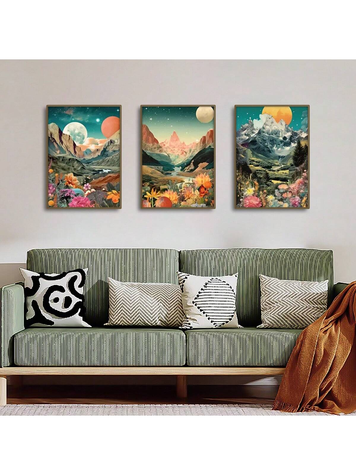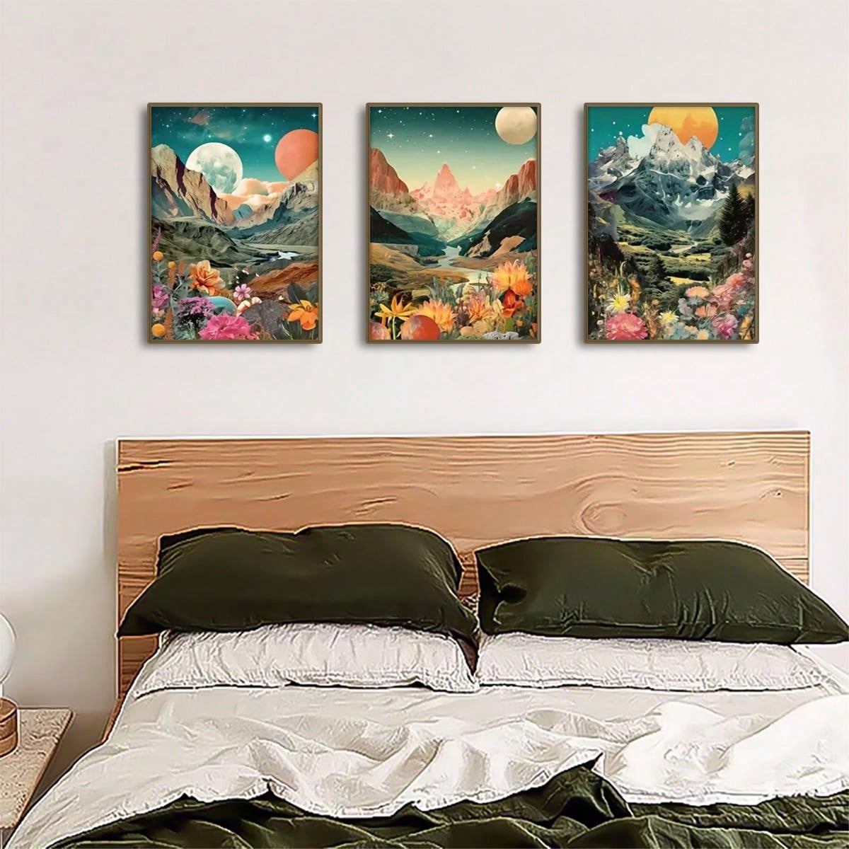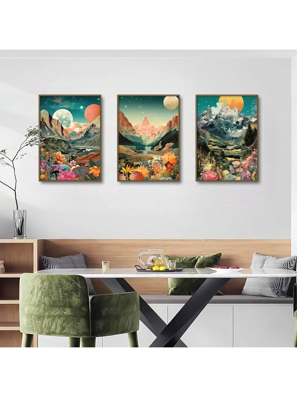 Create a breathtakingly beautiful atmosphere in your home with the Moonlit Mountain Wonderland: 3pcs Modern Abstract Canvas Poster Set. Each piece features a stunning and unique abstract design, perfect for adding a touch of sophistication to any room.