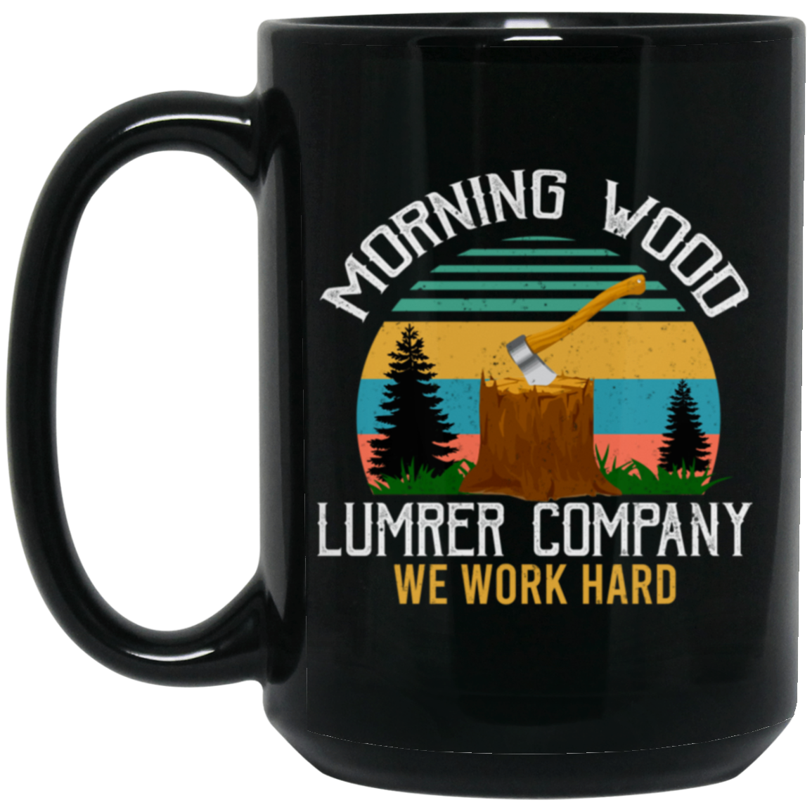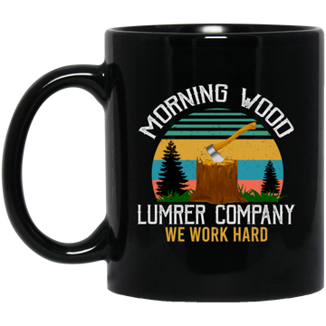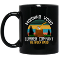 Morning Wood Retro, Lumber Company Funny Camping Carpent Black Mug