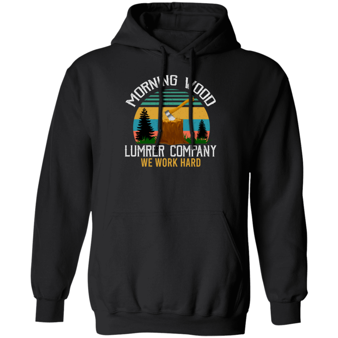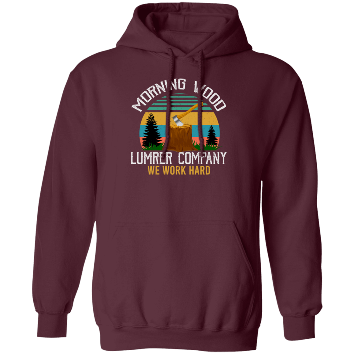 Morning Wood Retro, Lumber Company Funny Camping Carpent Pullover Hoodie