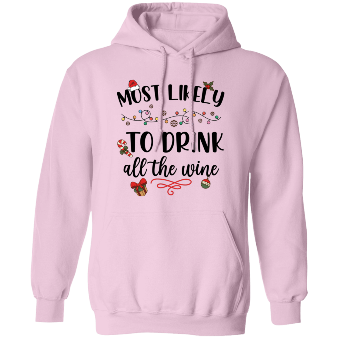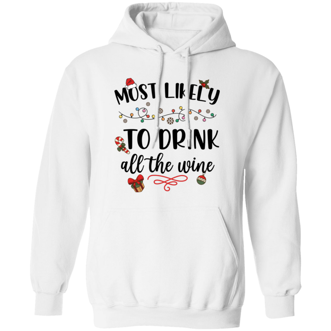 Most Likely To Drink All The Wine, Drinking Christmas, Merry Christmas, Trendy Chrismas Pullover Hoodie