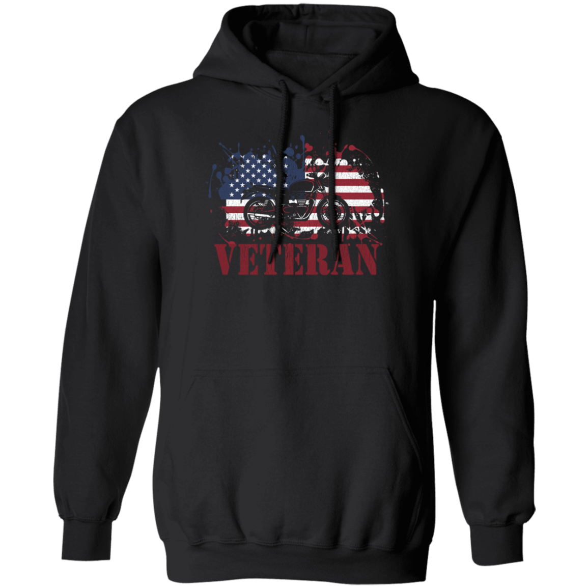 Motorcycle Veteran, Military Biker, American Flag, American Veteran Pullover Hoodie