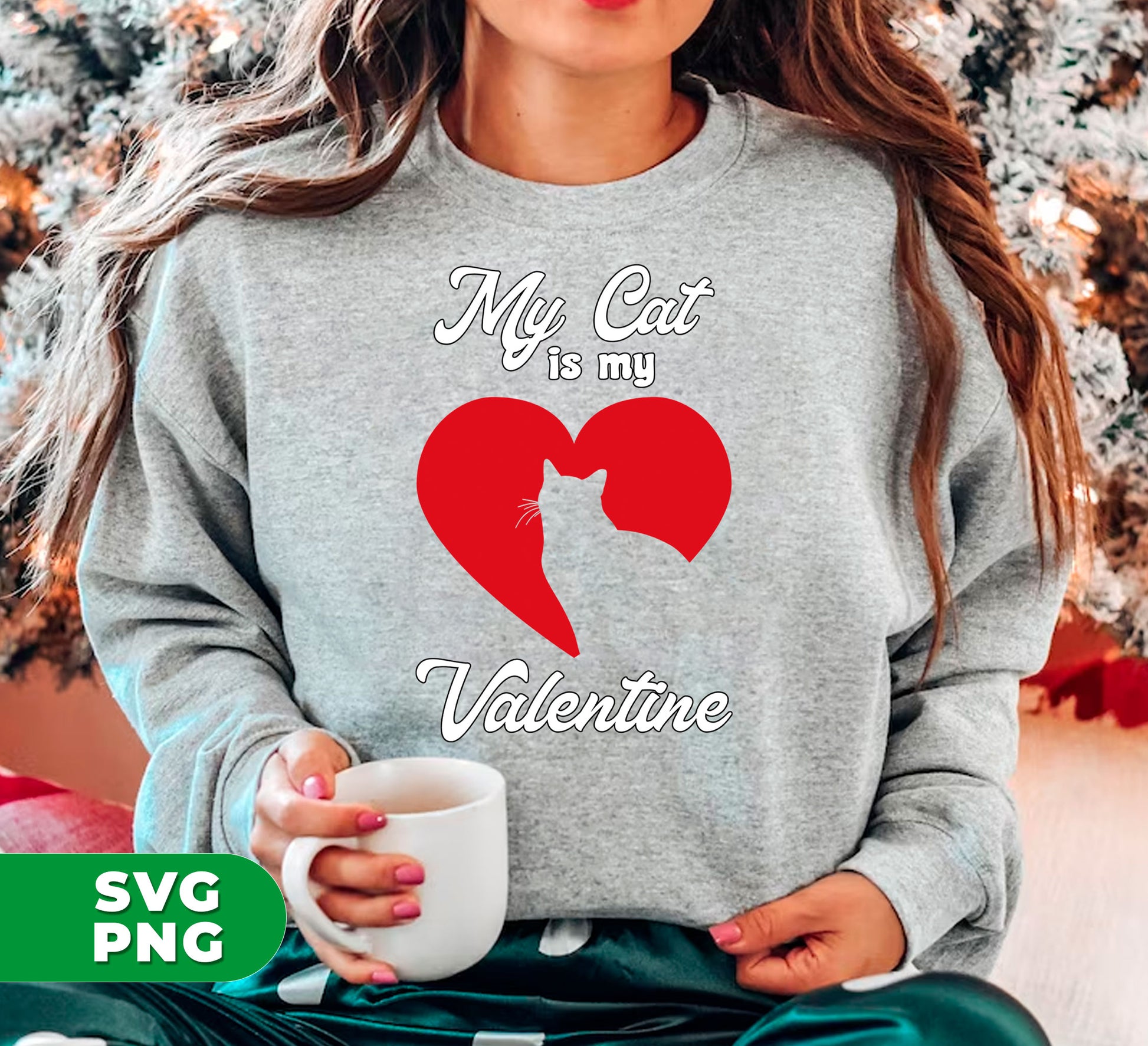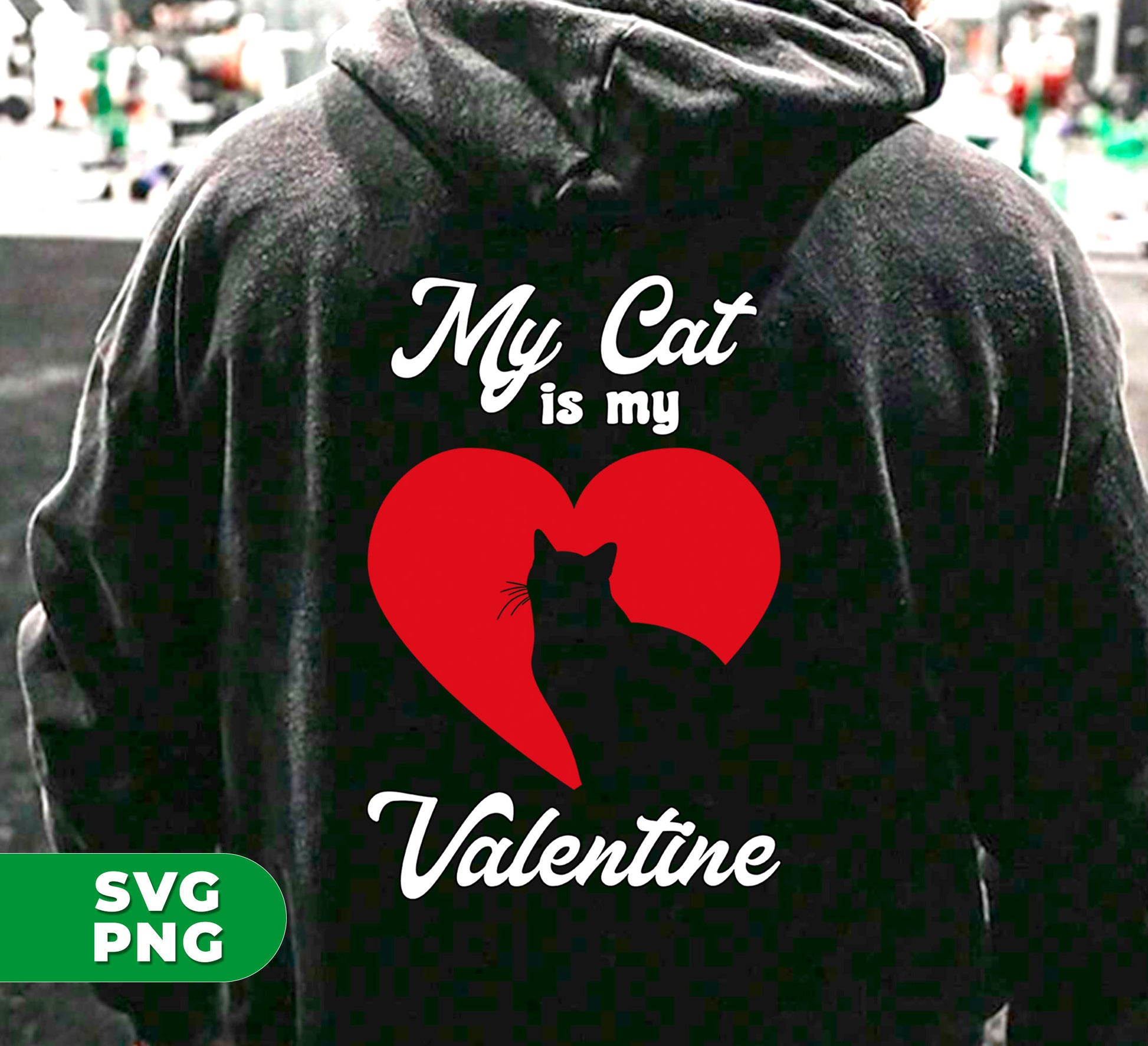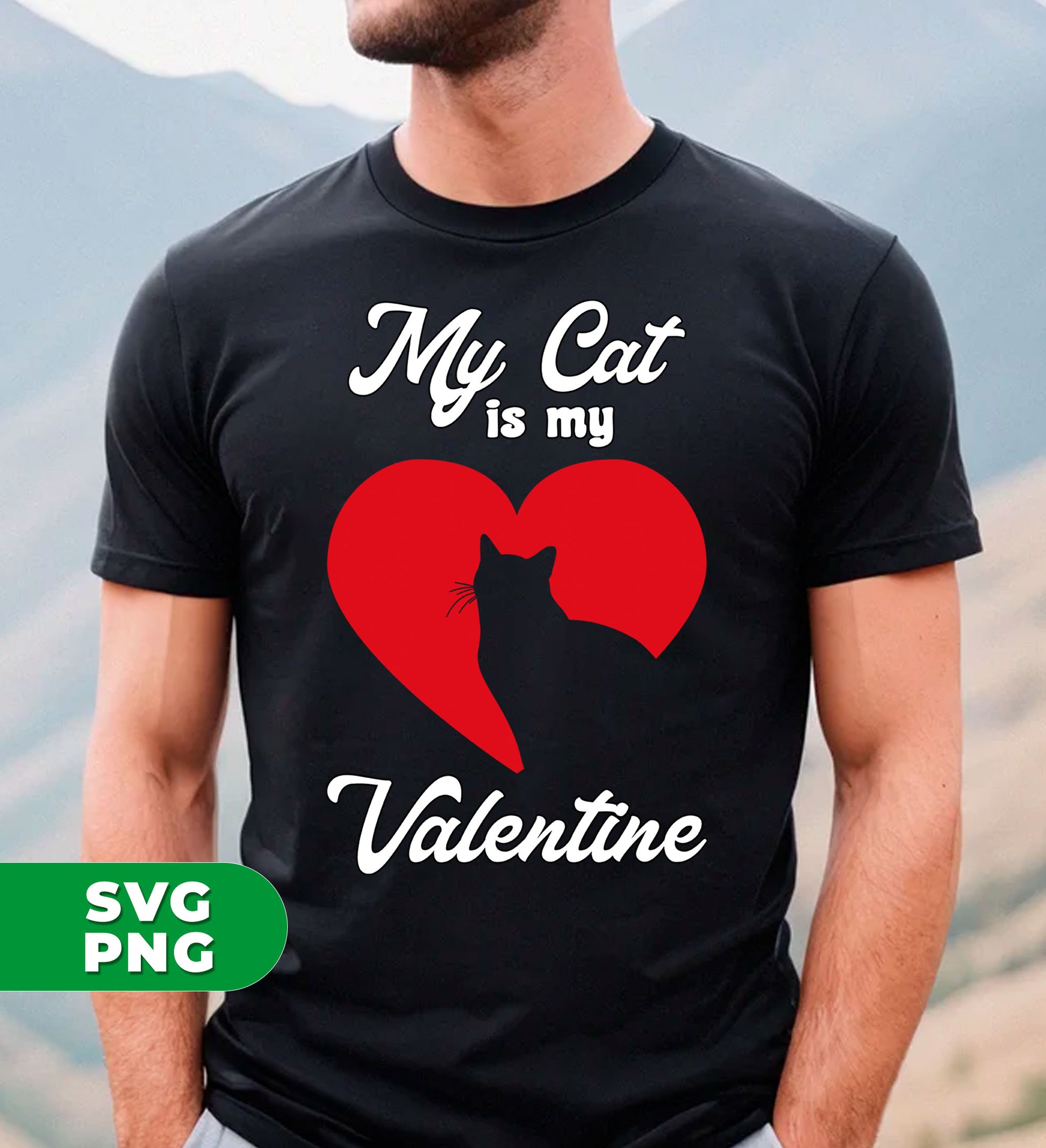 My Cat Is My Valentine, Cat Silhouette, Cat In Heart, Digital Files, Png Sublimation
