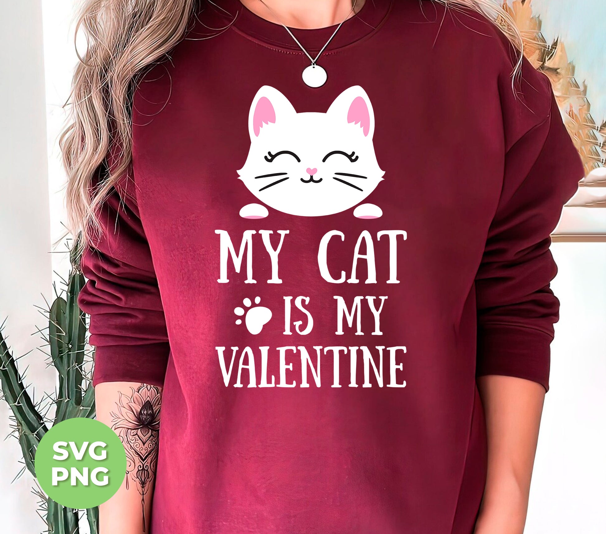My Cat Is My Valentine, White Cat, Cute Cat, Cat Valentine, Digital Files, Png Sublimation