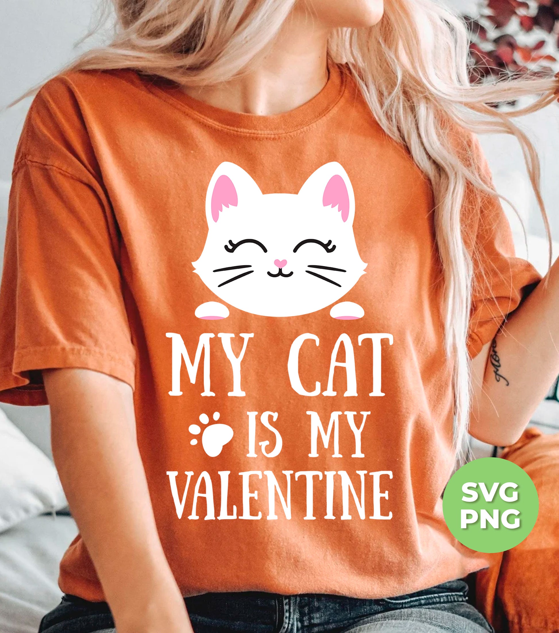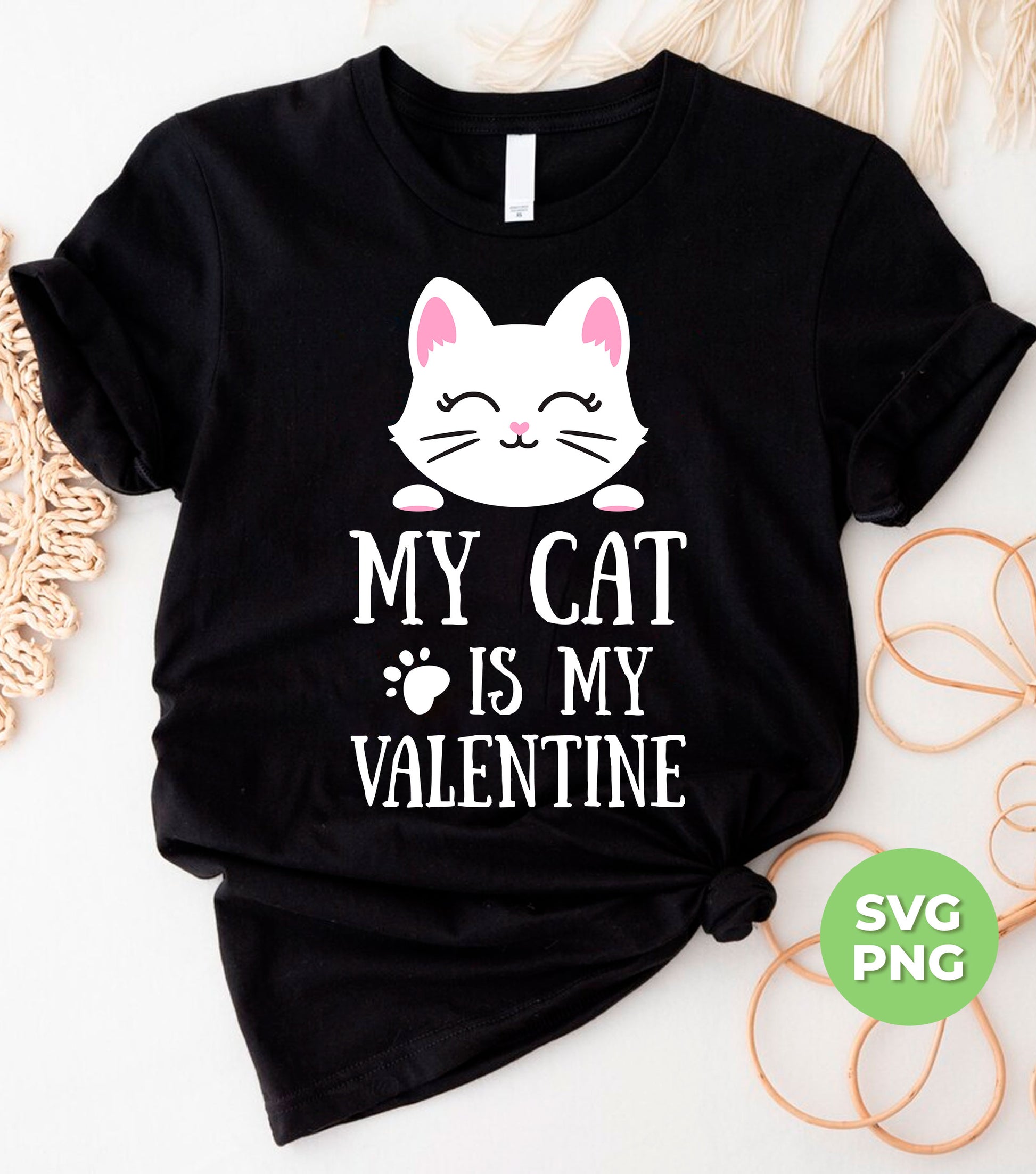 Celebrate the season of love with "My Cat Is My Valentine" digital files. Features a cute white cat and a heartwarming message. Perfect for cat lovers and Valentine's Day enthusiasts. Instantly download and use for sublimation printing or digital projects. Show your love for your feline friend with this adorable design.