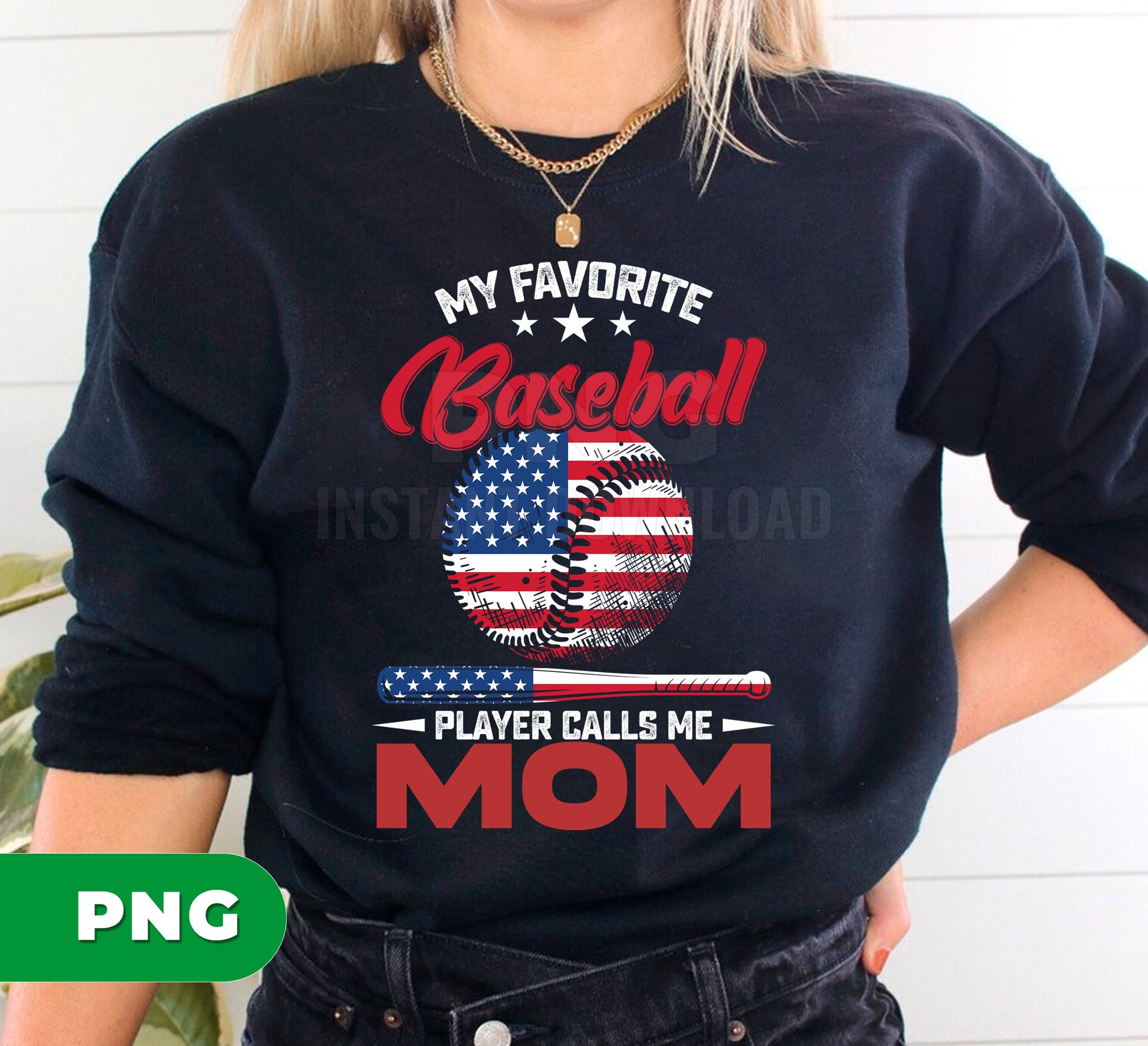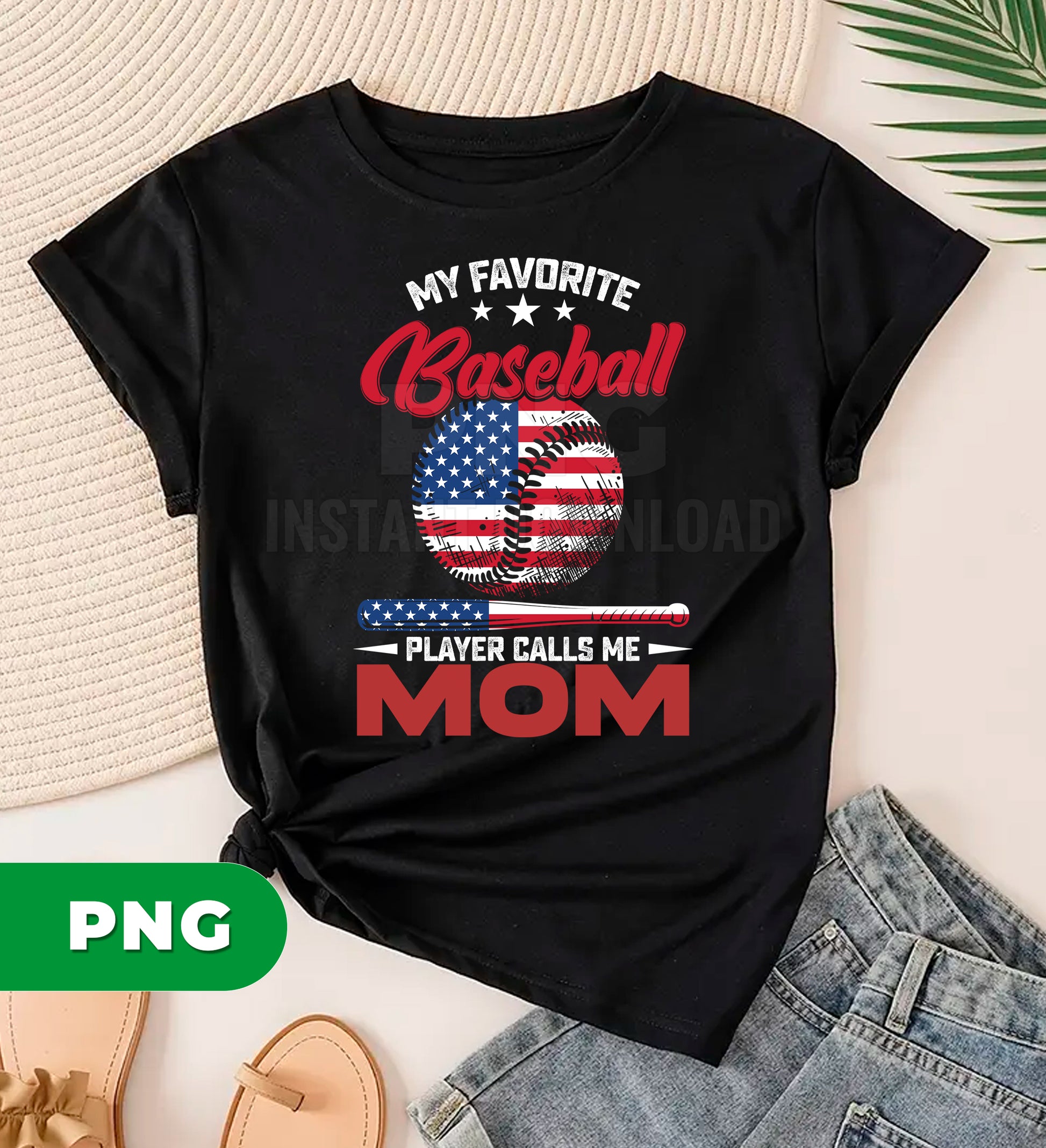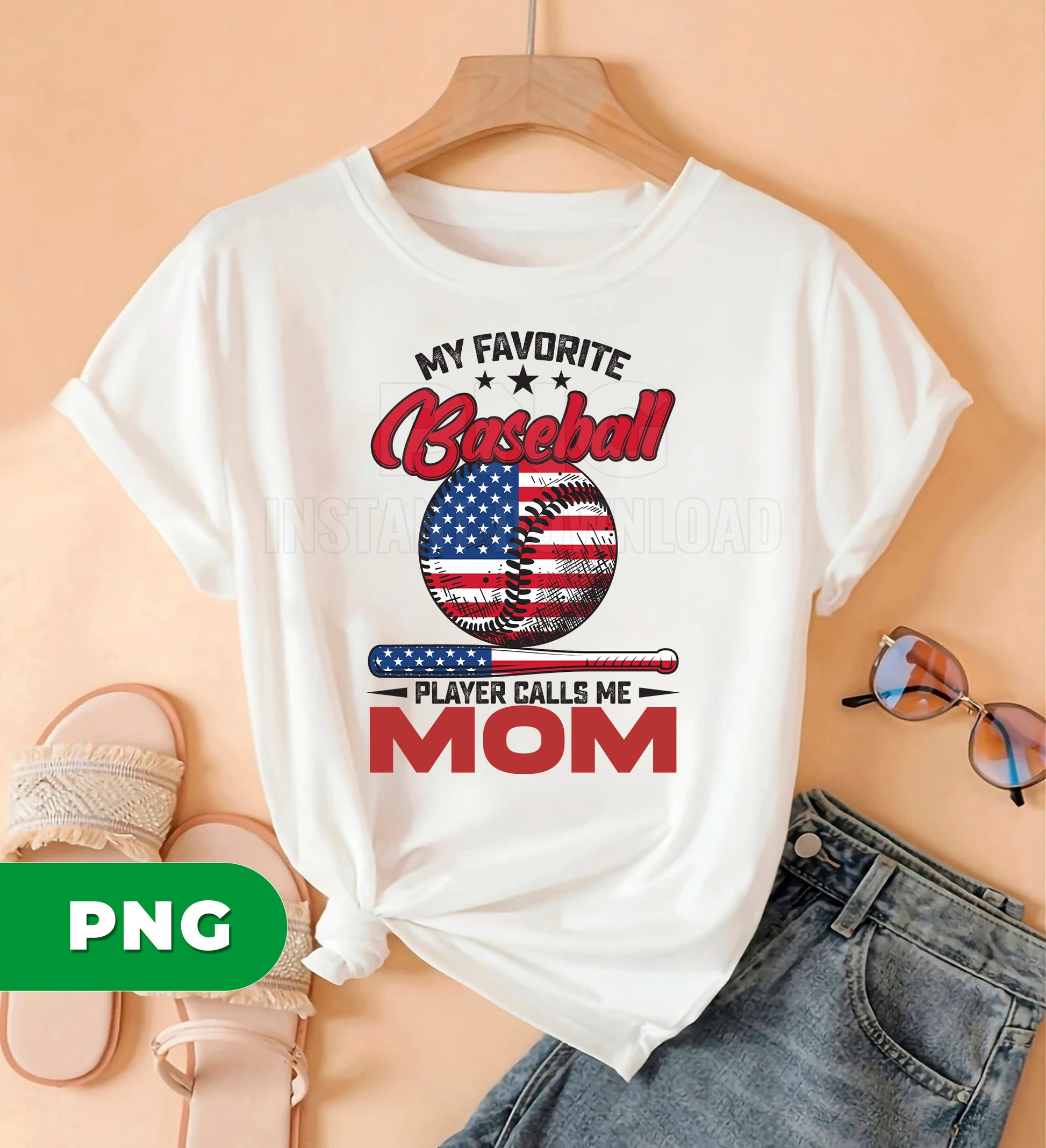 My Favorite Baseball Player Calls Me Mom PNG, Patriotic USA Mom Gift, Baseball Mom Design