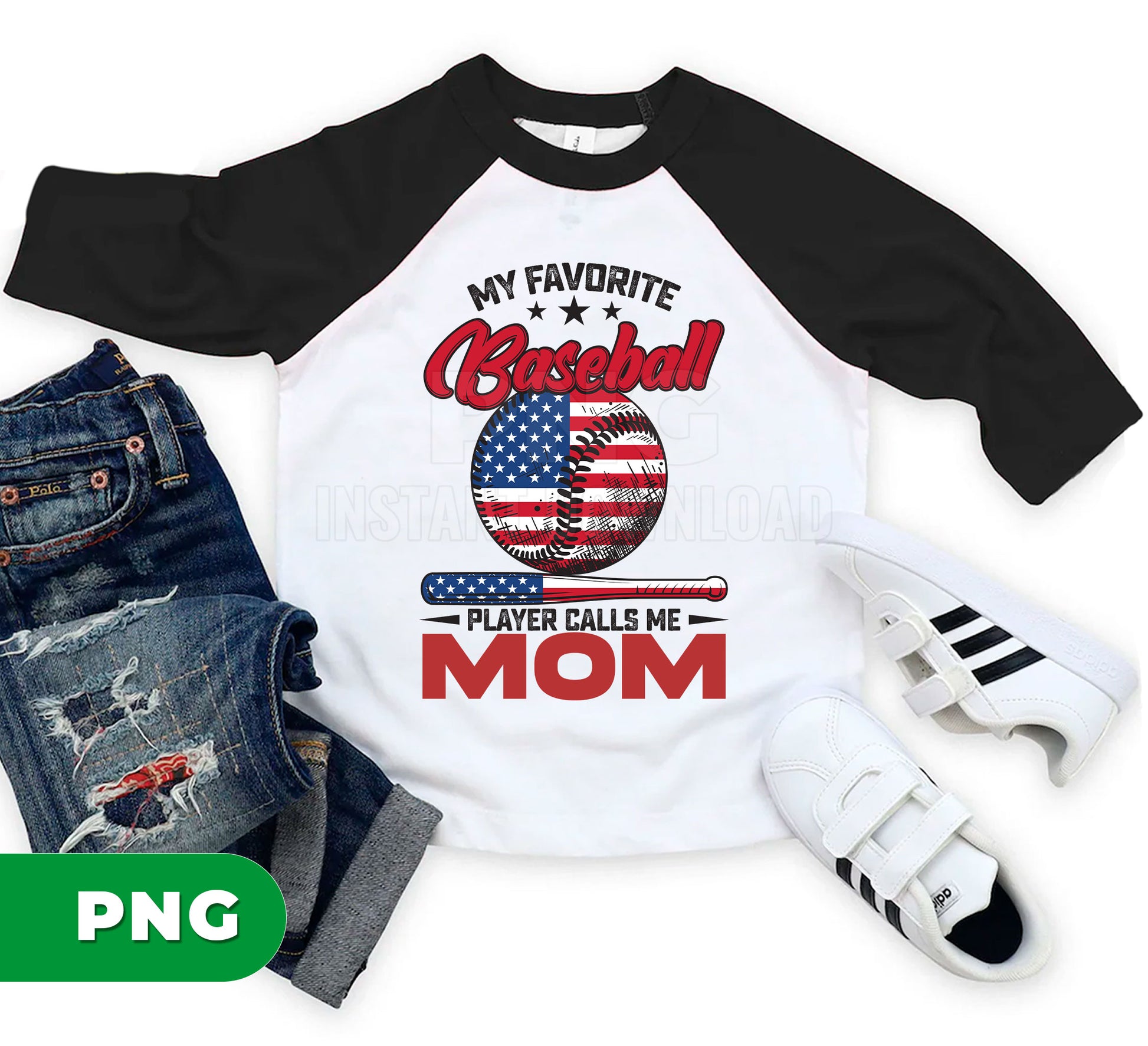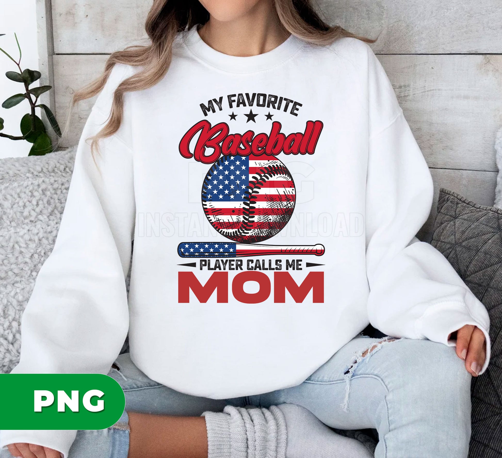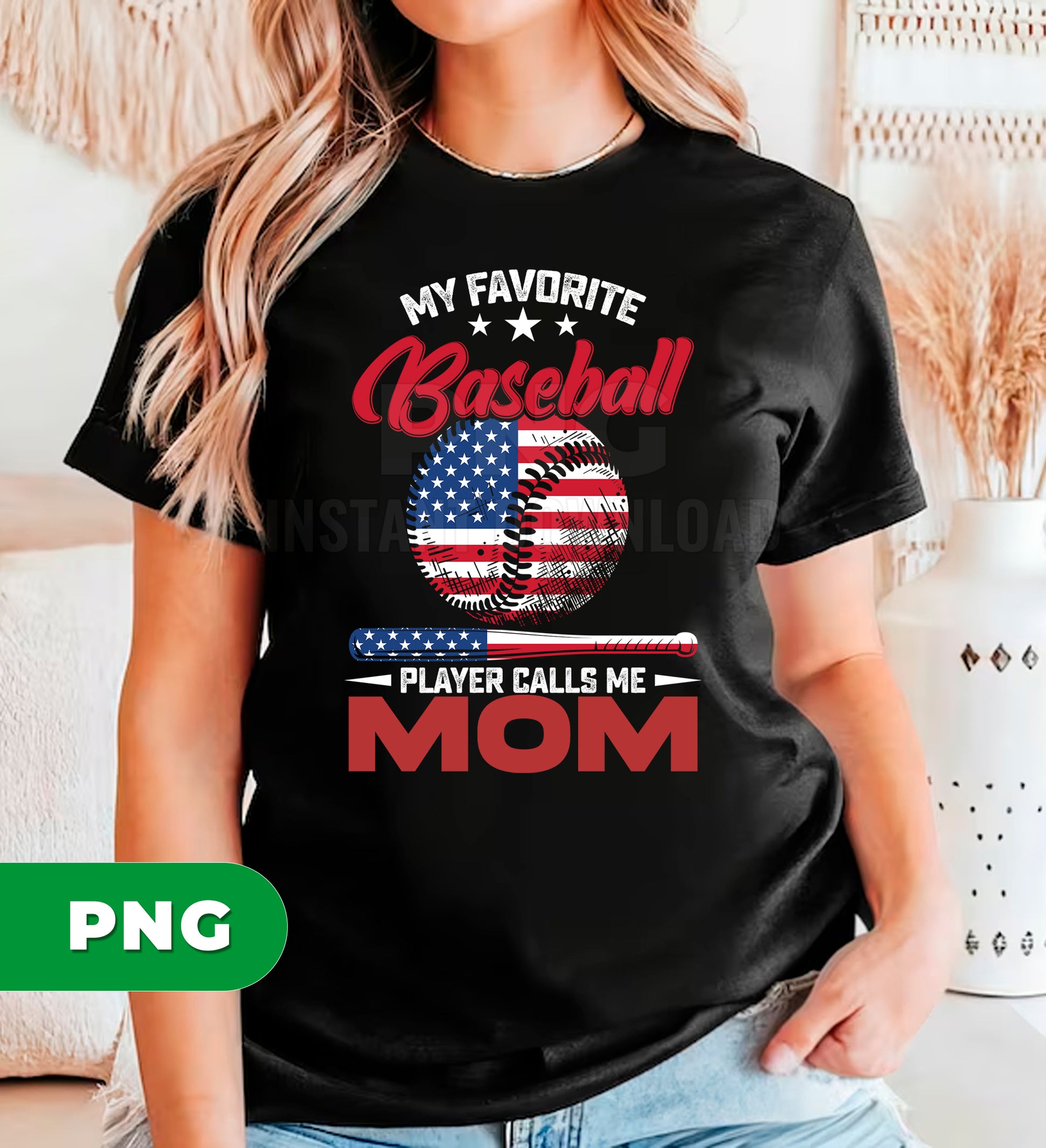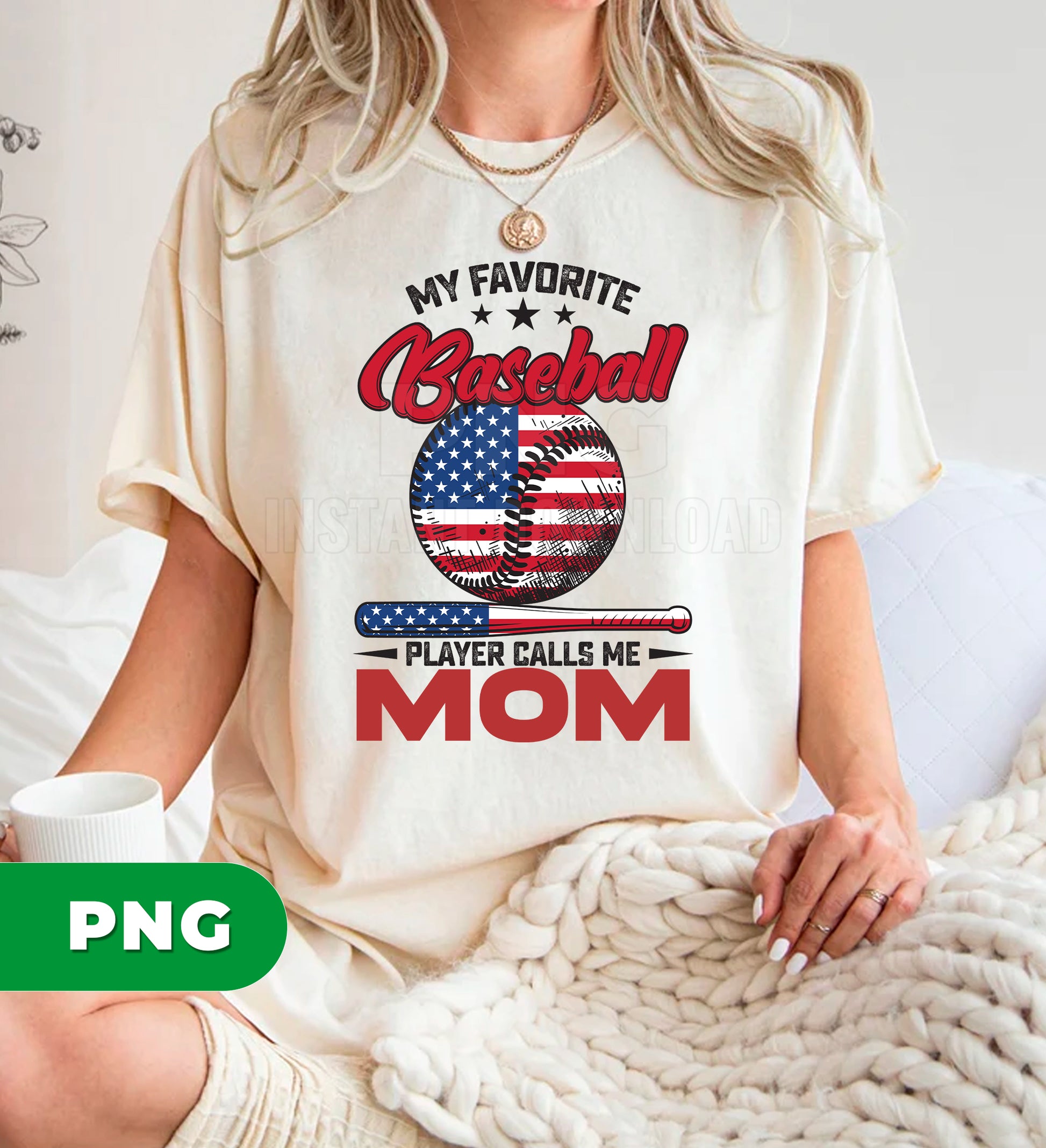My Favorite Baseball Player Calls Me Mom PNG, Patriotic USA Mom Gift, Baseball Mom Design