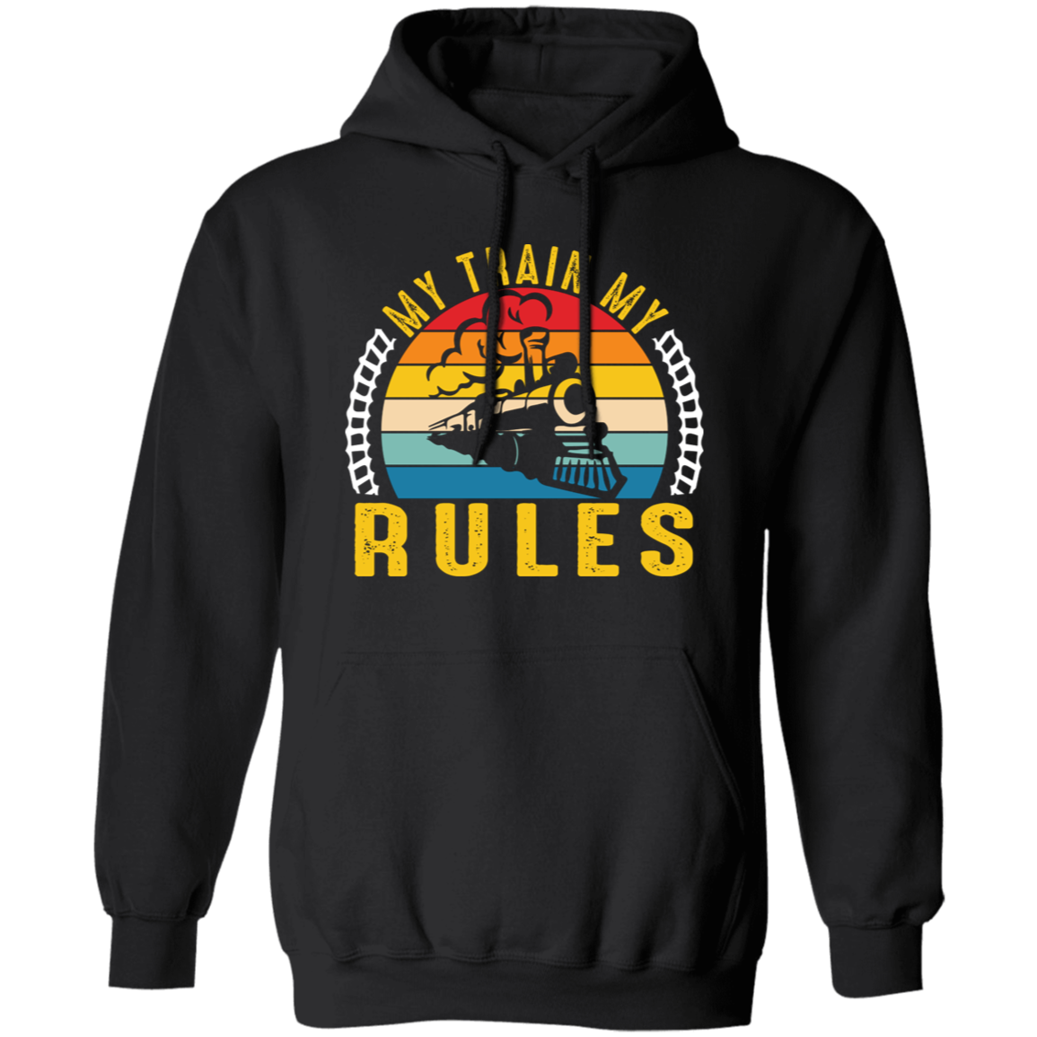 My Train, My Rules, Retro Train, Retro Rules, Train Silhouette Pullover Hoodie
