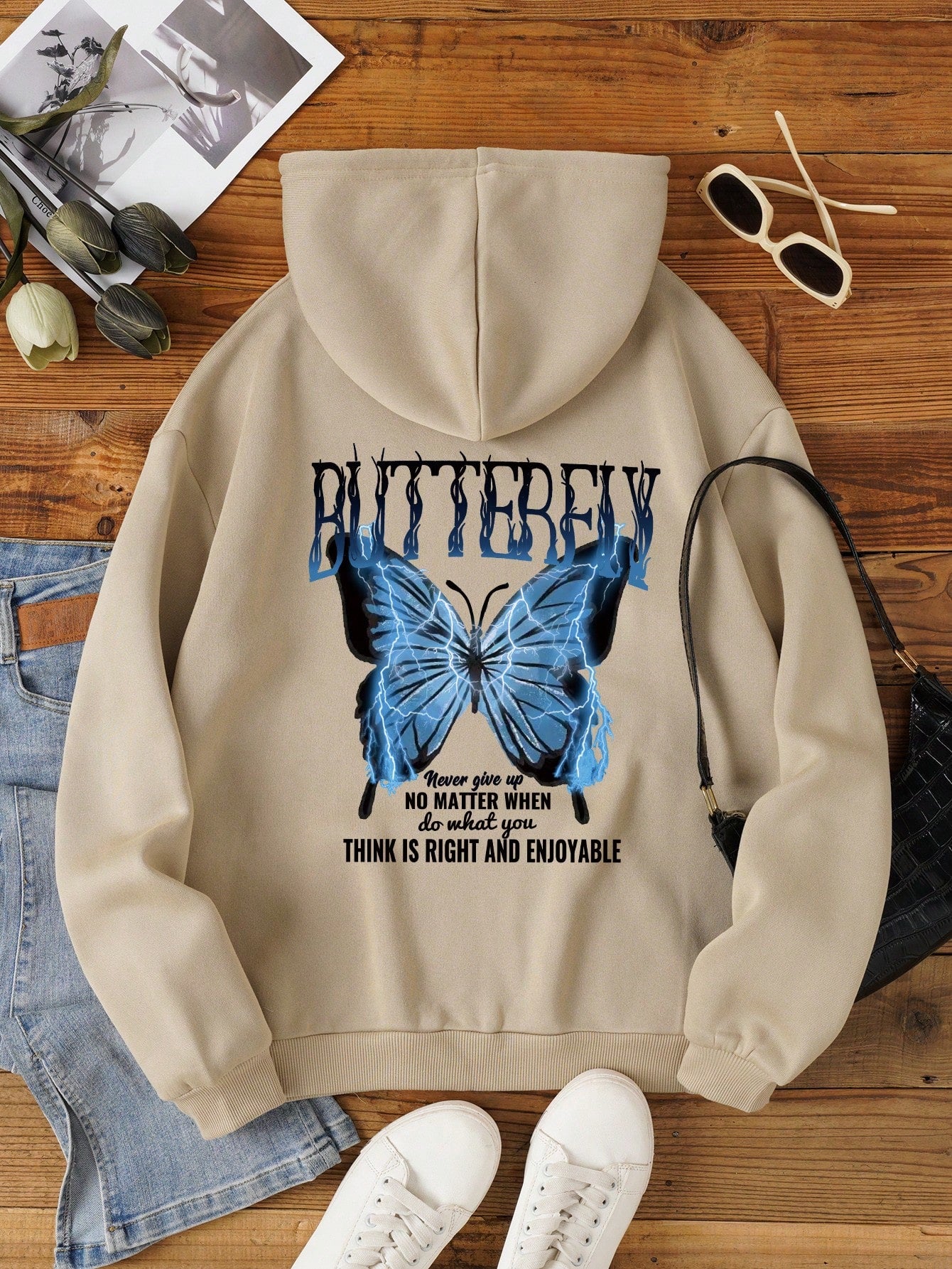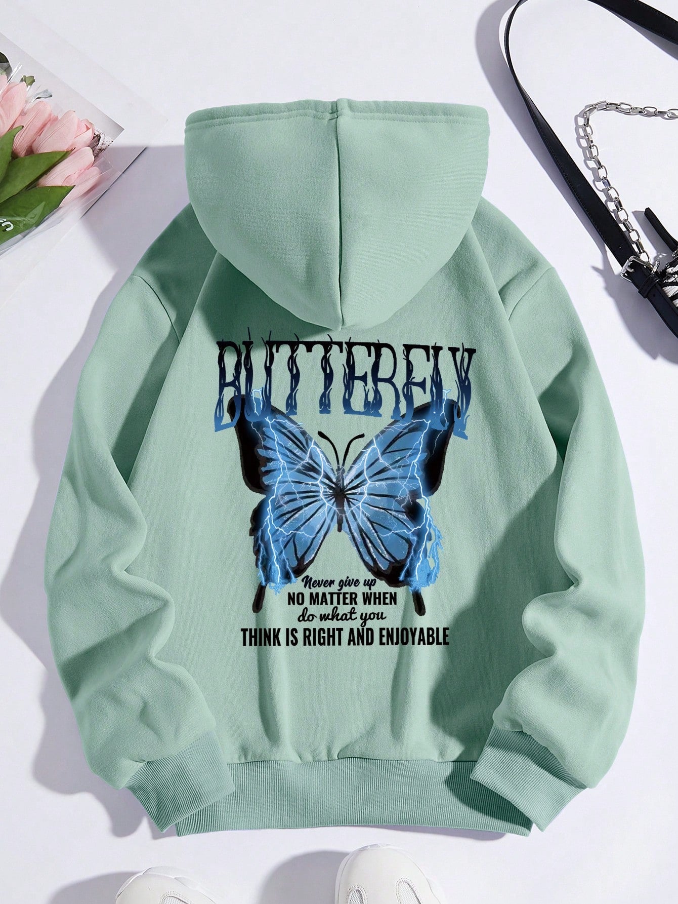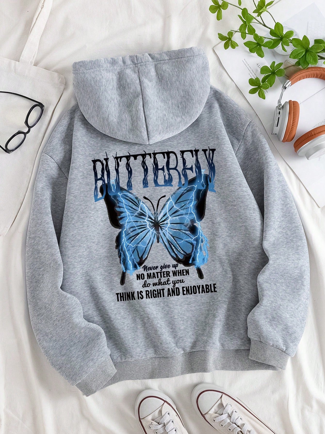 Never Give Up Butterfly Thermal Hoodie: Cozy Comfort Meets Inspiring Style