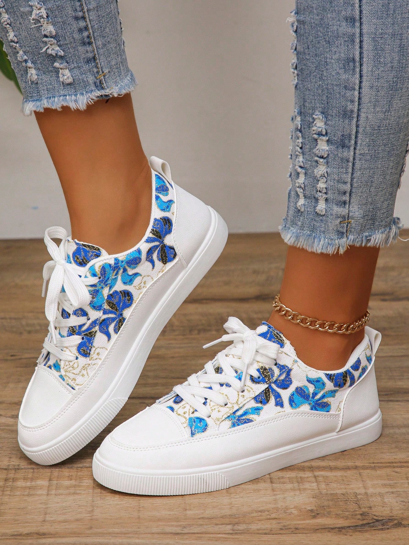 Sneakers! With its unique design, these sneakers are perfect for any casual or sporty look. The lace-up feature provides a comfortable and secure fit, while the blue bowknot adds a touch of style. Get ready to turn heads with these must-have shoes."
