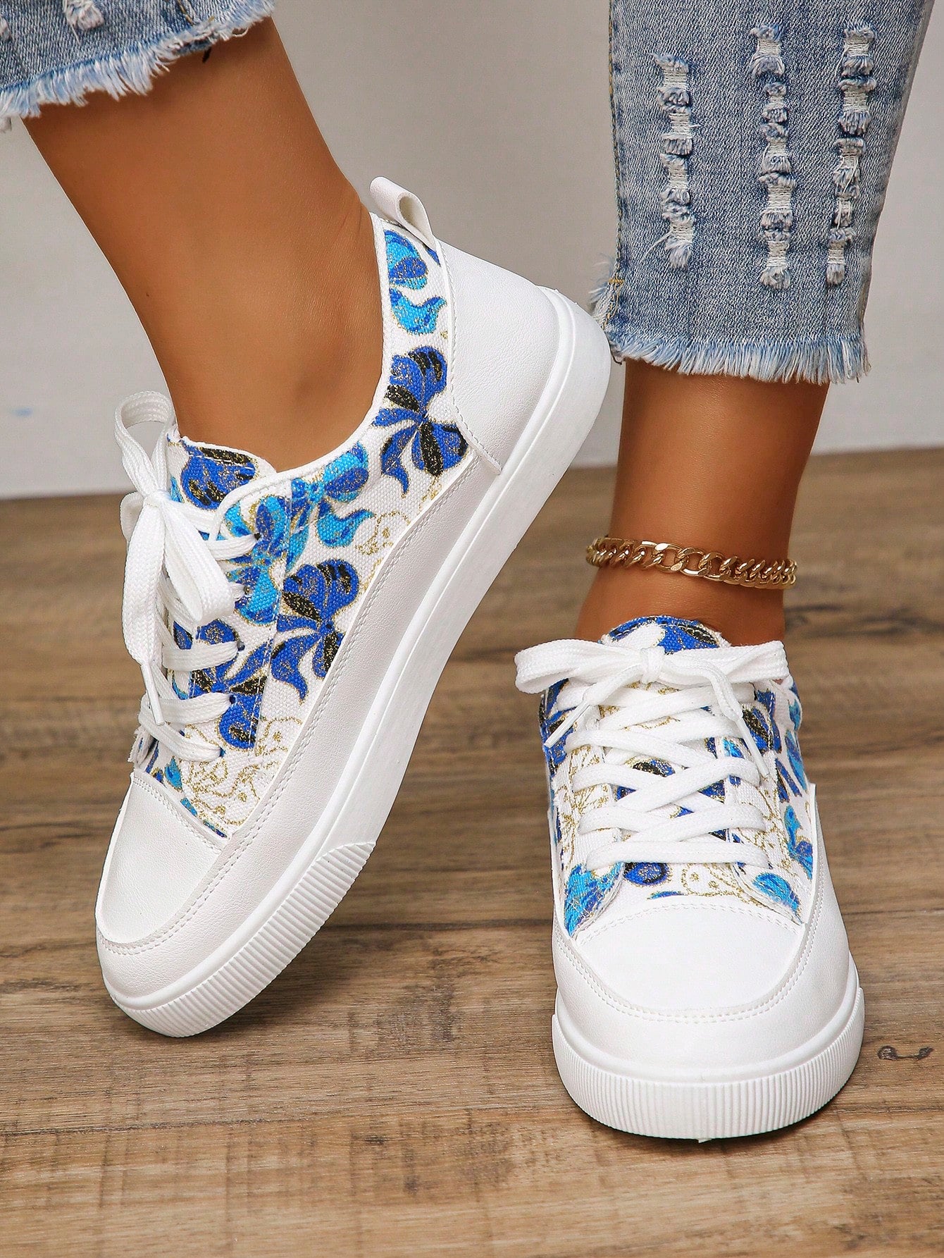 New Arrival: Fashionable Lace-Up Blue Bowknot Sneakers with Unique Design