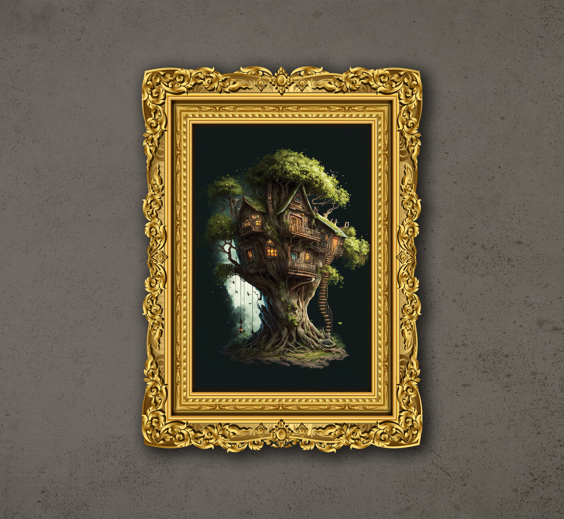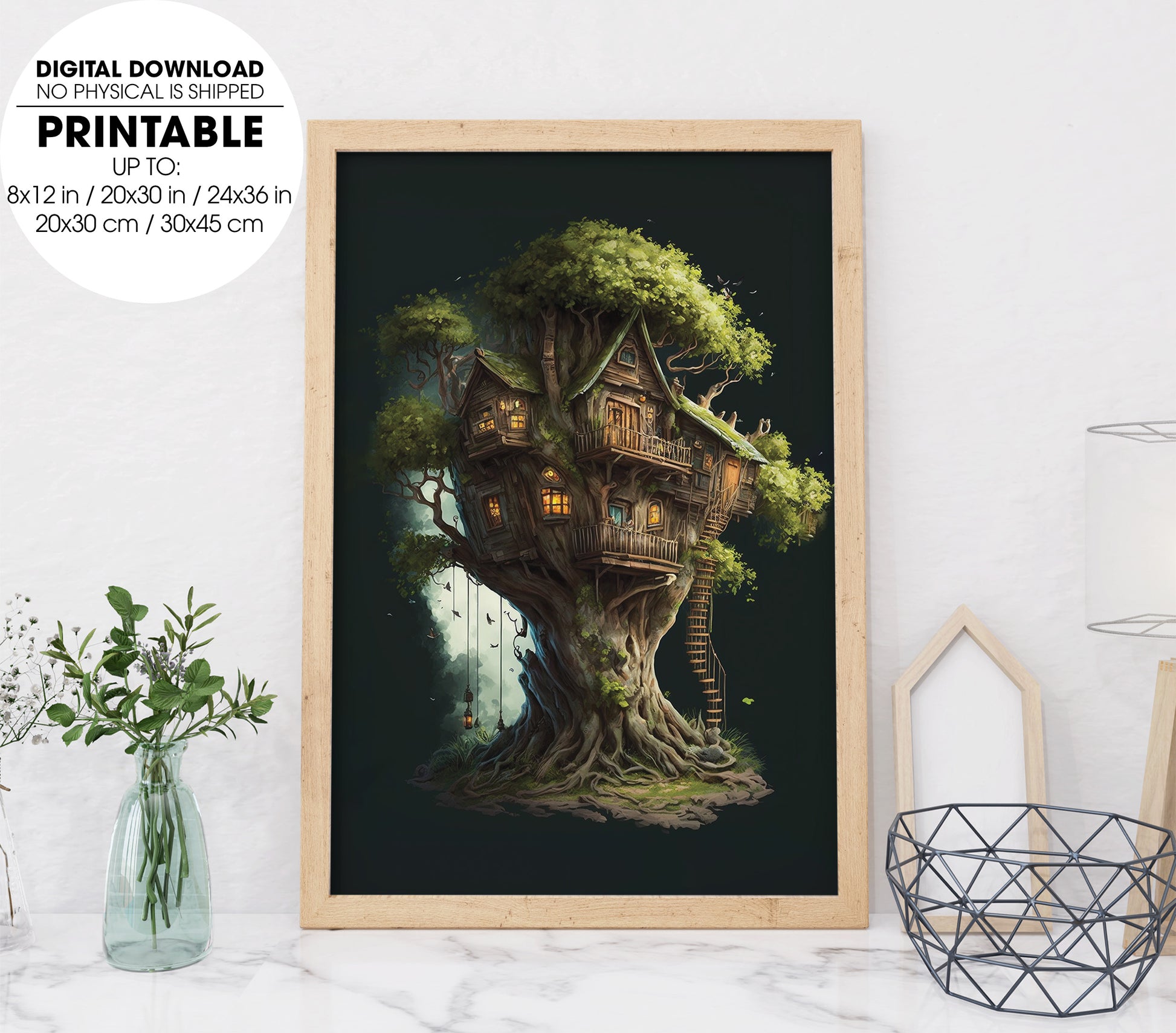 Next Door Tree House, Fantasy Fairy House, Fairy Tree Houses, Poster Design, Printable Art