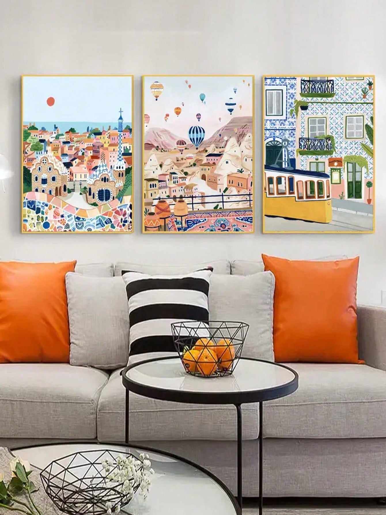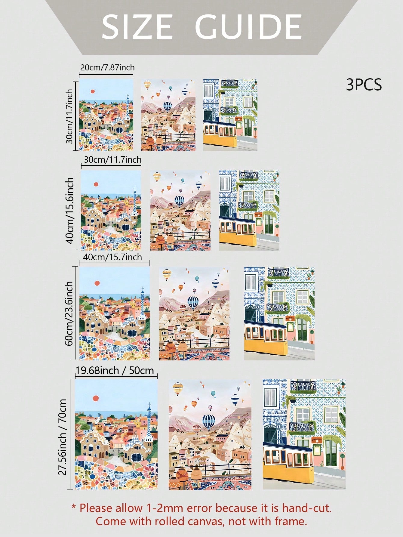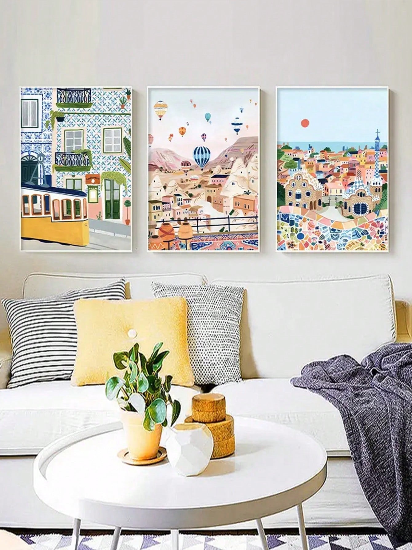 Nordic Travel Themed Canvas Triptych Set for Minimalistic Wall Art Decor without Frame