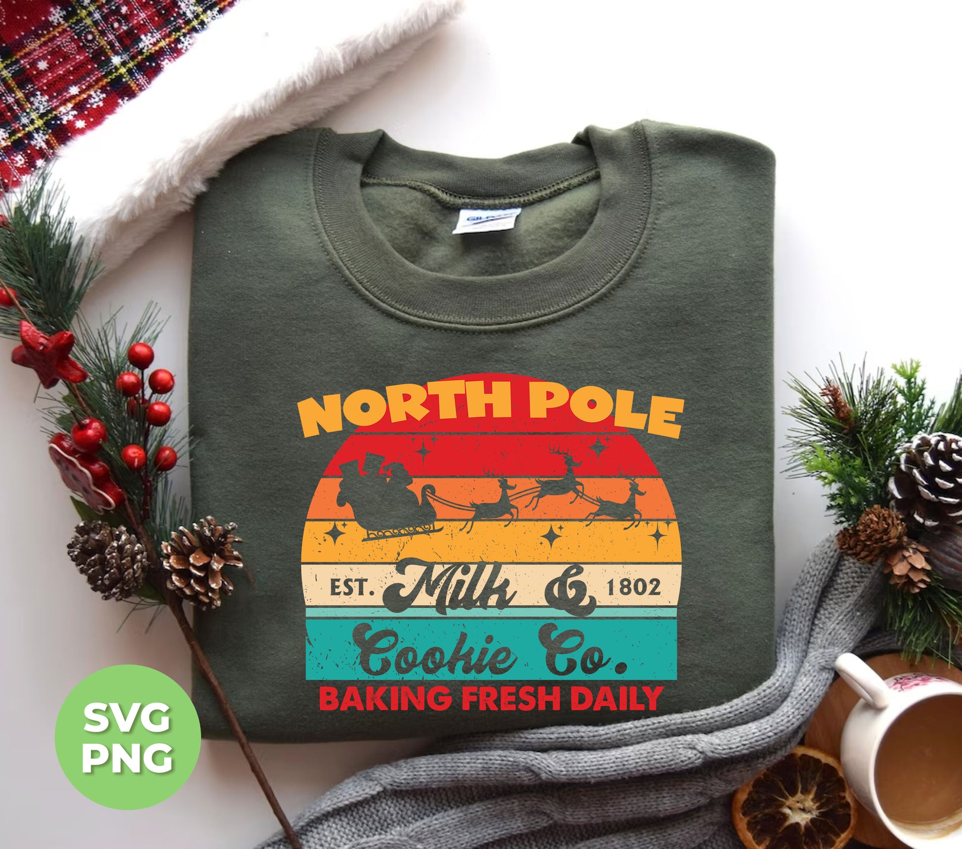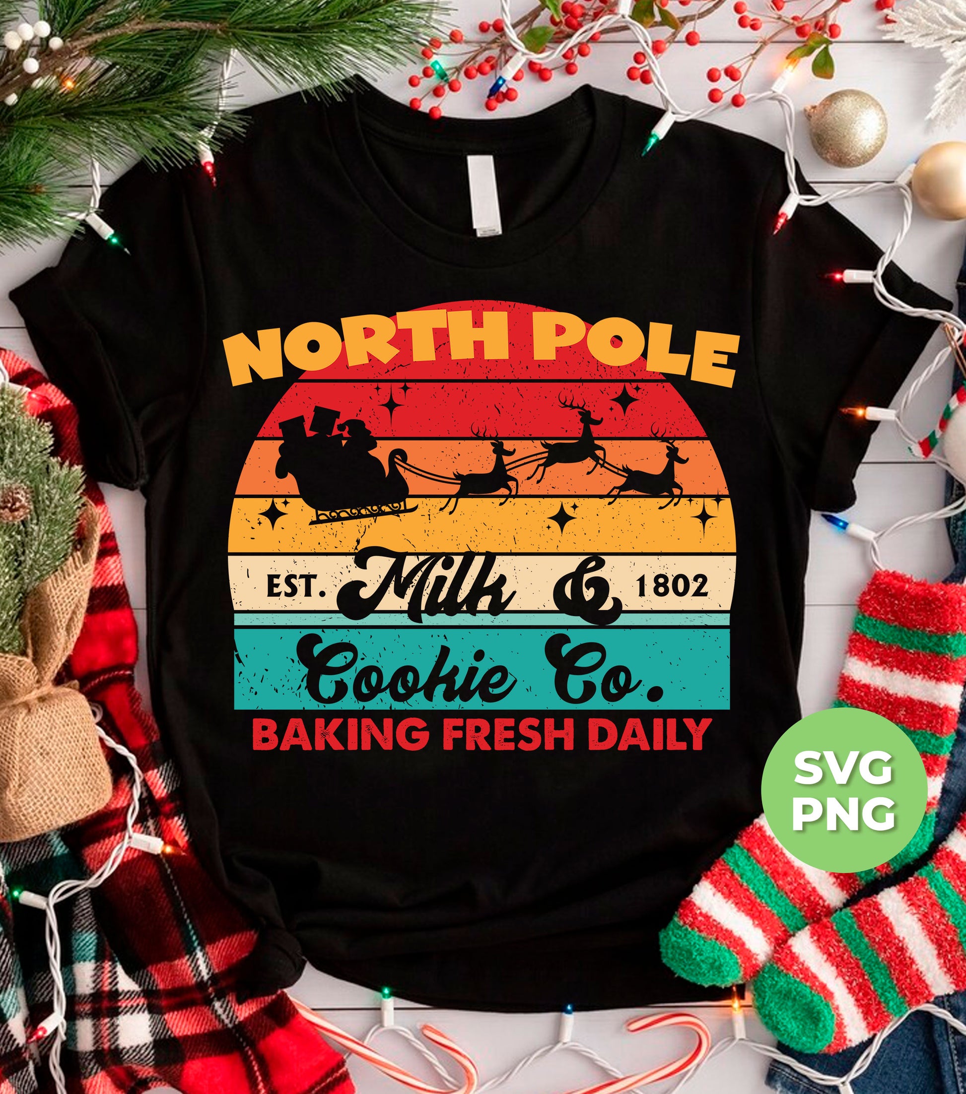 North Pole, Milk And Cookie, Baking Fresh Daily, Retro Christmas, Digital Files, Png Sublimation
