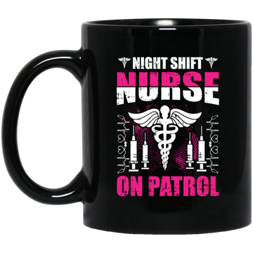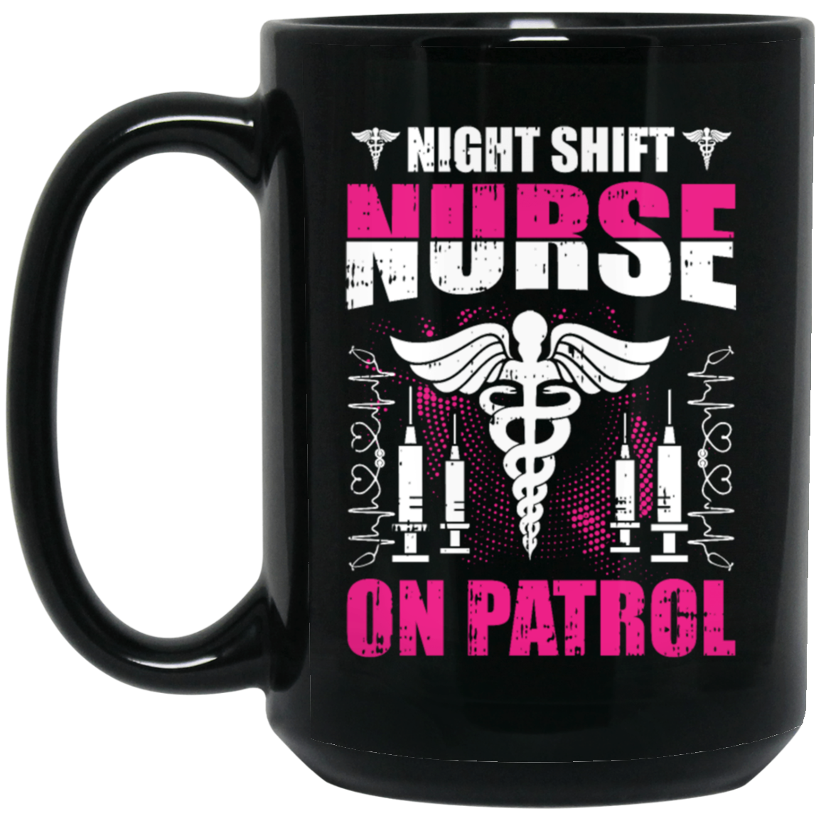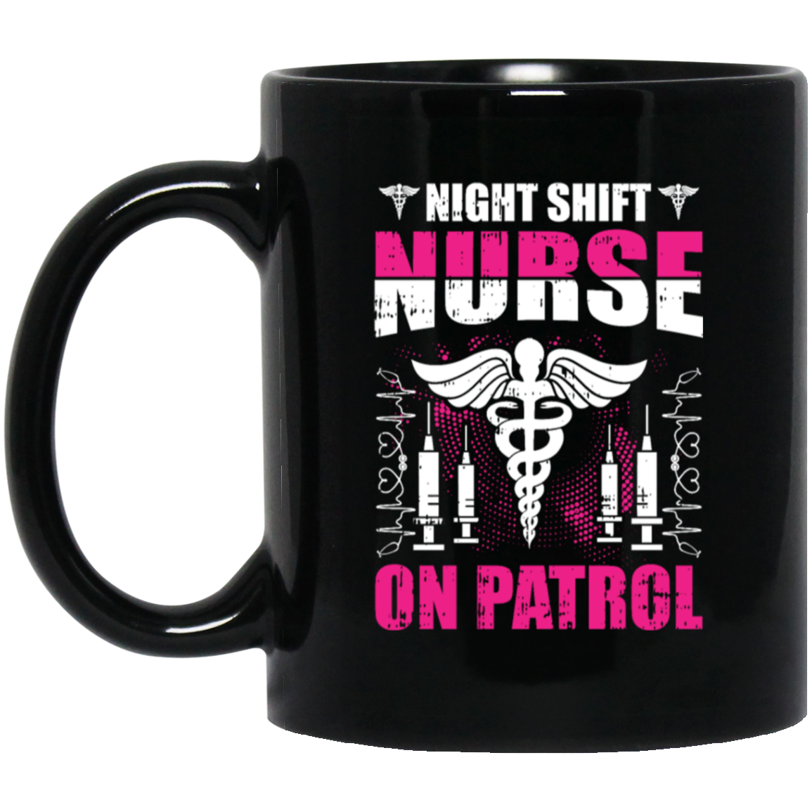 Nurse Lover, Night Shift Nurse On Patrol, Love My Nurse, Nurse Gift Black Mug