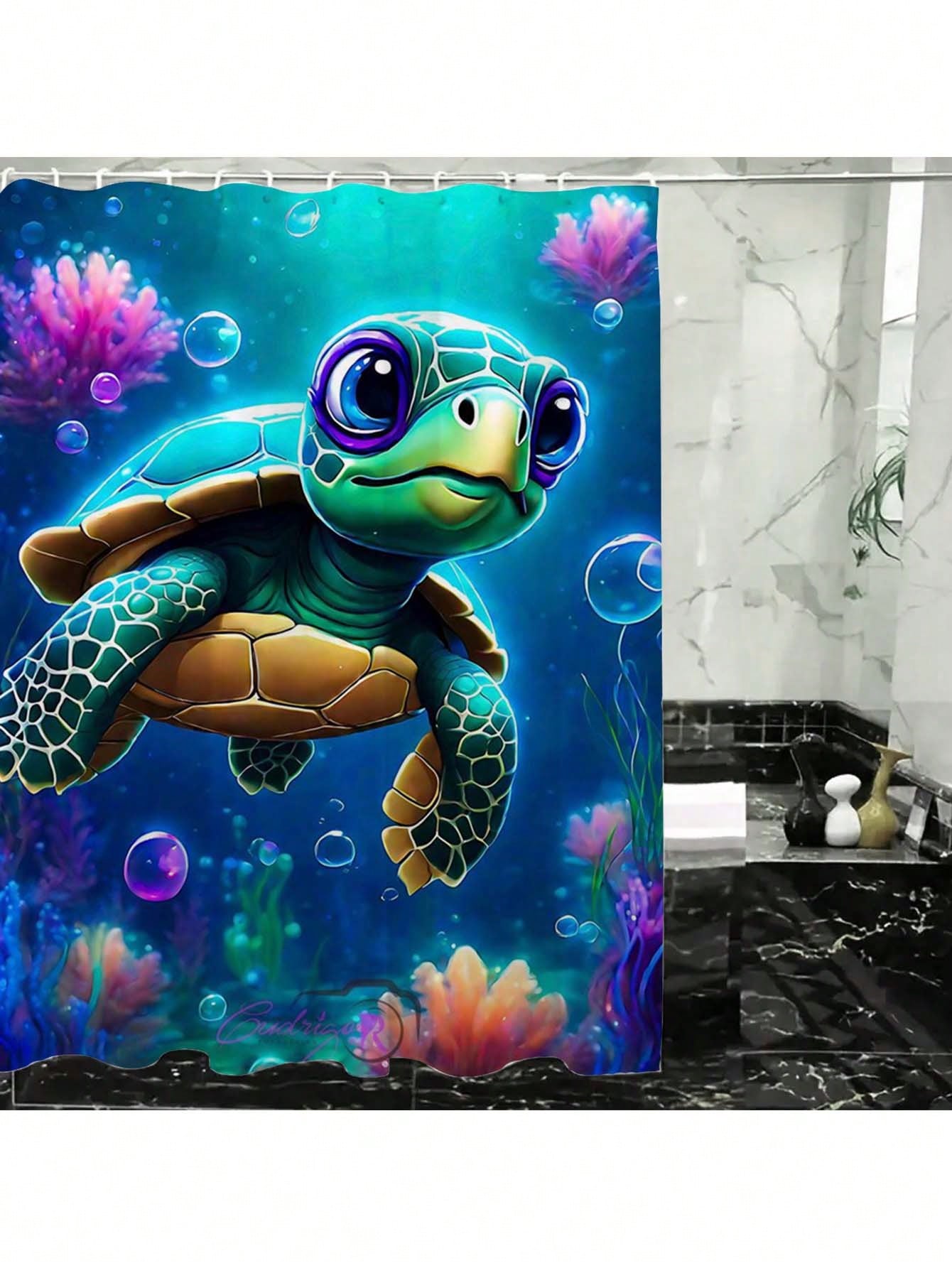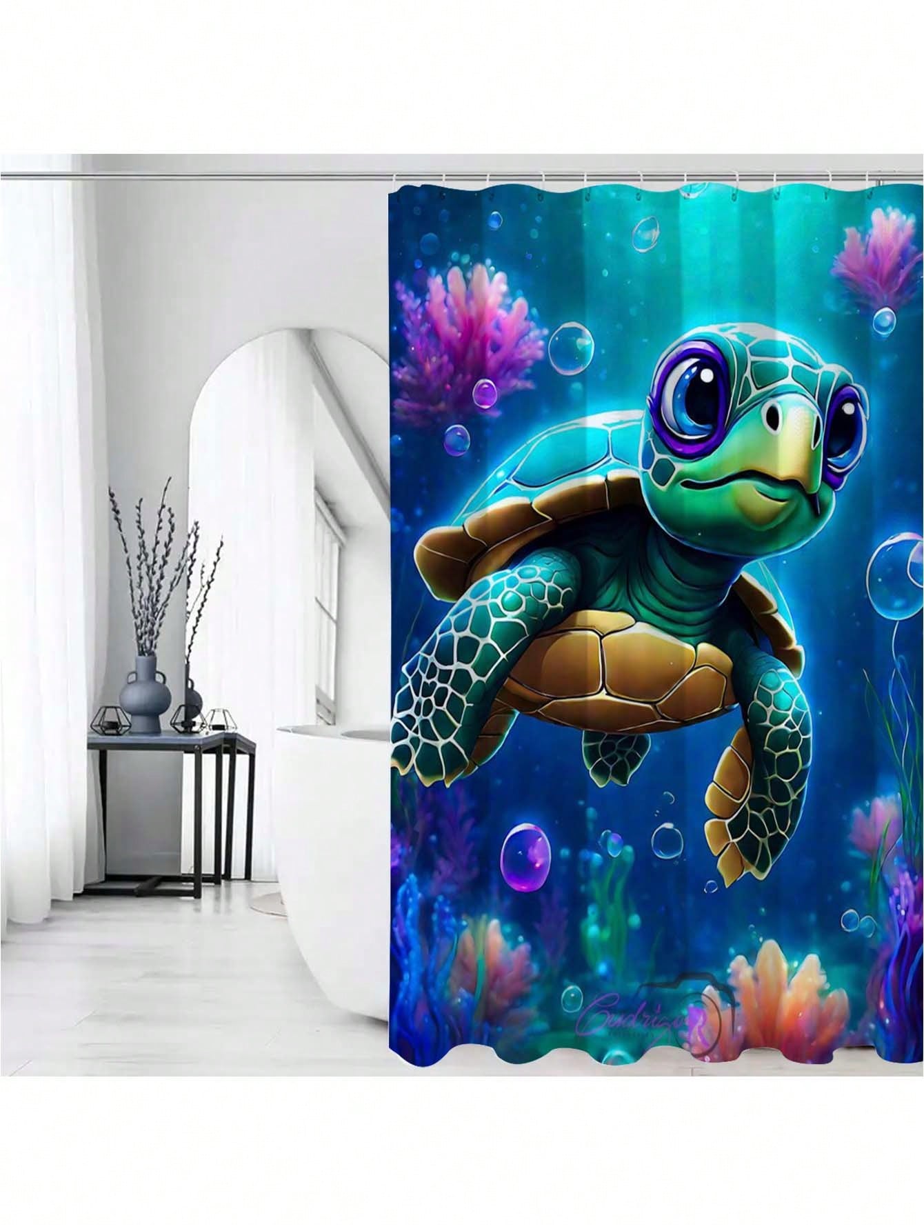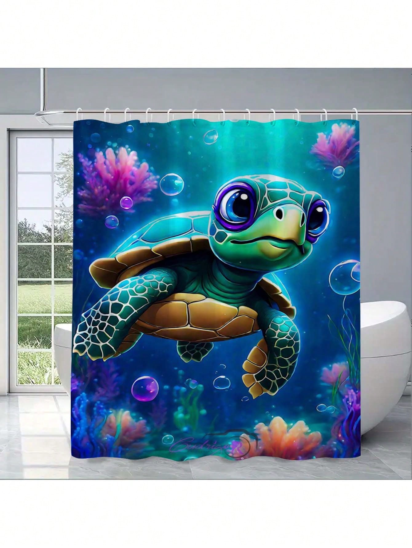Ocean-Inspired Elegance: Waterproof Satin Shower Curtain with Sea Turtle Design