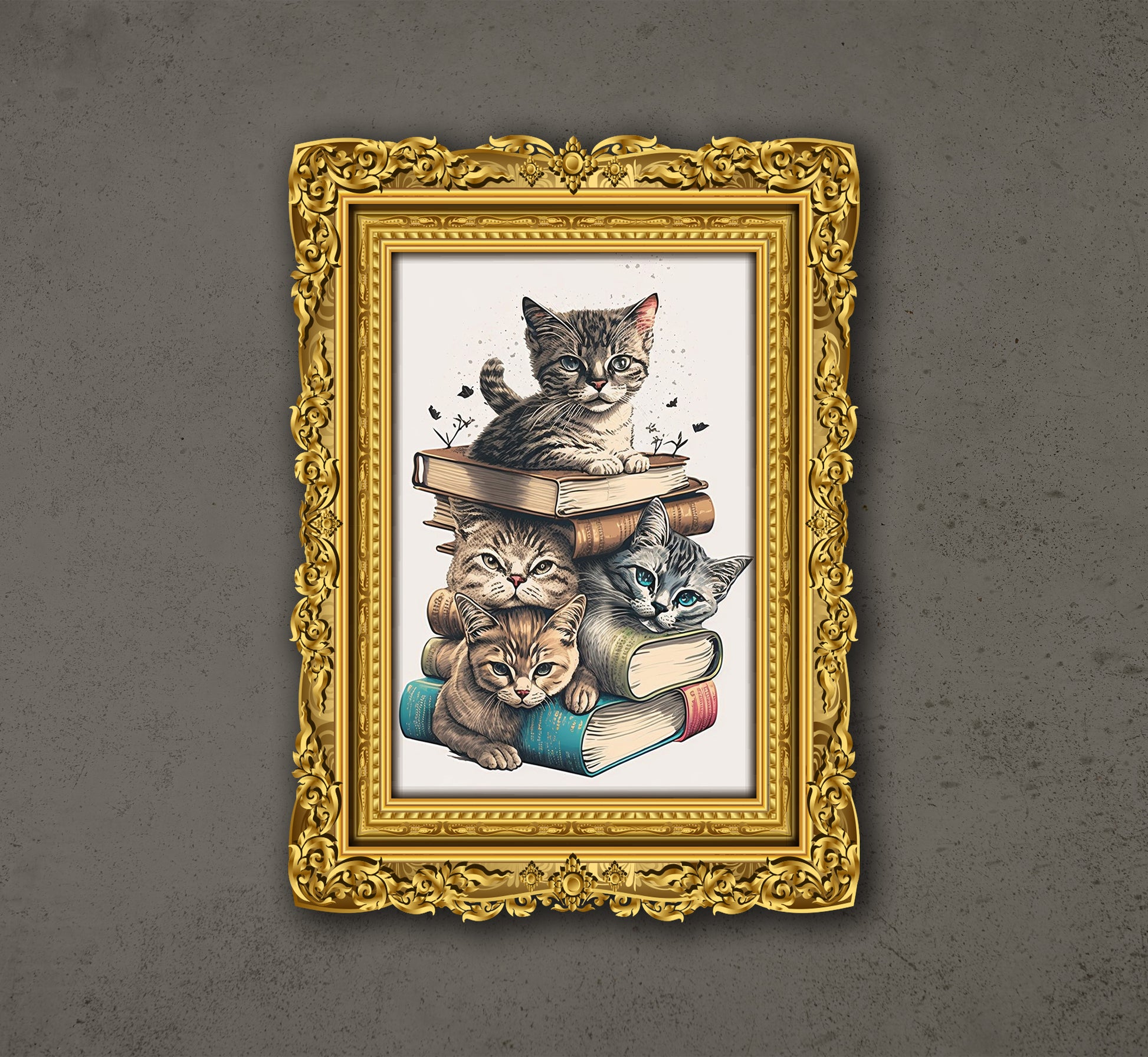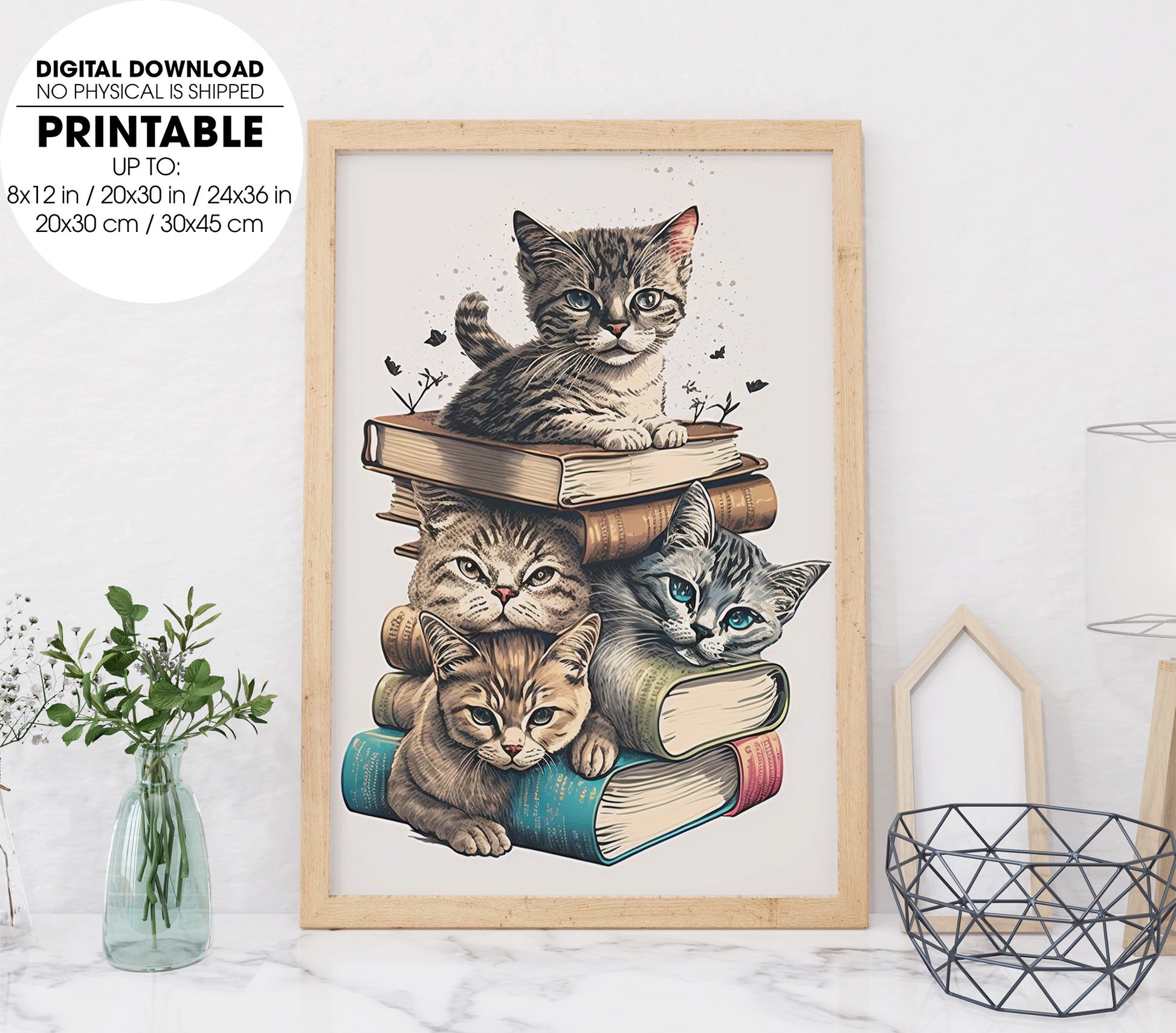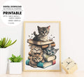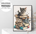 One Tall Stack Of Cats And Books, Cat Bookworm, Poster Design, Printable Art