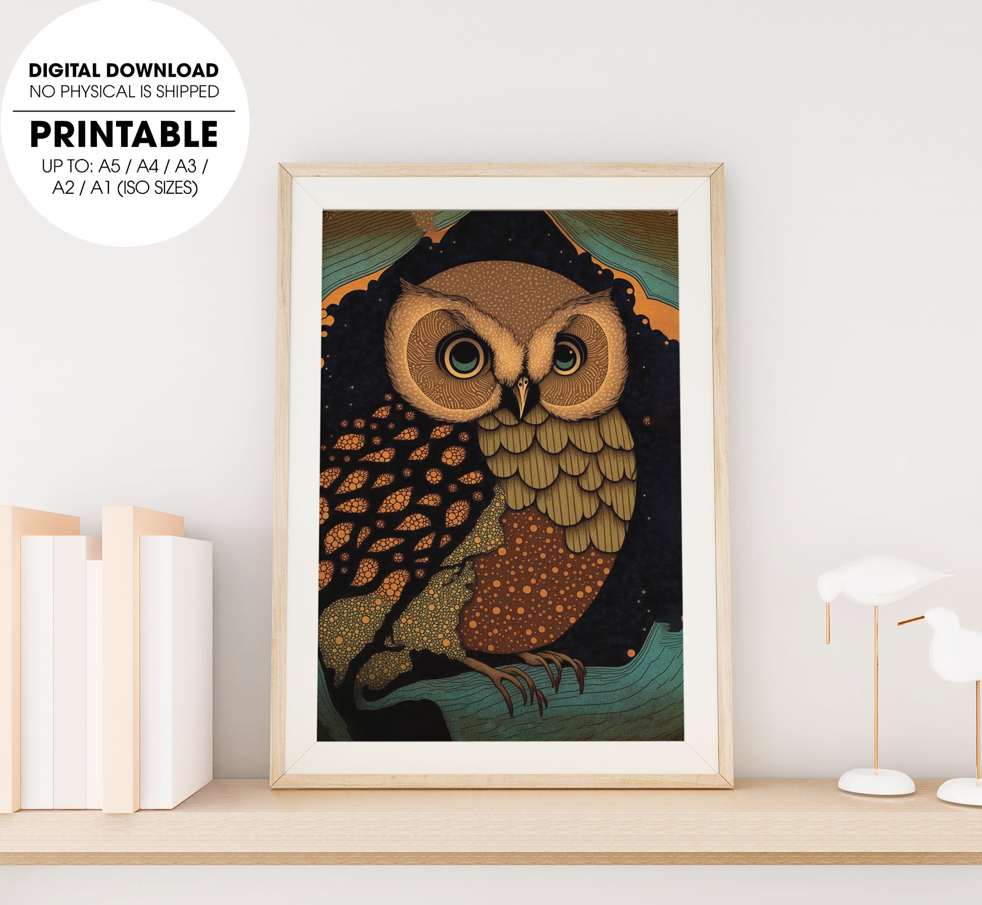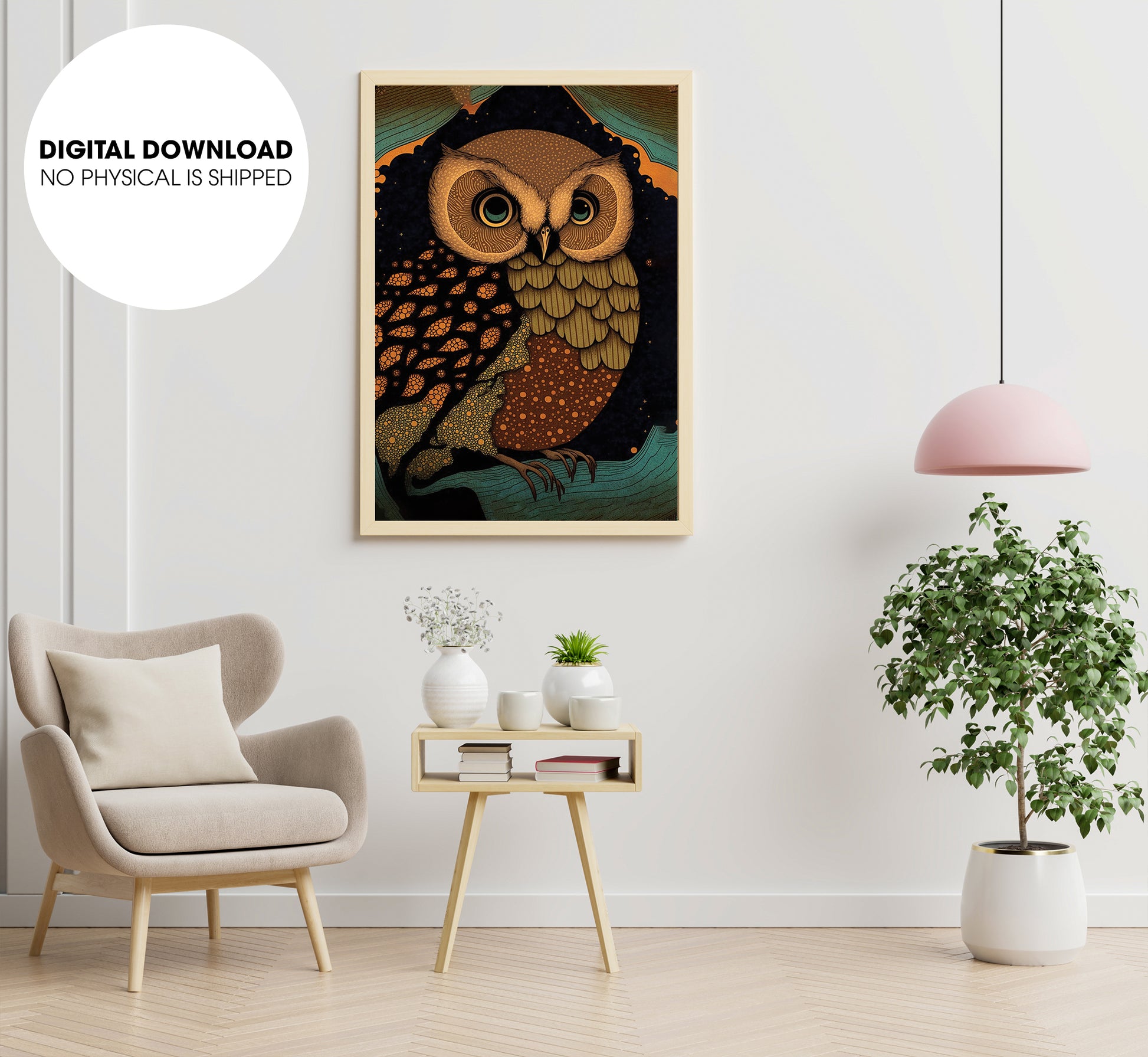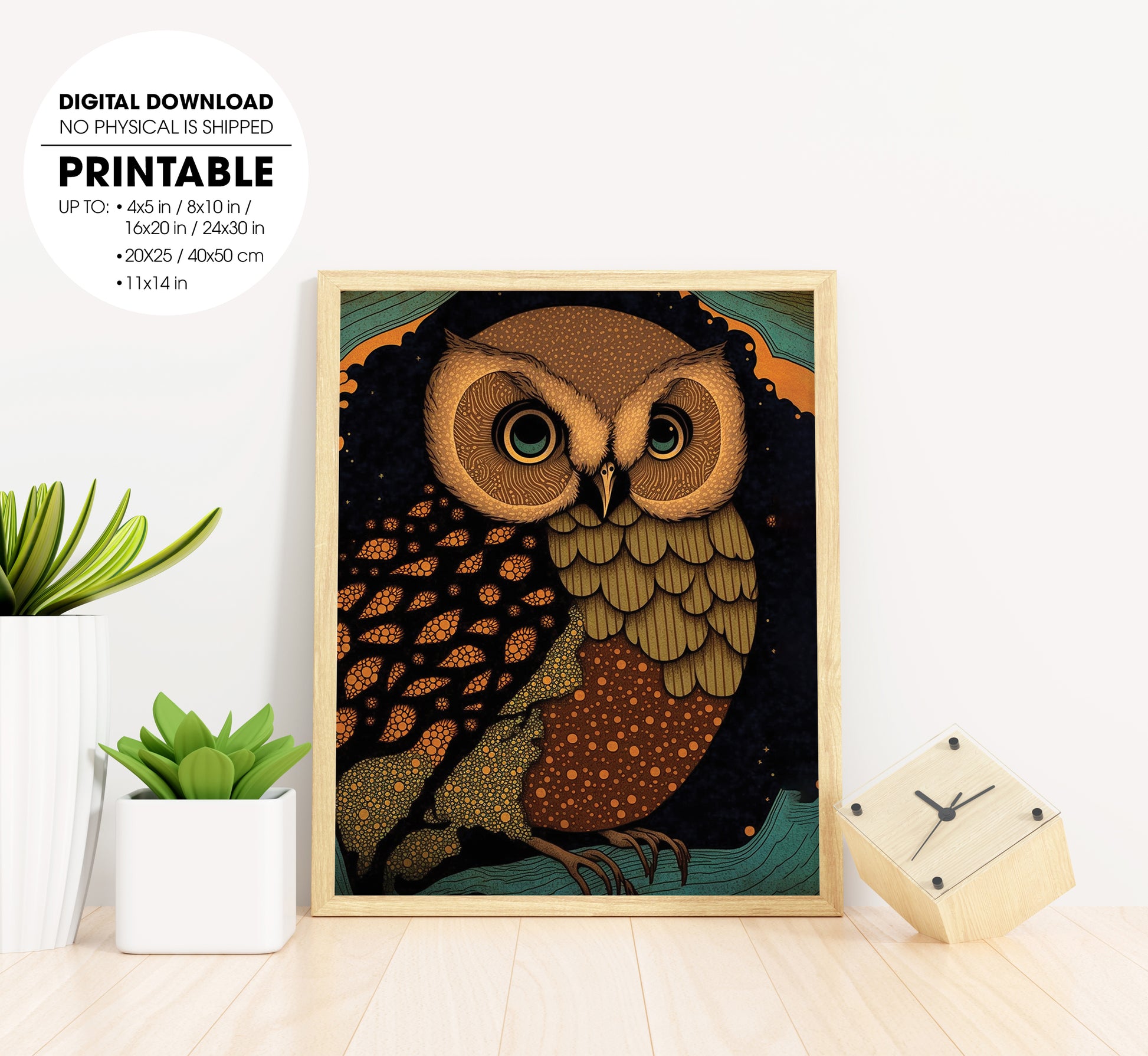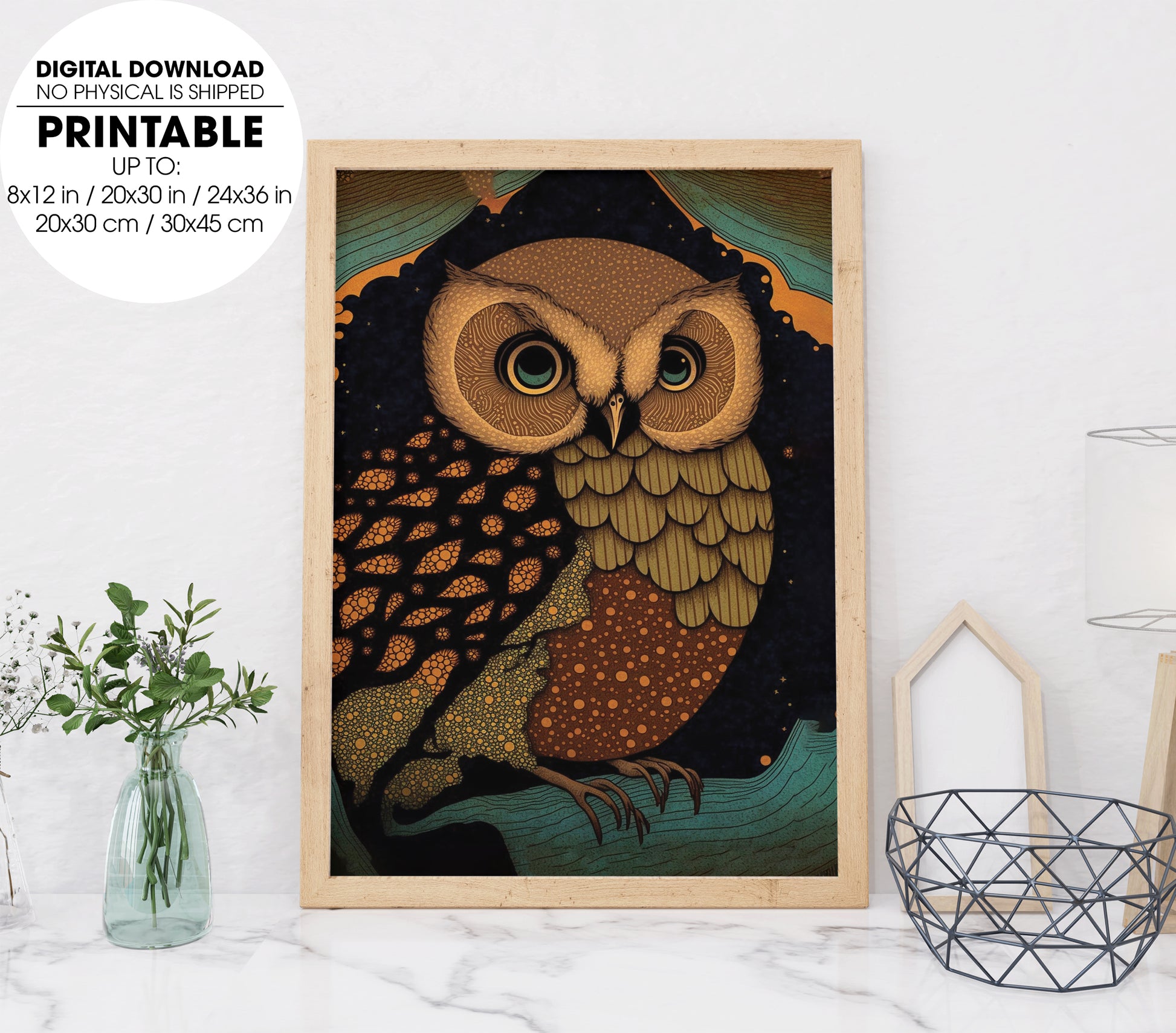 Owl Canvas, Adorable Magical Intricate Woodblock, Adorable Owl, Poster Design, Printable Art