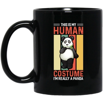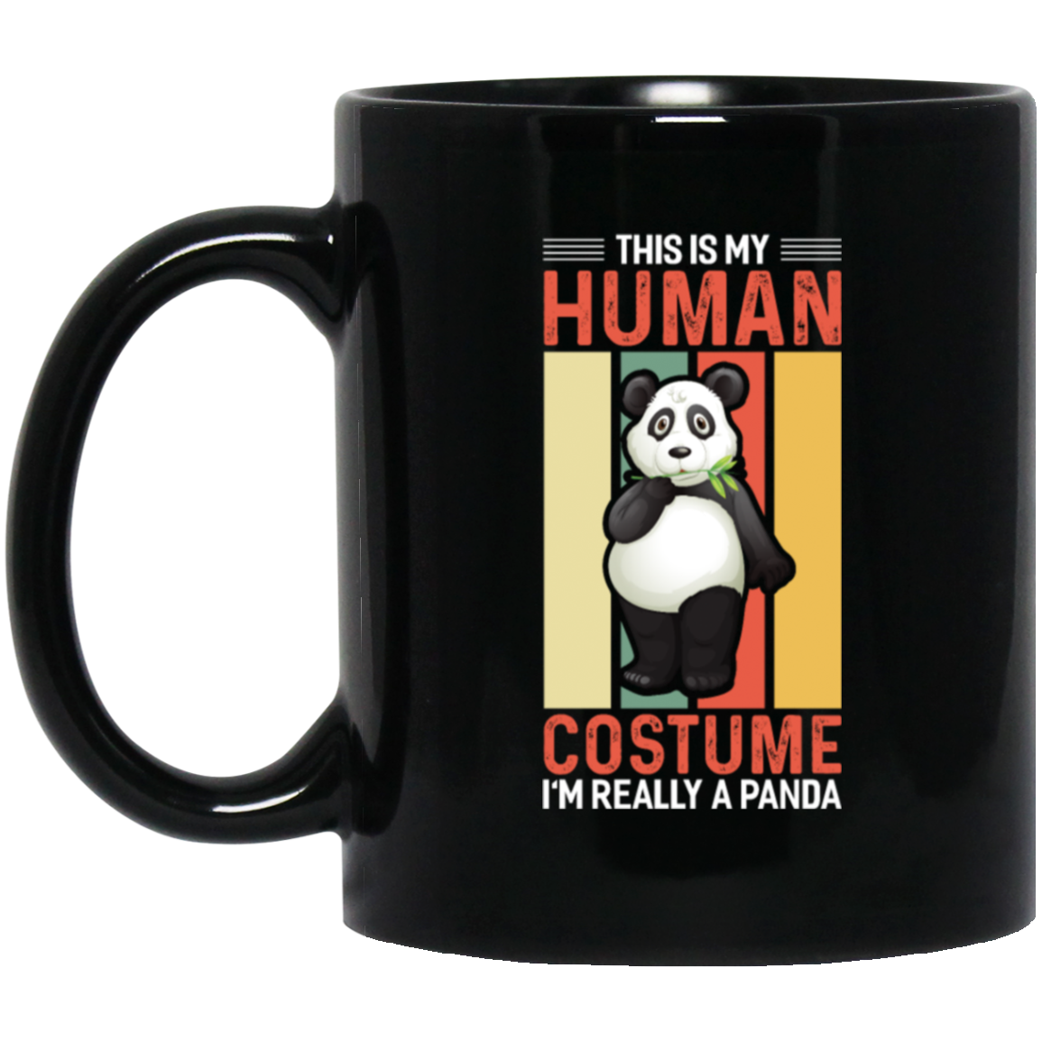 Panda Costume, I Am Really A Panda, This Is My Human, Retro Panda Black Mug