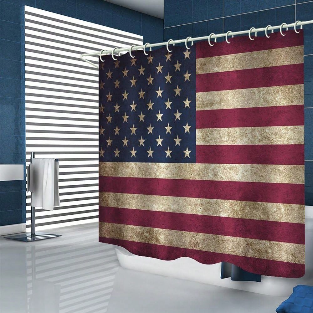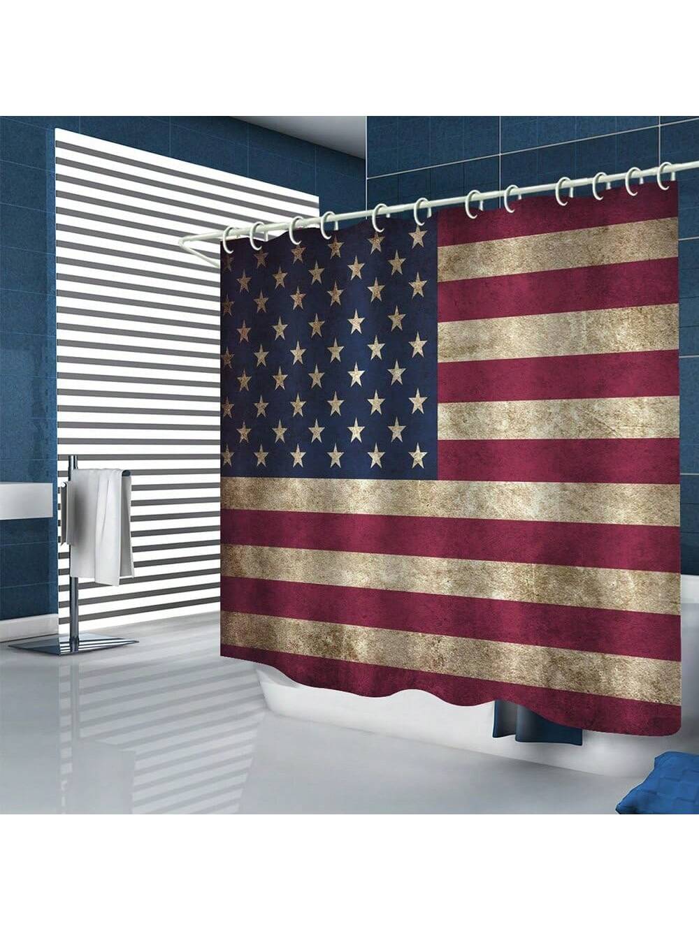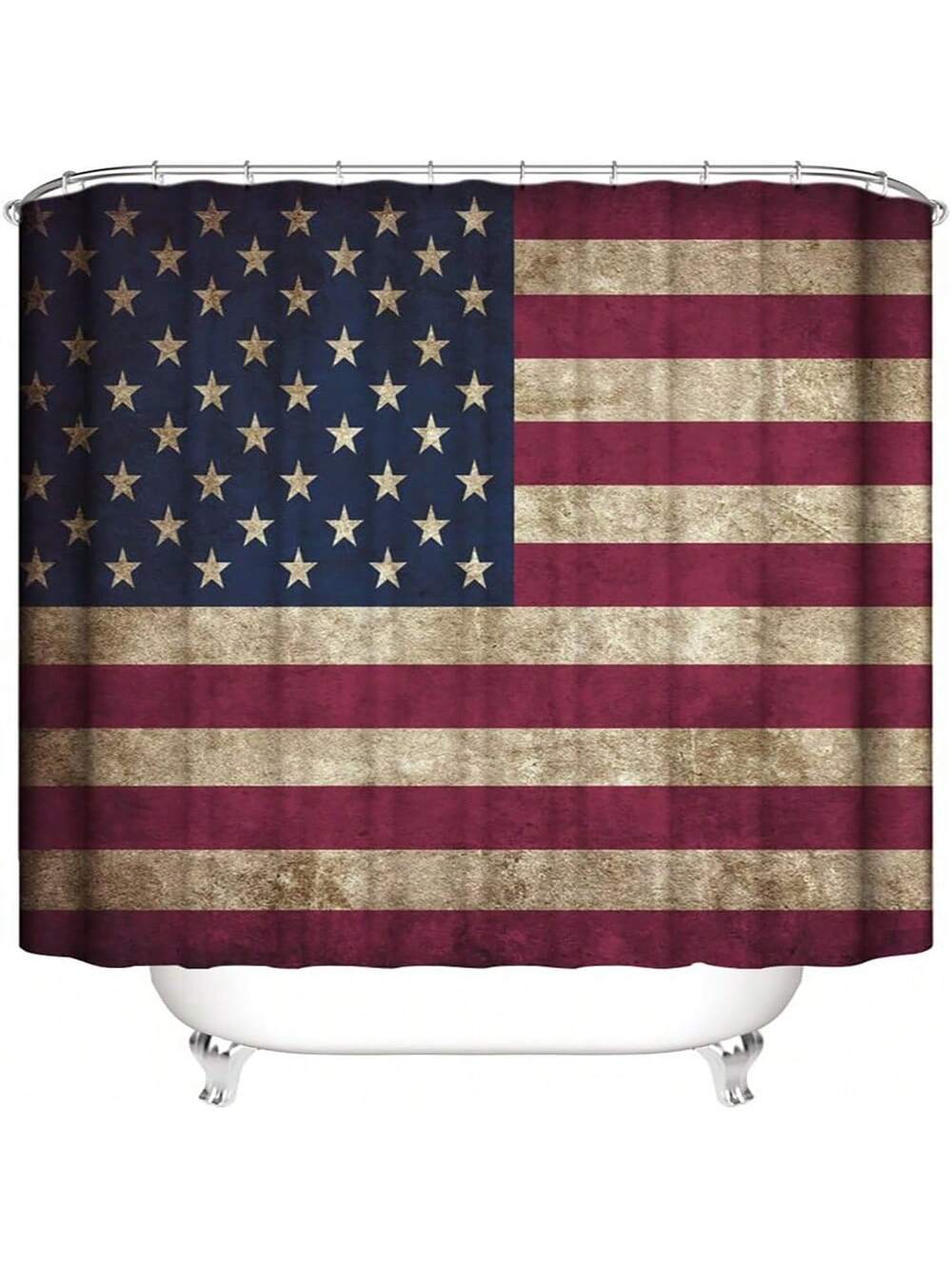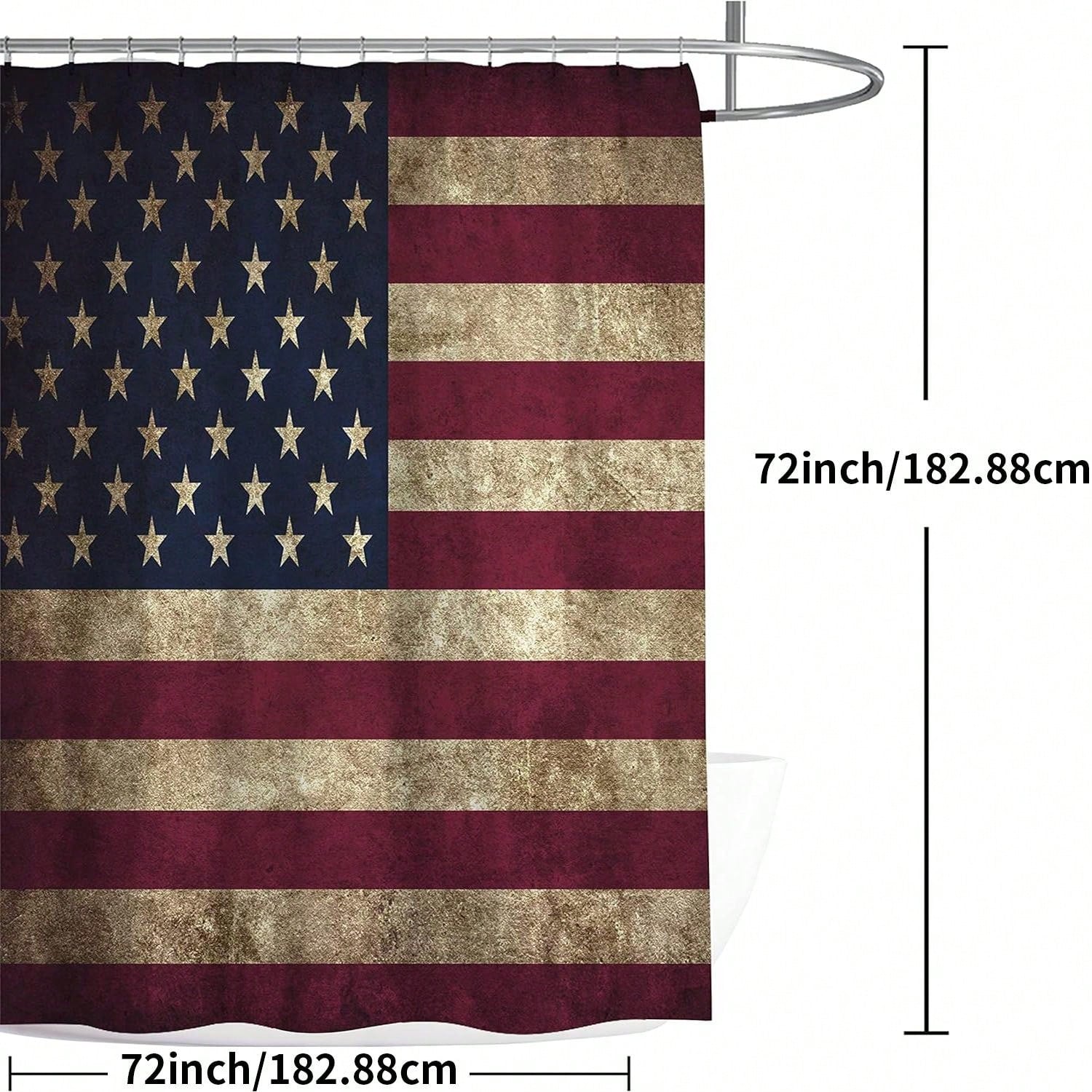 Patriotic Pride Shower Curtain - American Flag Graphic Print with Waterproof Design and 12 Plastic Hooks - 72x72 Inches