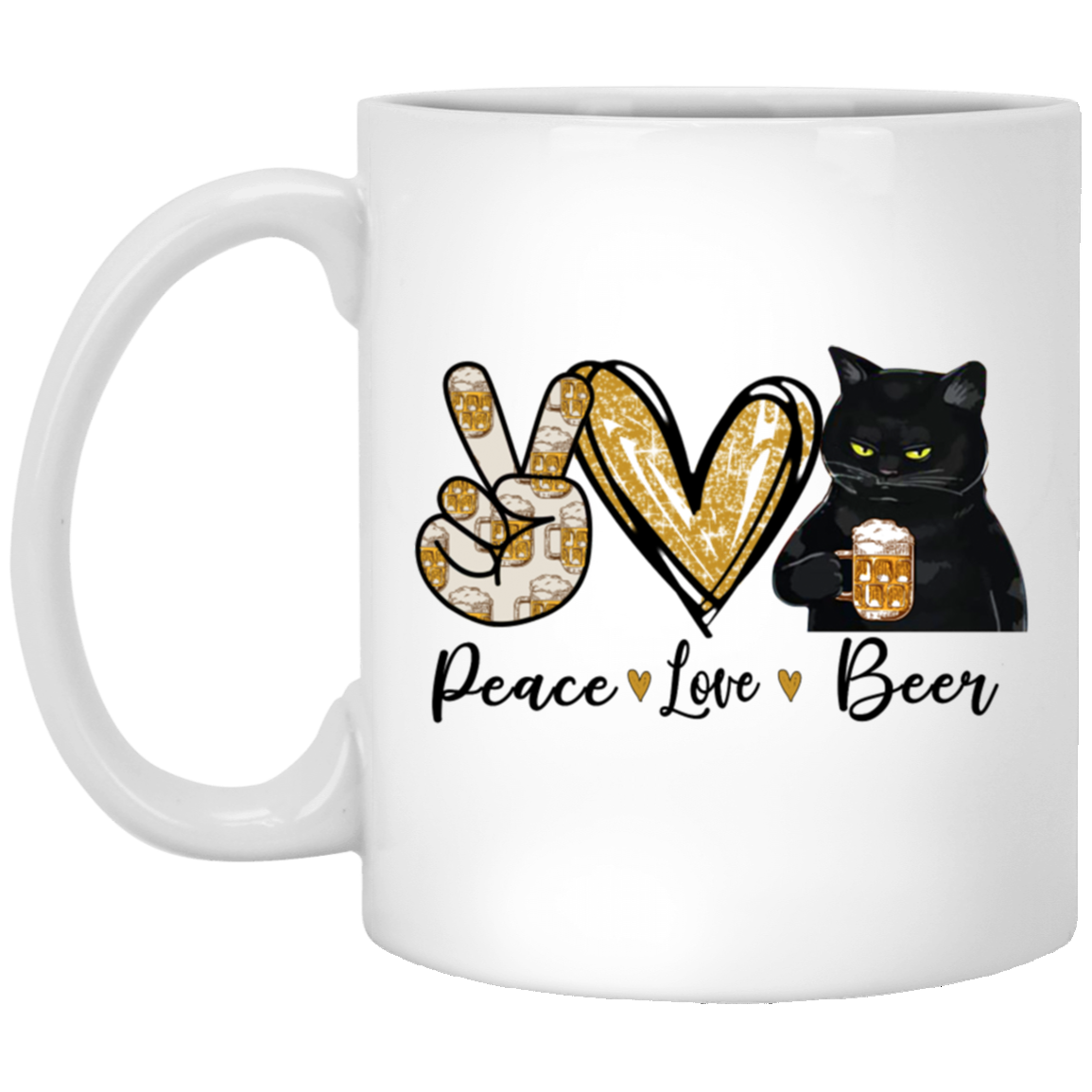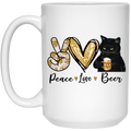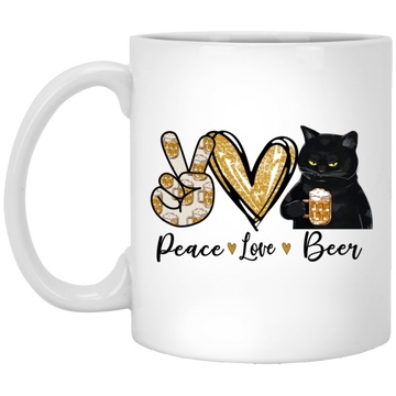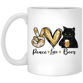 Peace Love Beer Black Cat, Funny Gift White Mug