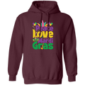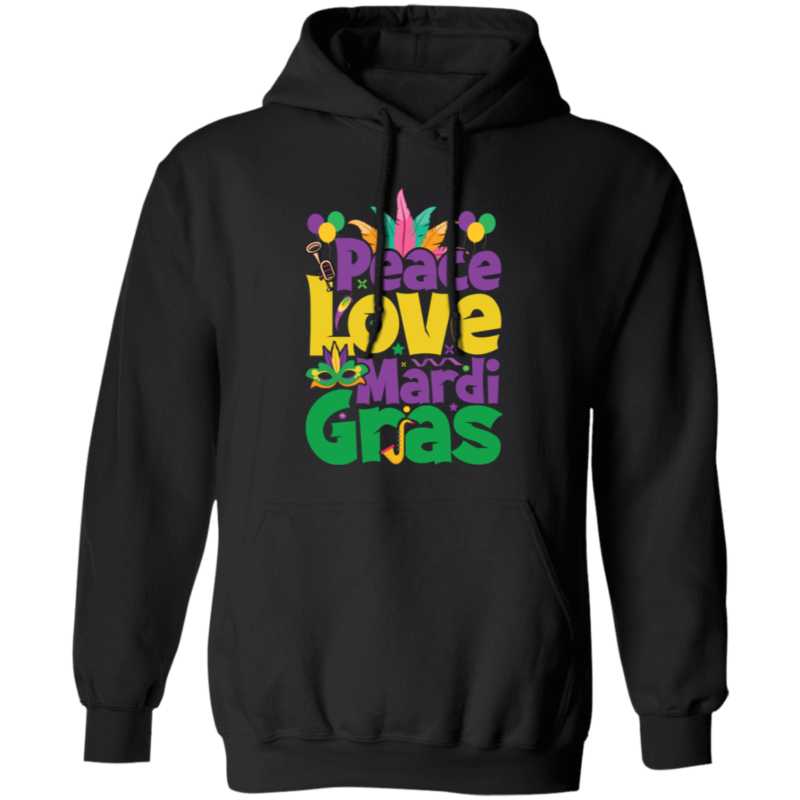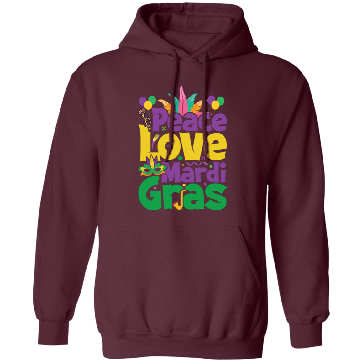Peace Love Mardi Gras, Mardi Gras Holiday, Three Kings Day Pullover Hoodie