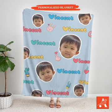 Personalized Baby Face & Name Blanket, Custom Blankets Gift, Cute Blanket For Kid BL201