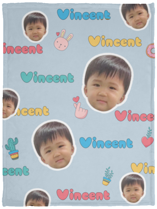 Personalized Baby Face & Name Blanket, Vincent Blankets, Cute Blanket For Kid BL201