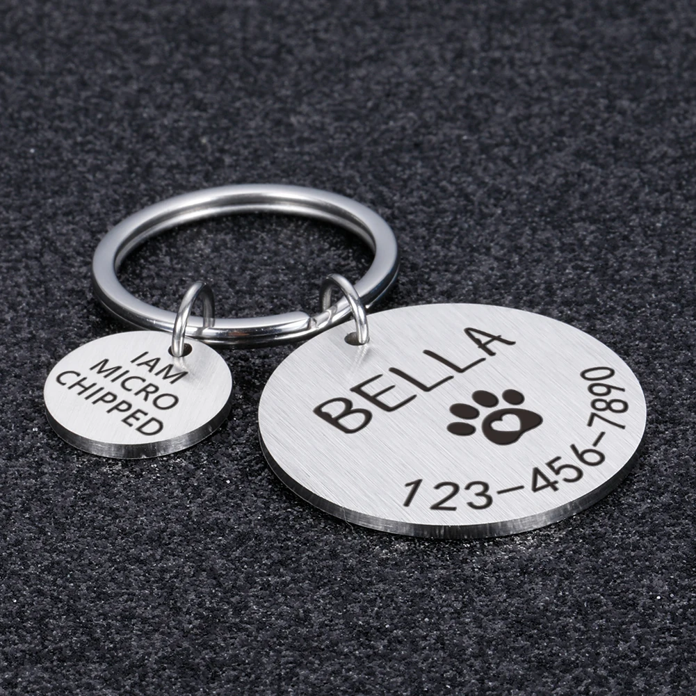 Personalized Name Phone Engraved Dog Pet ID Tag, Bone Flower Pet ID Name for Cat Puppy Dog Tag Pendant Keyring Pet Accessories