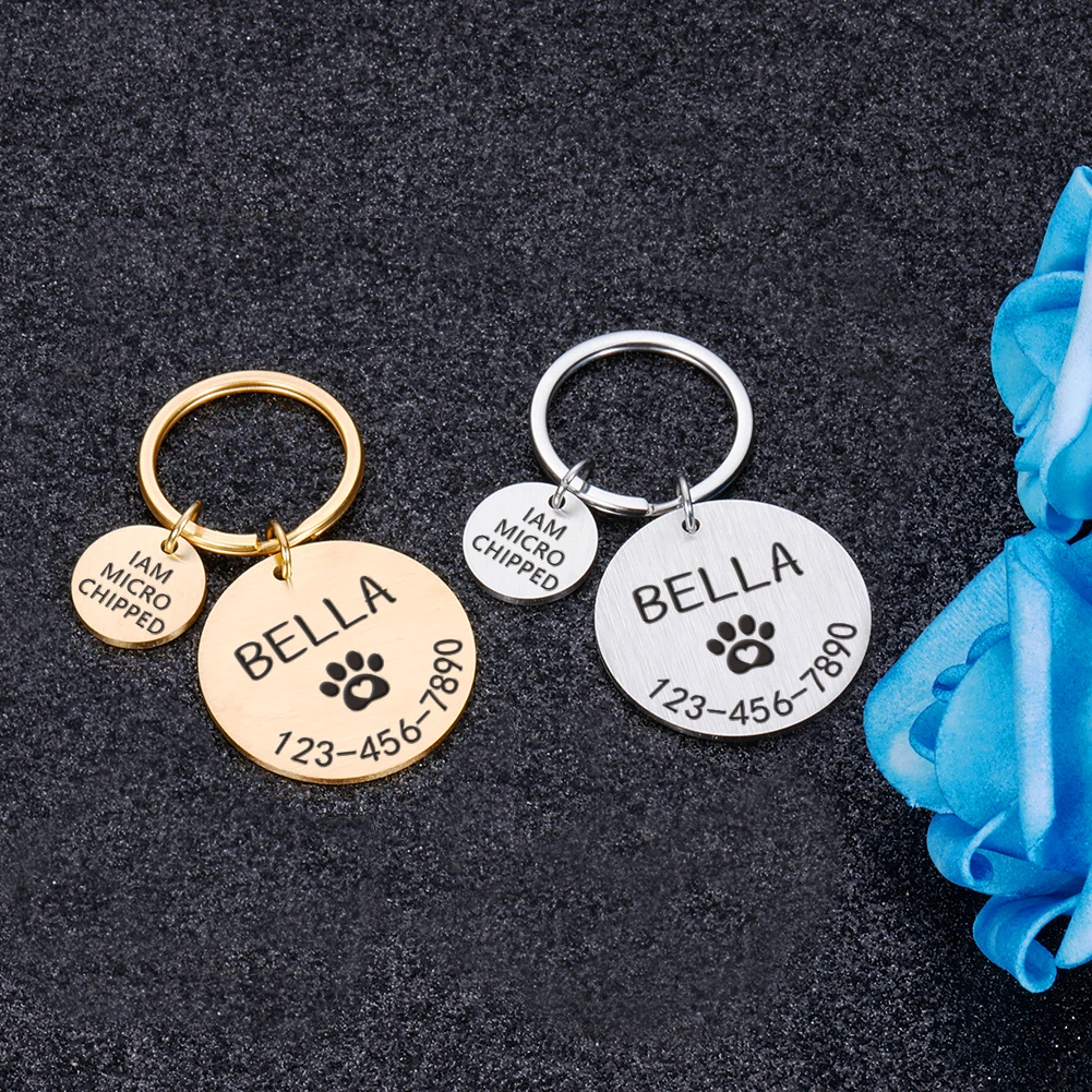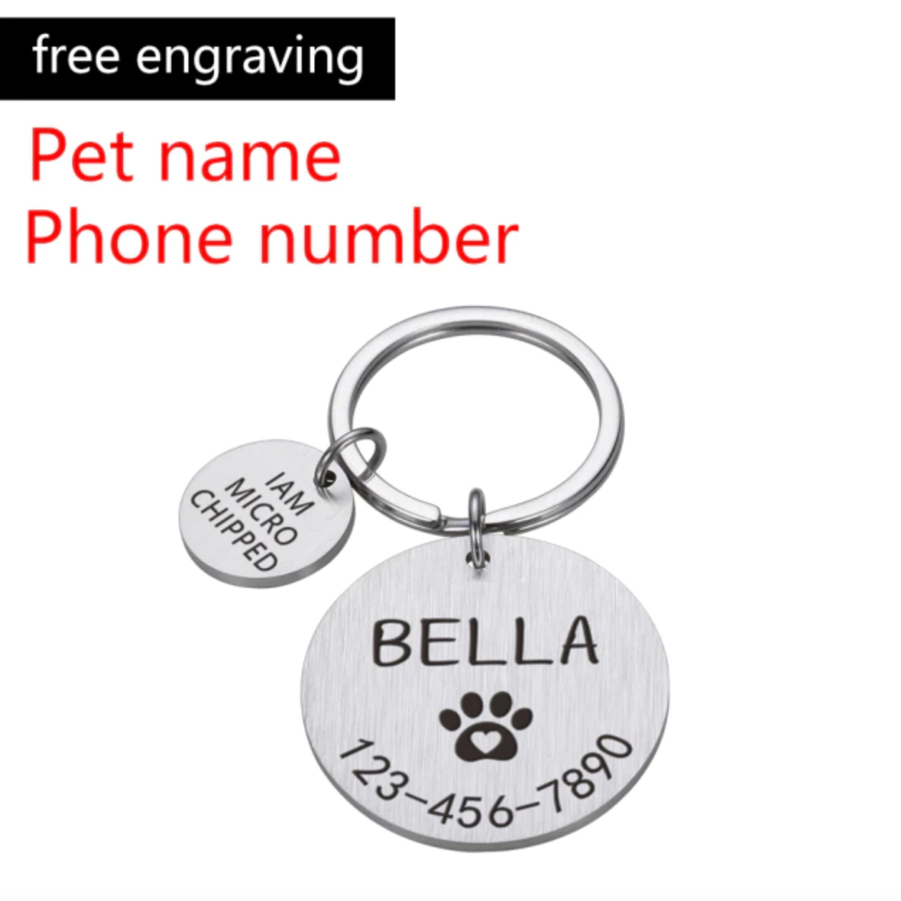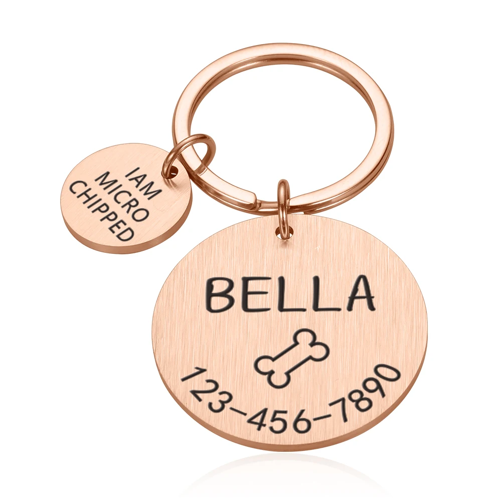 Personalized Name Phone, Engraved Dog Pet ID Tag, Bone Flower Pet ID Name for Cat Puppy Dog Tag Pendant Keyring Pet Accessories.