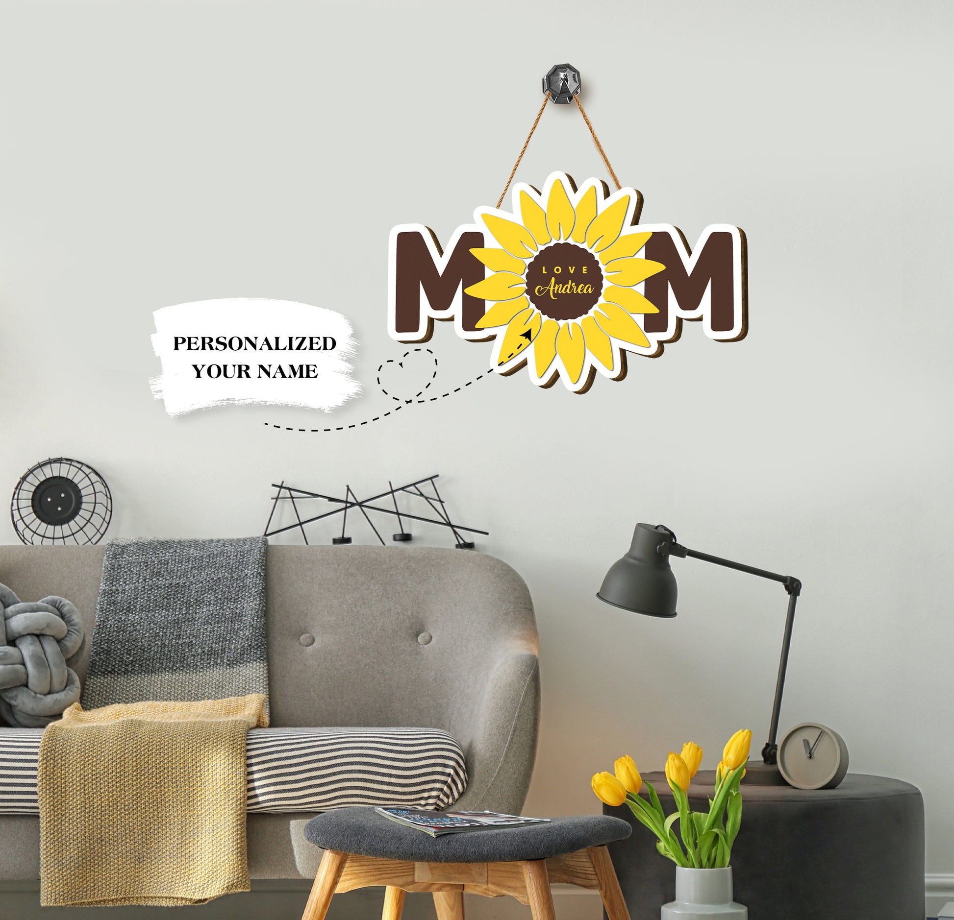 Personalized Name Wood Sign, Sunflower Template Wooden Sign, Mom Plywood Sign, Mother's Day Gifts WS08