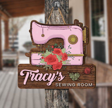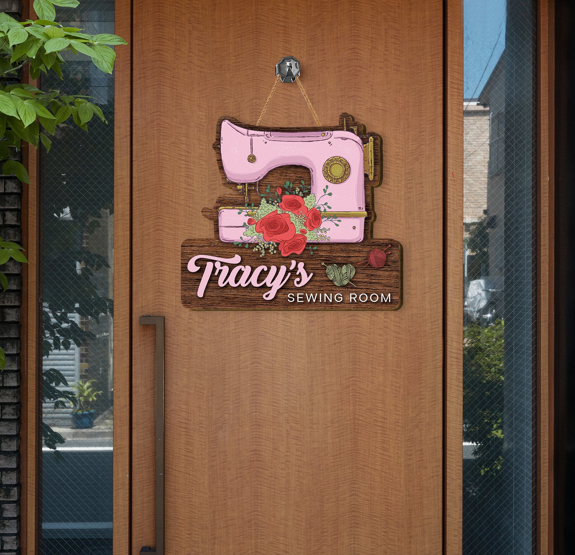 Personalized Sewing Room Wood Sign, Custom Name Room Wooden Sign, Sewing Room Plywood Sign WS21