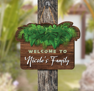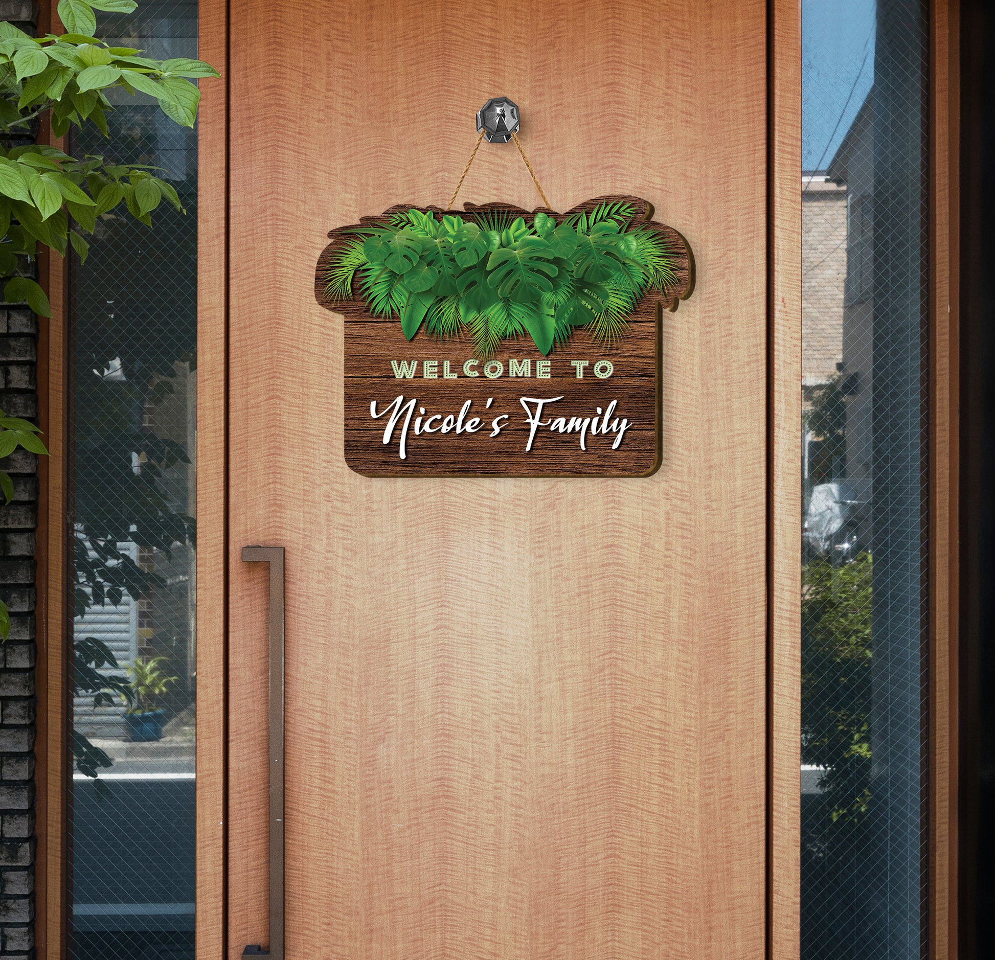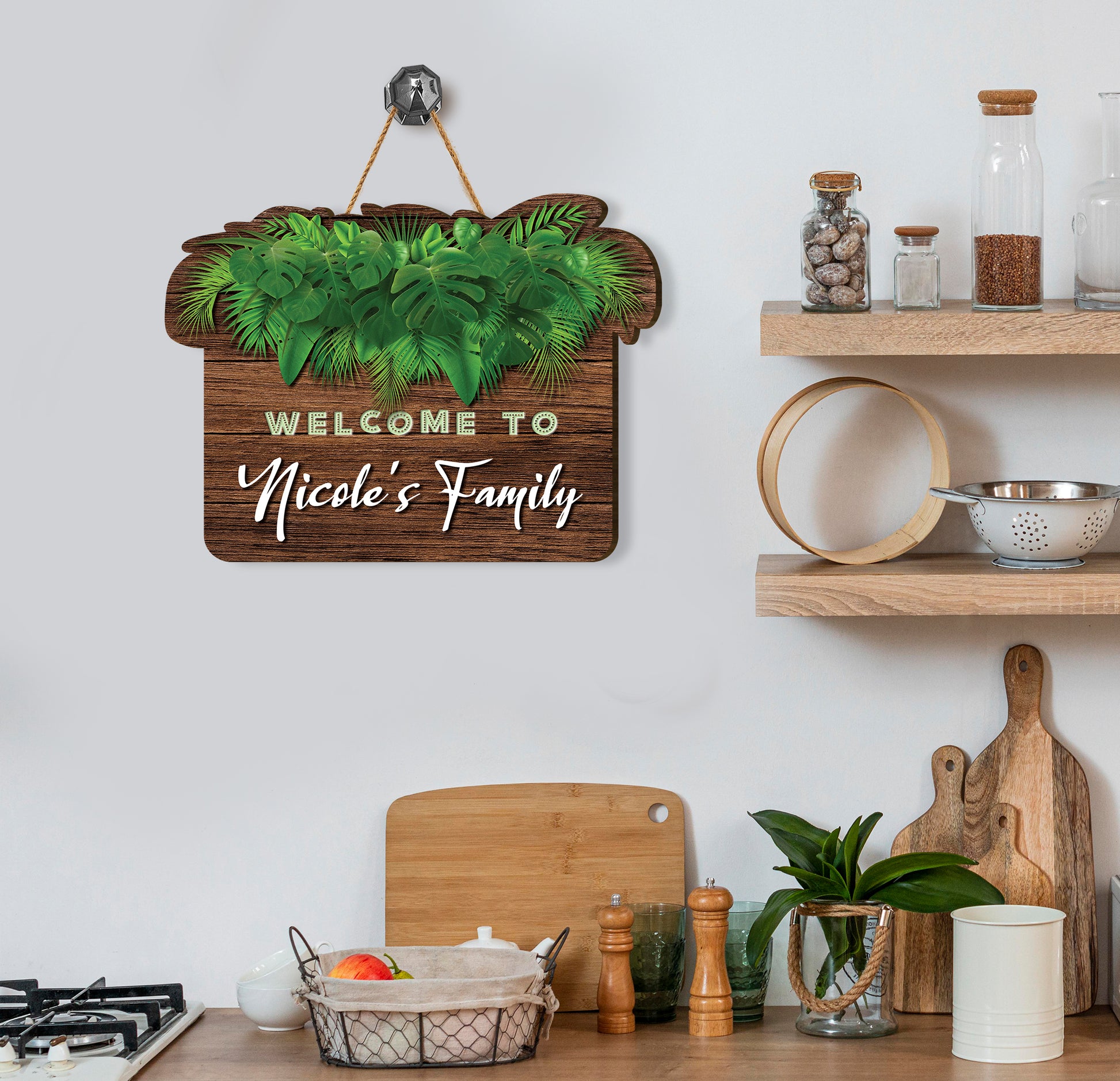 Welcome friends and family to your home with the customized Personalized Welcome Sign Natural Style. This stylish sign includes montsera leaves in a natural style, creating an inviting atmosphere for all who visit. Hang it at your entryway and make a lasting impression.