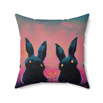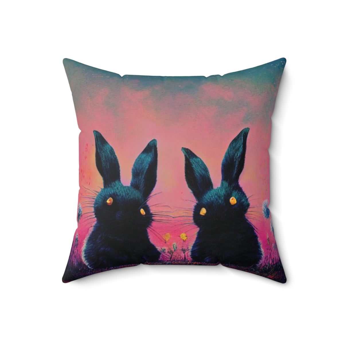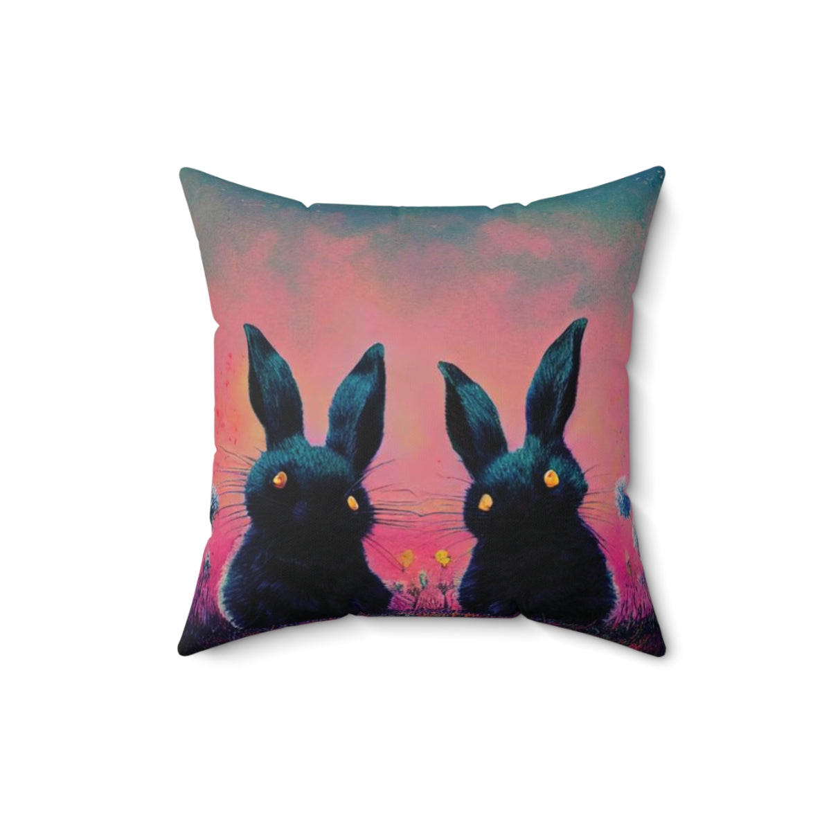 Phuzzy Bunny Under Sunrise, Cute Bunnies Couple, Bunny Lover Pillow Covers, Spun Polyester Square Pillow
